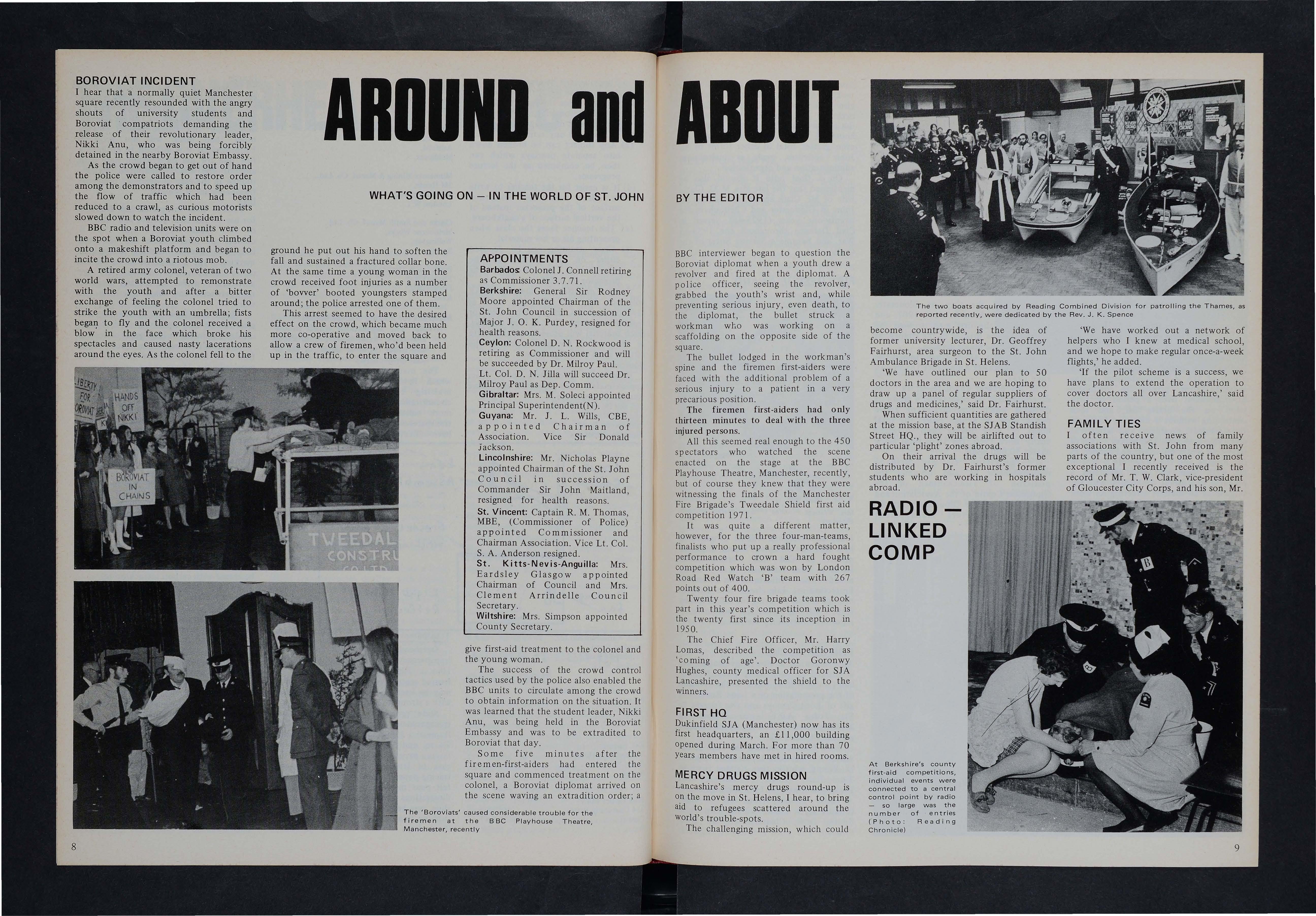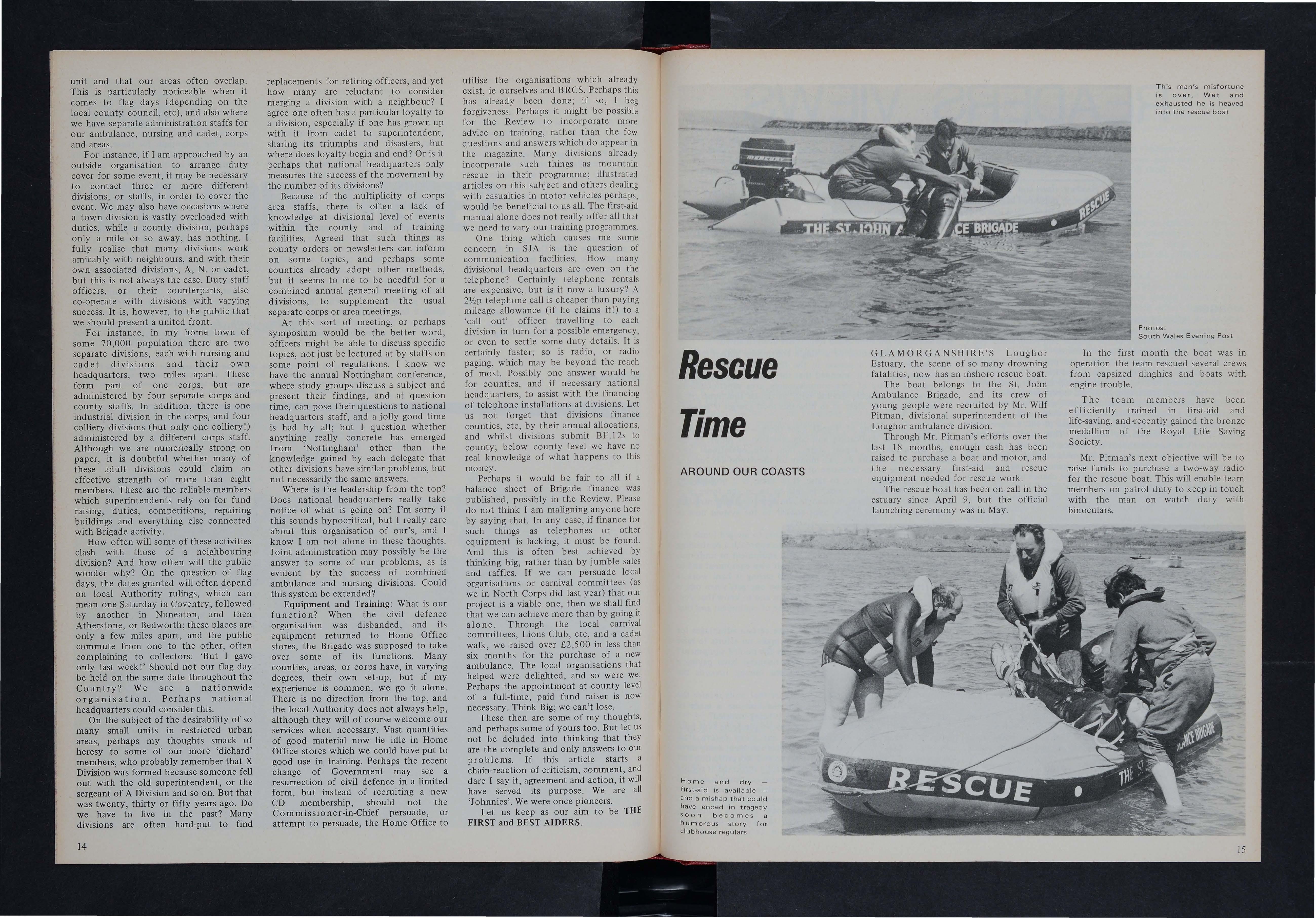 The SJ Mountain Rescue Team in Aberdeen , under its new chairman My. Roy Thomson, is in excellent shape. Twenty new recruits are undergoing training. On a recent visit our Chancellor and Priory-Secretary were interested to see piles upon piles of newspapers wrapped up and ready for sale: one of the methods used to raise funds.