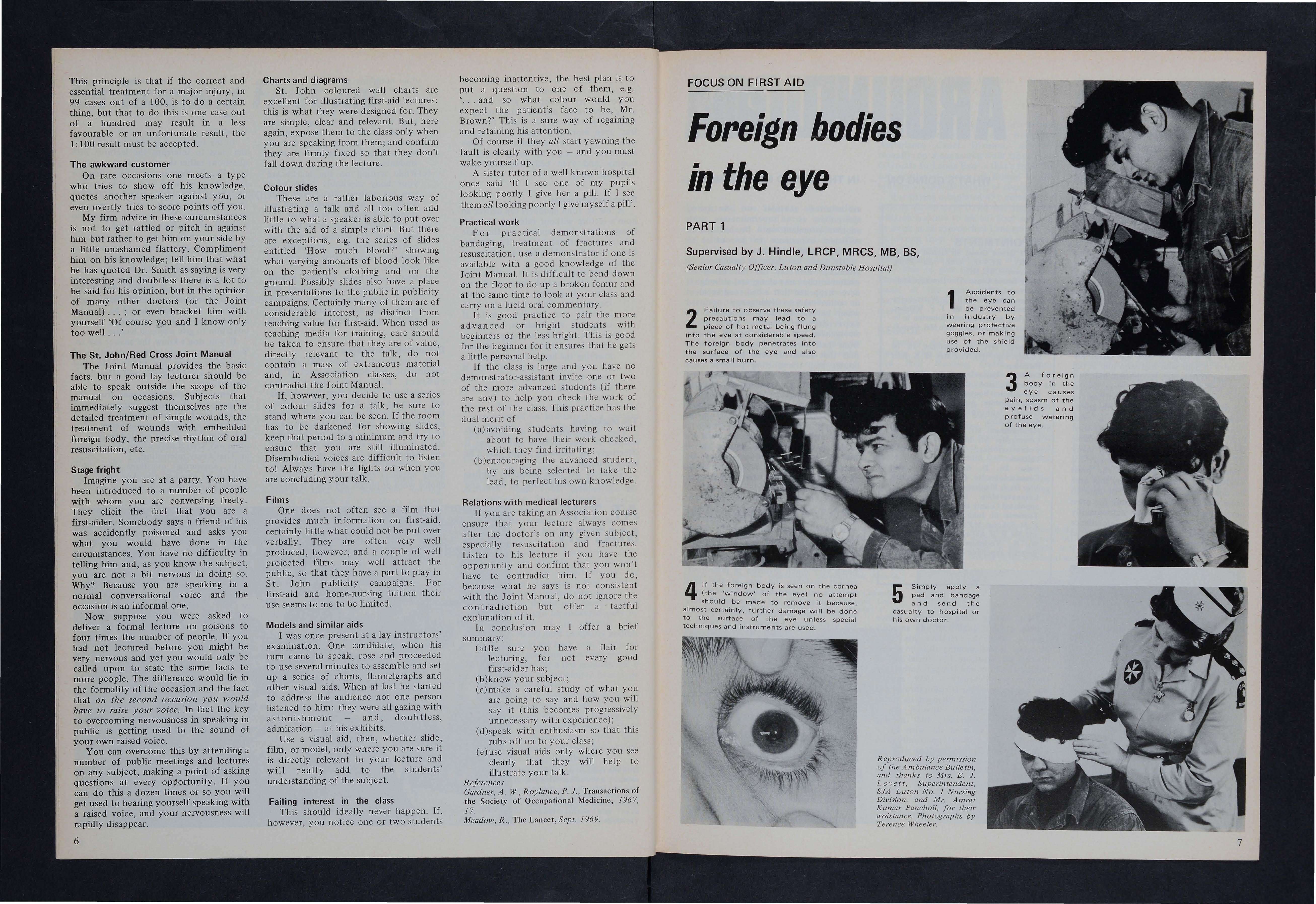 One does not often see a film that provides much information on first-aid, certainly little what could not be put over verbally. They are often very well produced, however , and a couple of well projected films may well attract the public, so that they have a part to play in St. John publicity campaigns. For first-aid and home-nursing tuition their use seems to me to be limited.