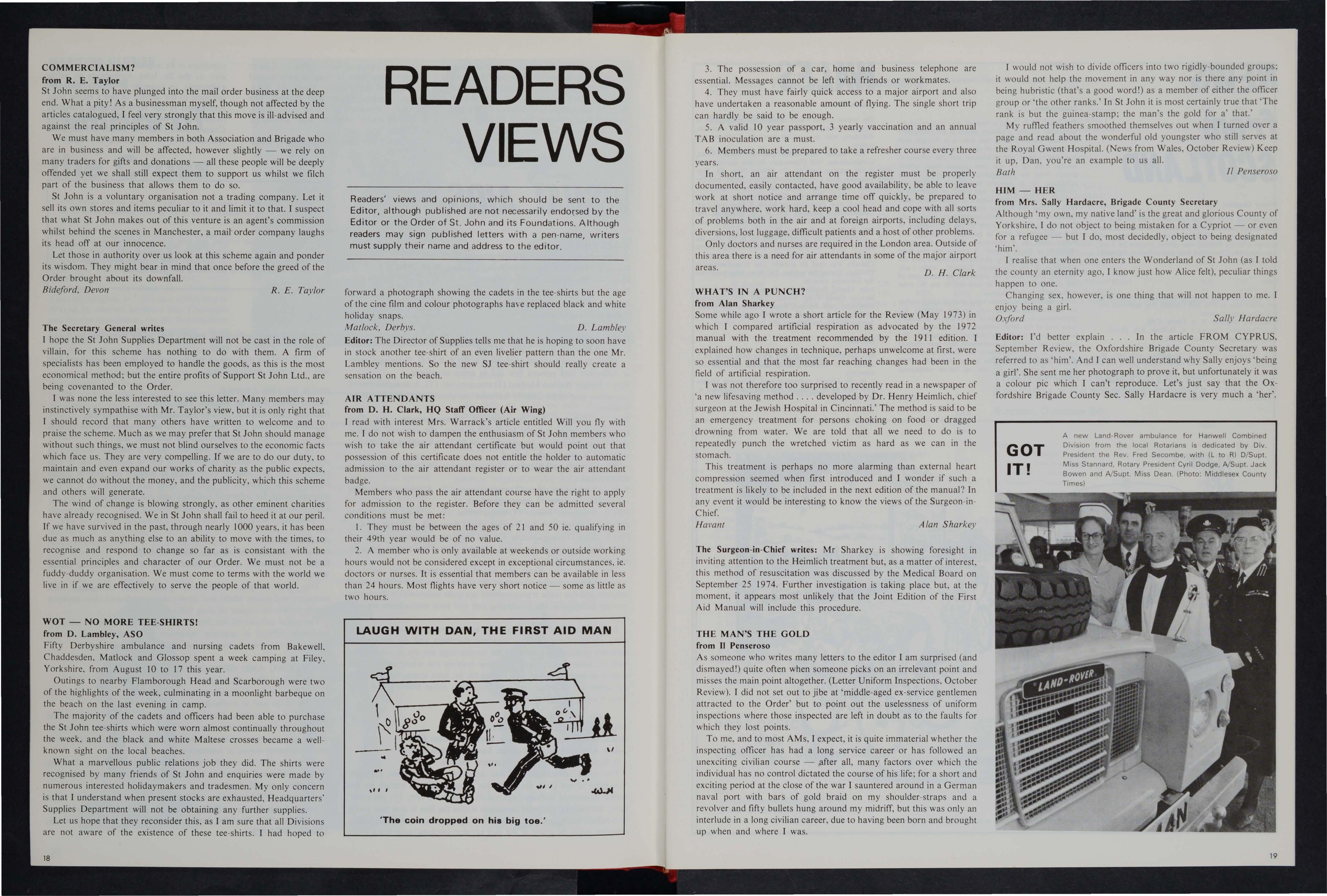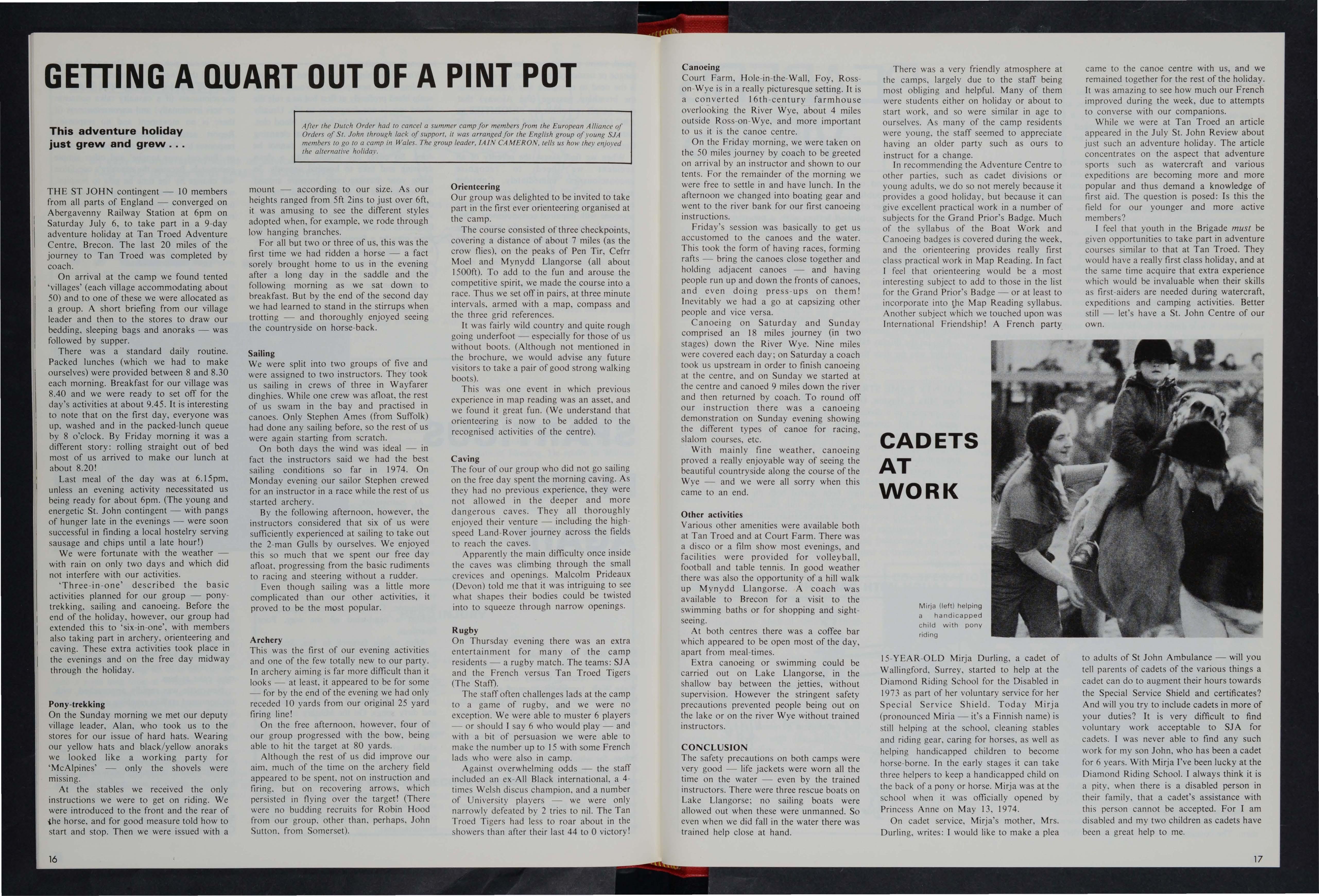 What a marvellous public relations job they did The shirts were recognised by man y friends of St John and enquiries we re made by numerous interested holidaymakers and tradesmen. My only concern is that I understand when present stocks are exhausted, Headquarter s' Supplies Department will not be obtaining any further supp li es Let us hope that they reconsider this as I am sure that all Divisions are not aware of the existence of these tee -s h irts. I had hoped to