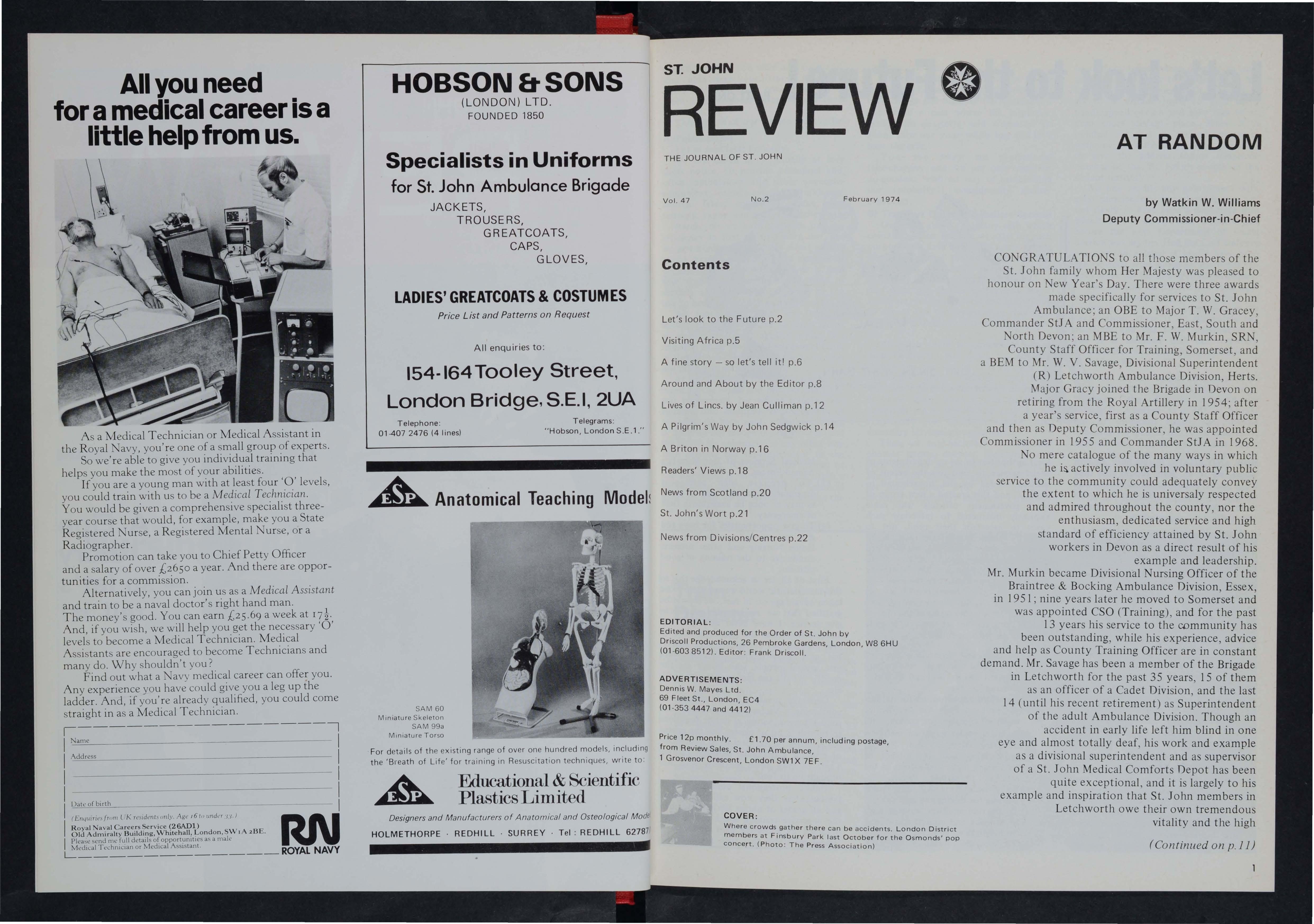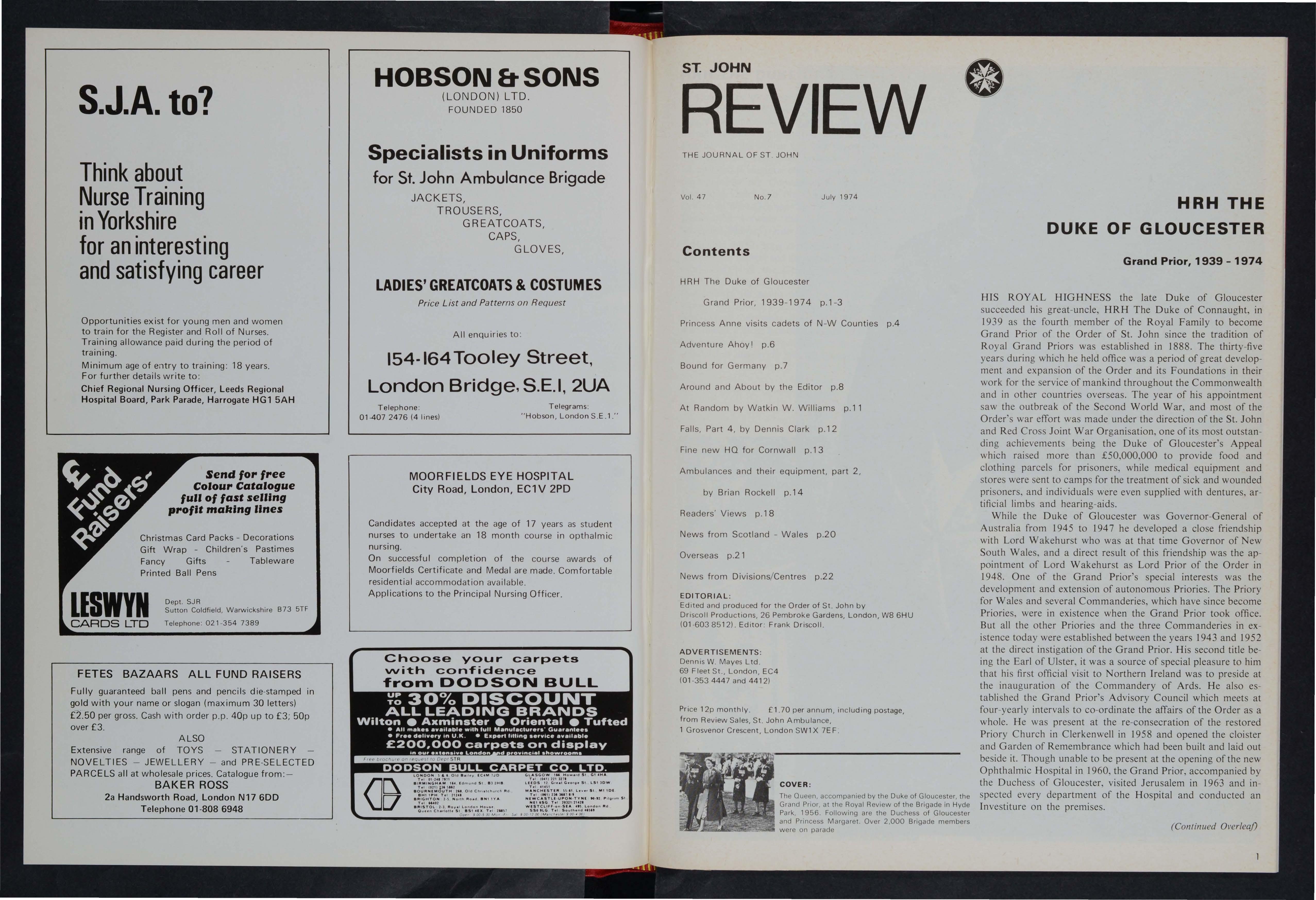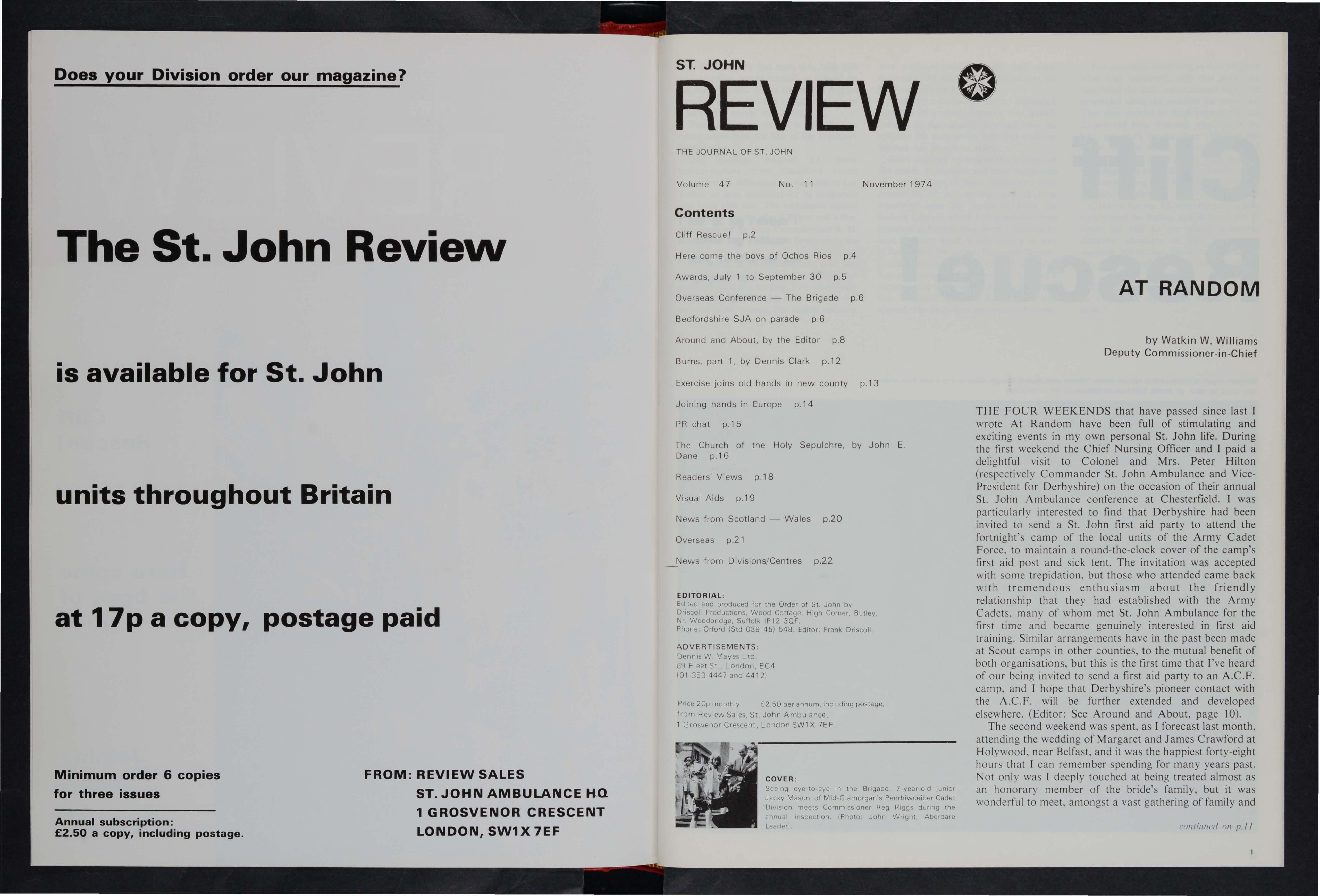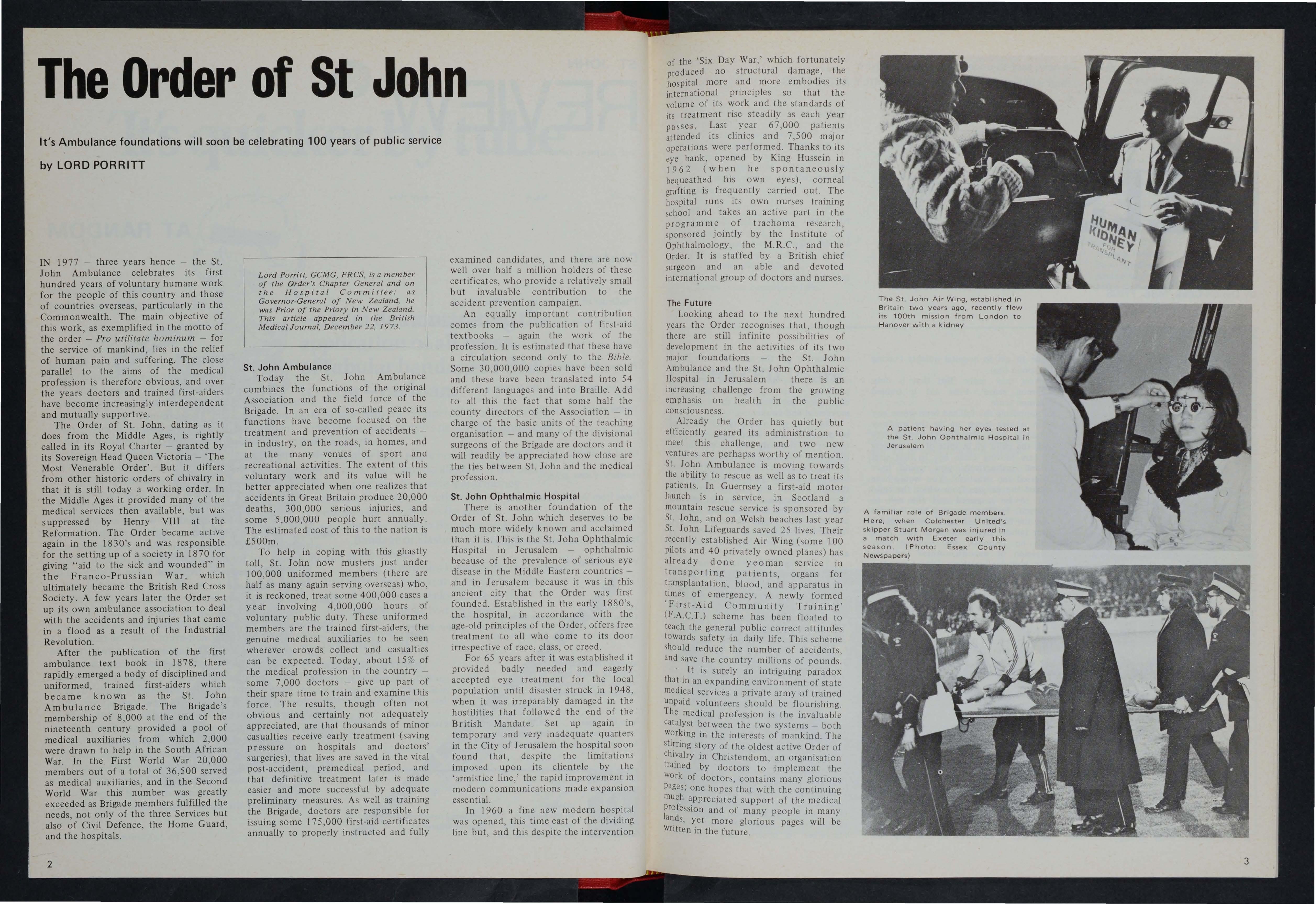 Edited and produced for the Order of St. John by Driscoll Productions , 26 Pembroke Gardens, London, W8 6HU (01-6038512). Editor Frank Driscoll