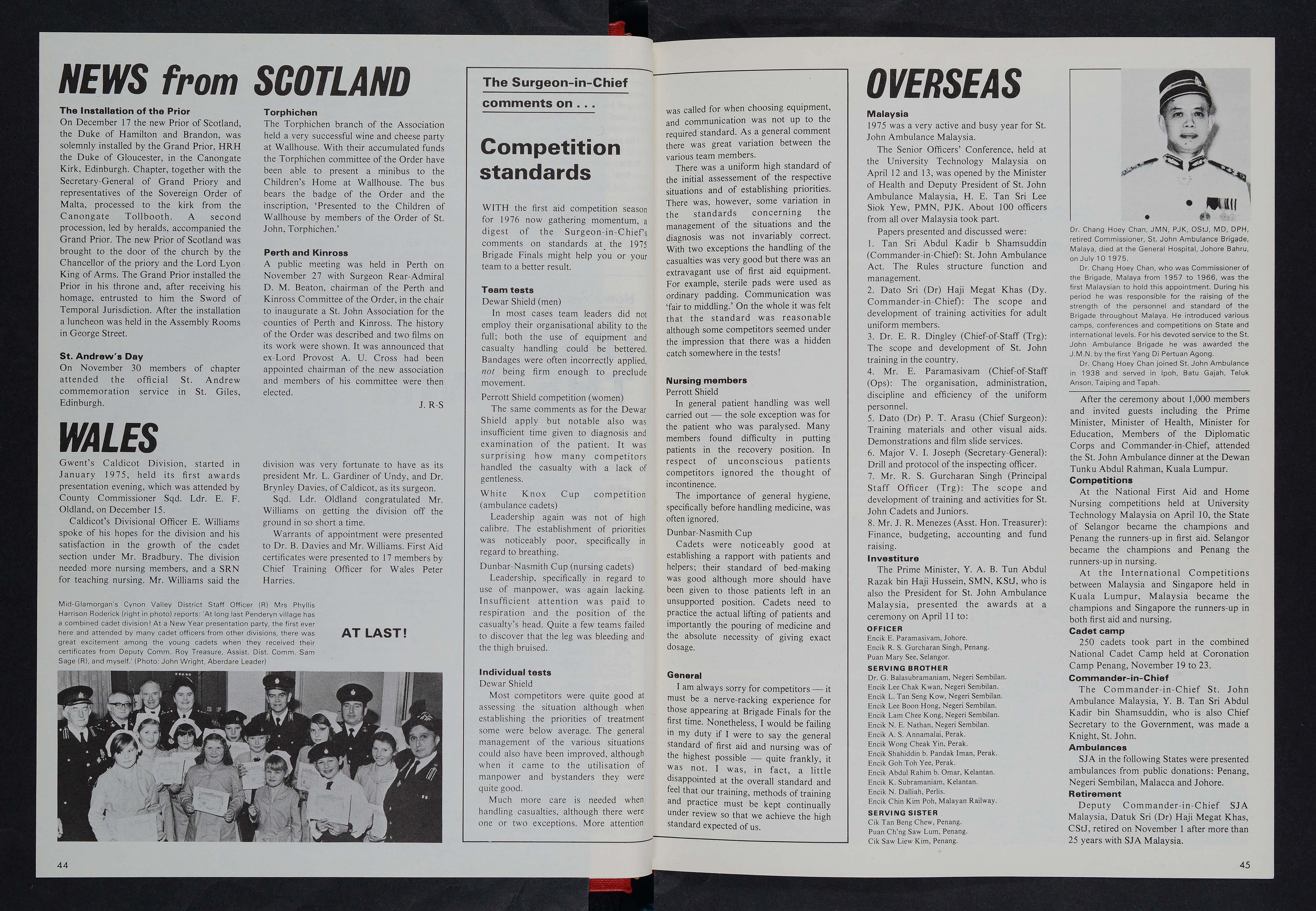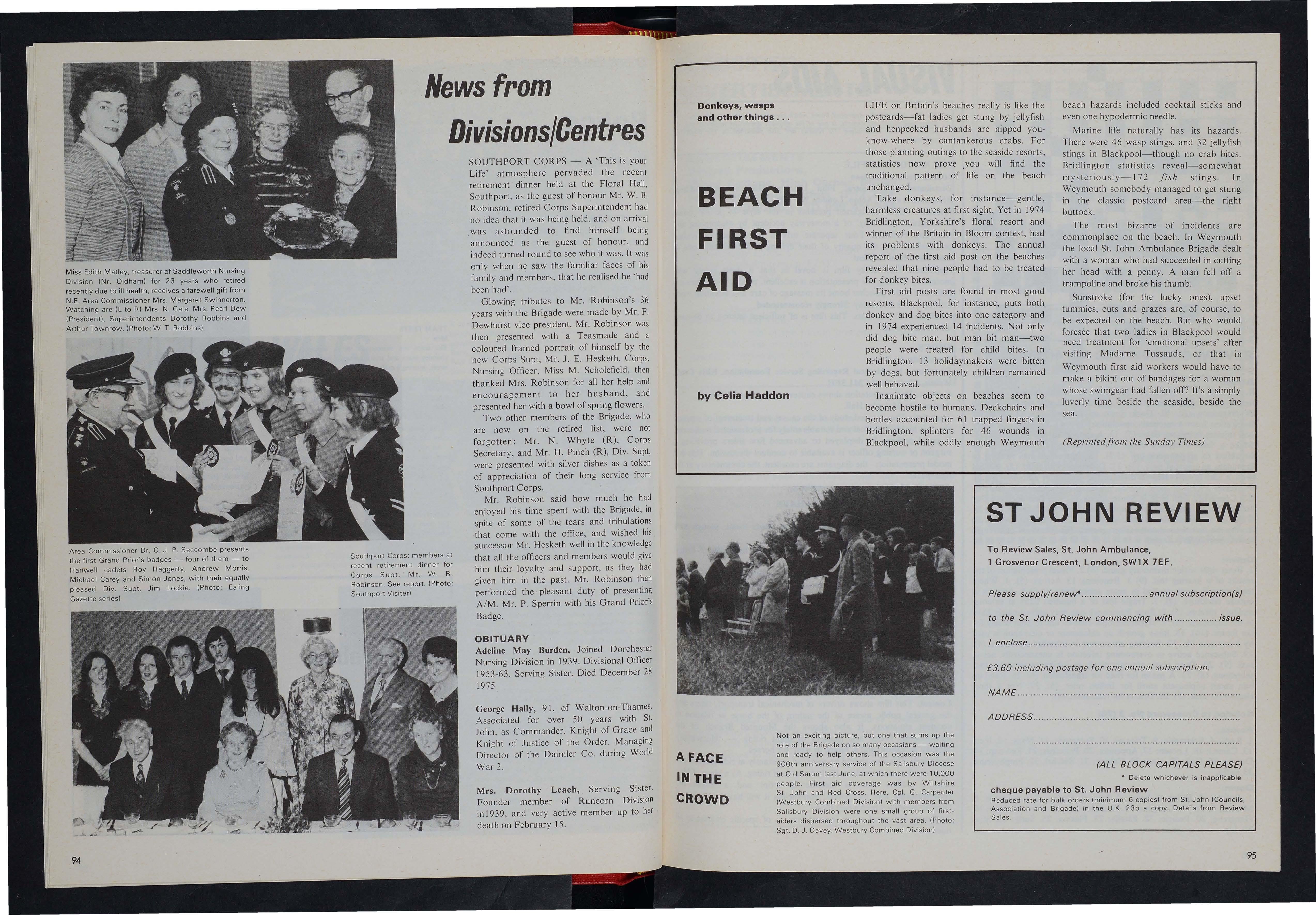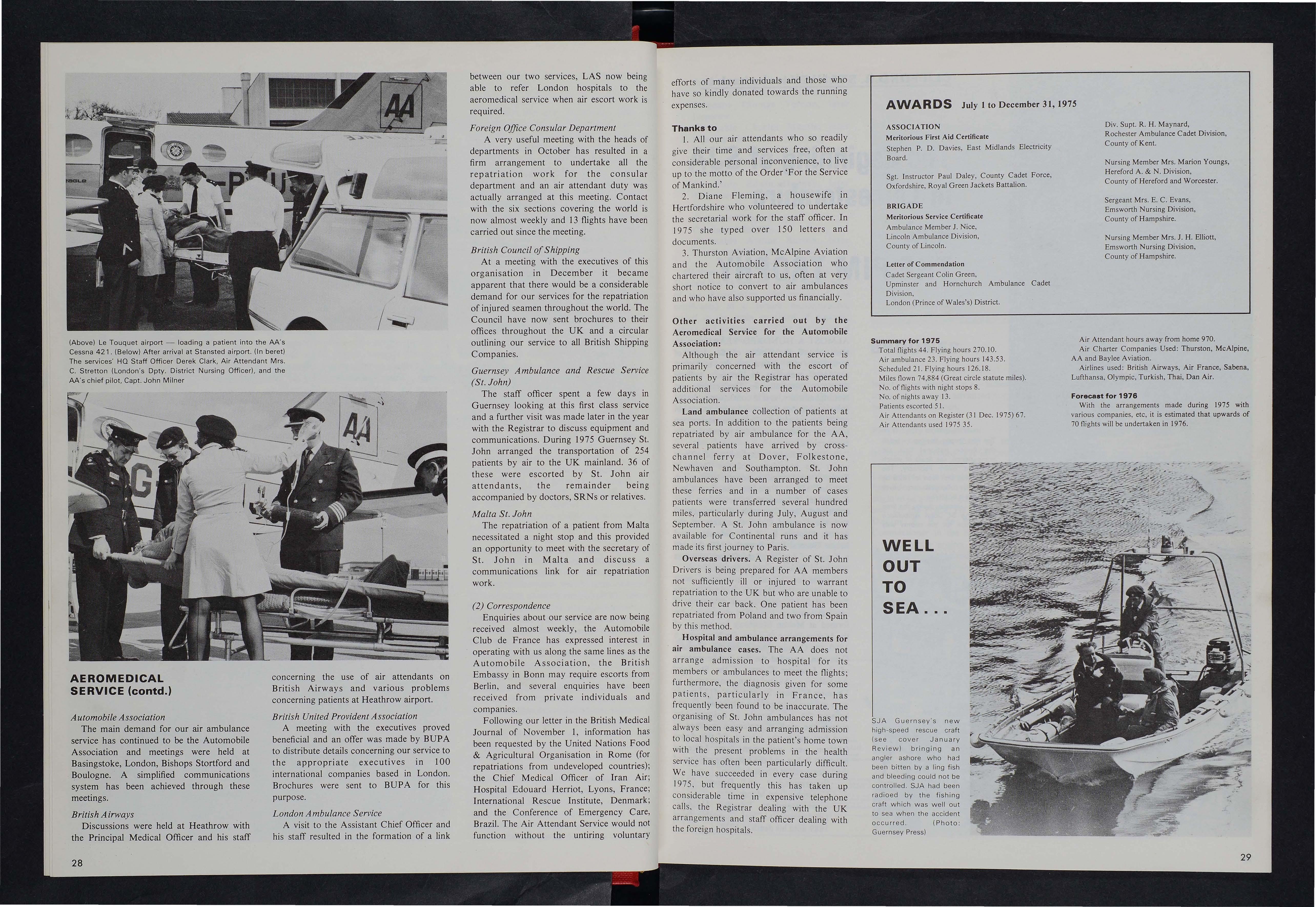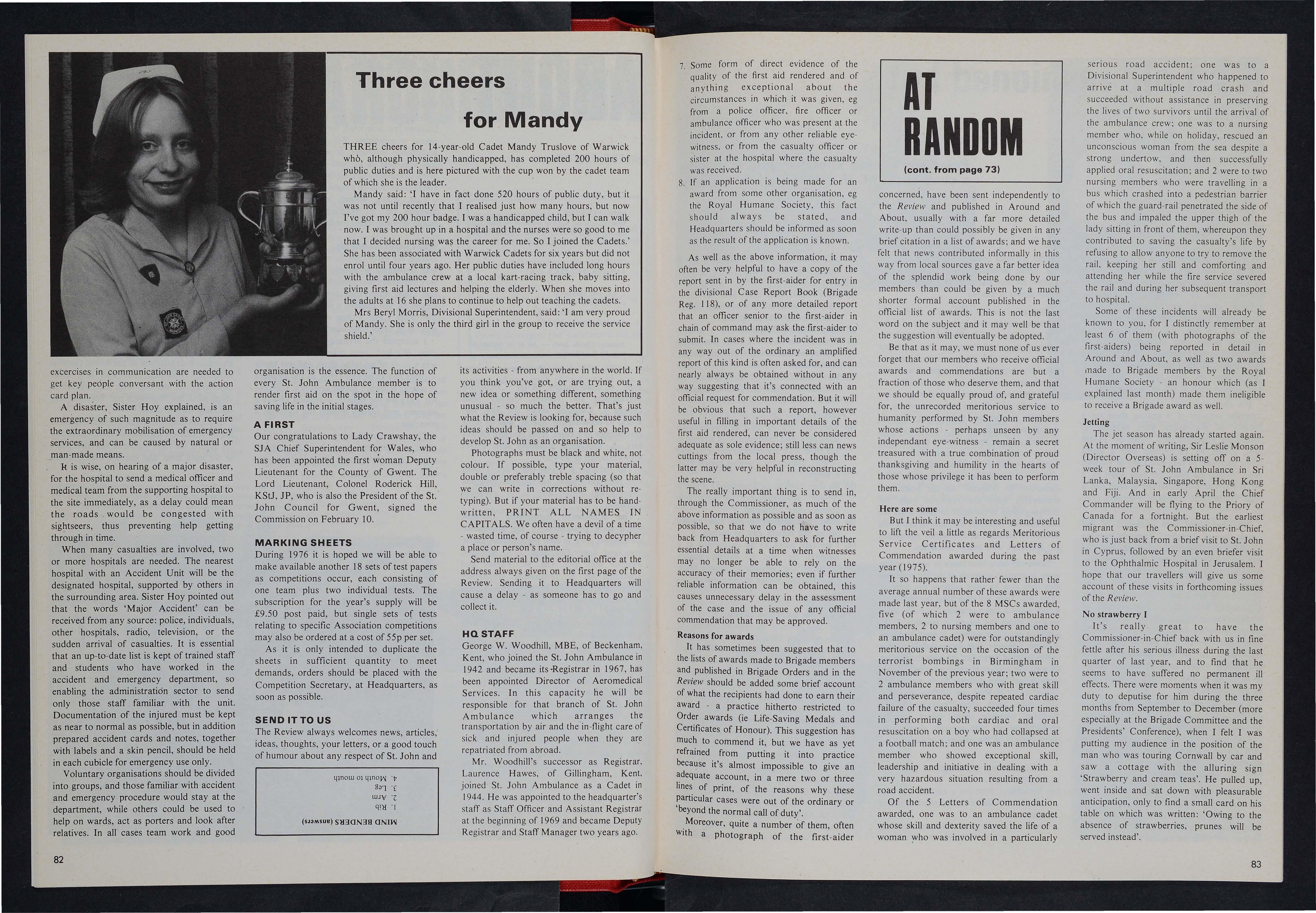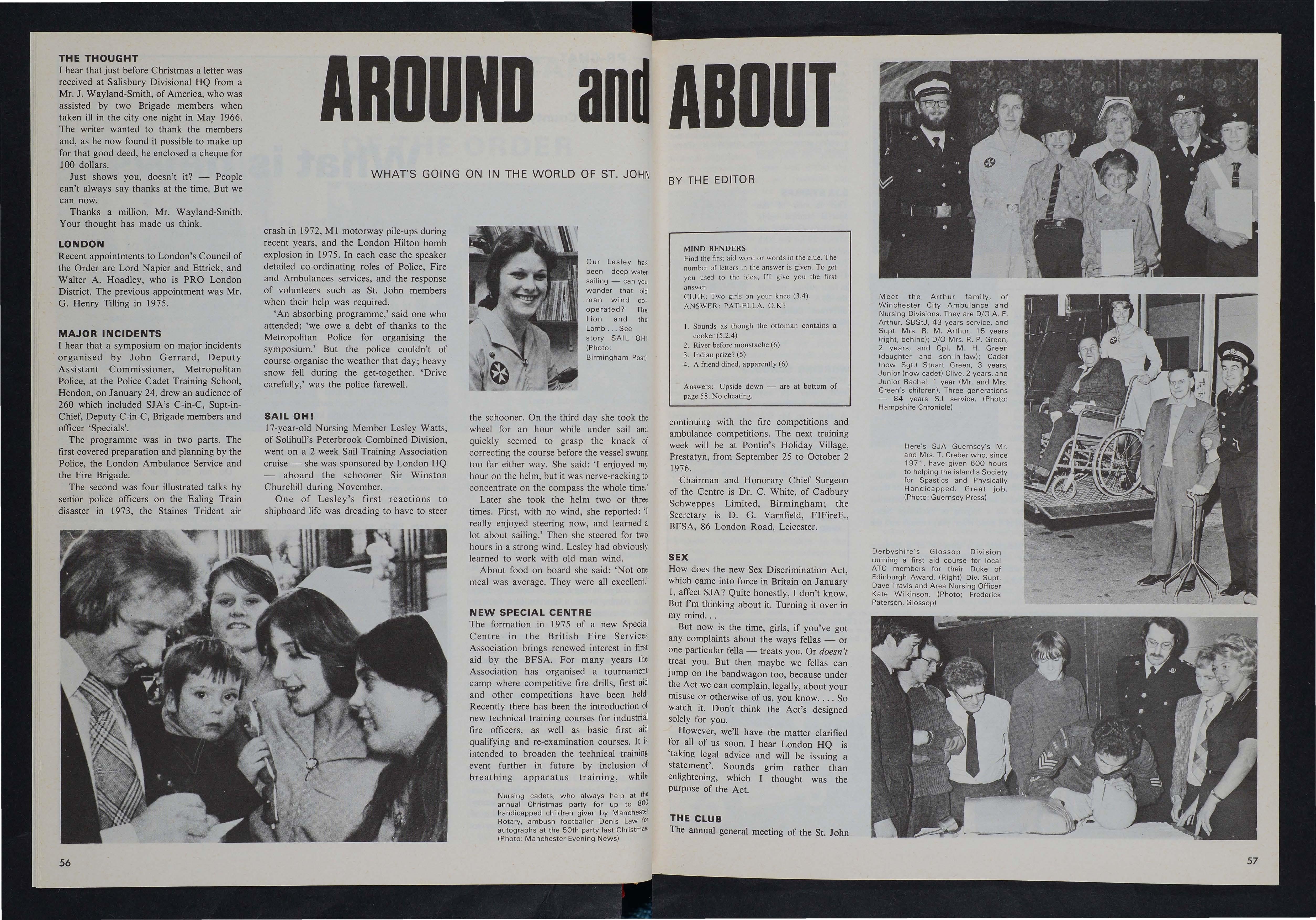The - winning team in the men's competition for 1975 was the Fire Brigade team from the County of Avon; the Lancashire Constabulary team (the previous year s winners) came second , and the Port of London Authority Police team were third In the women's competition the winners were a smashing team of girls from the Lancashire Constabulary; a team representing British Railways from Glasgow came second , and a Cornish team from English Clays Lovering & Poch i n Co. Ltd. came third. Congratulations to them all- and indeed to all those who competed - remembering that the whole object of the exercise is not primarily to win a trophy (splendid though that is for those who do so) but to make each one of us better able to give compassionate and life-saving help to our fellow human beings at any moment of accident, suffering or distress , "and that ' in this game there are no real losers