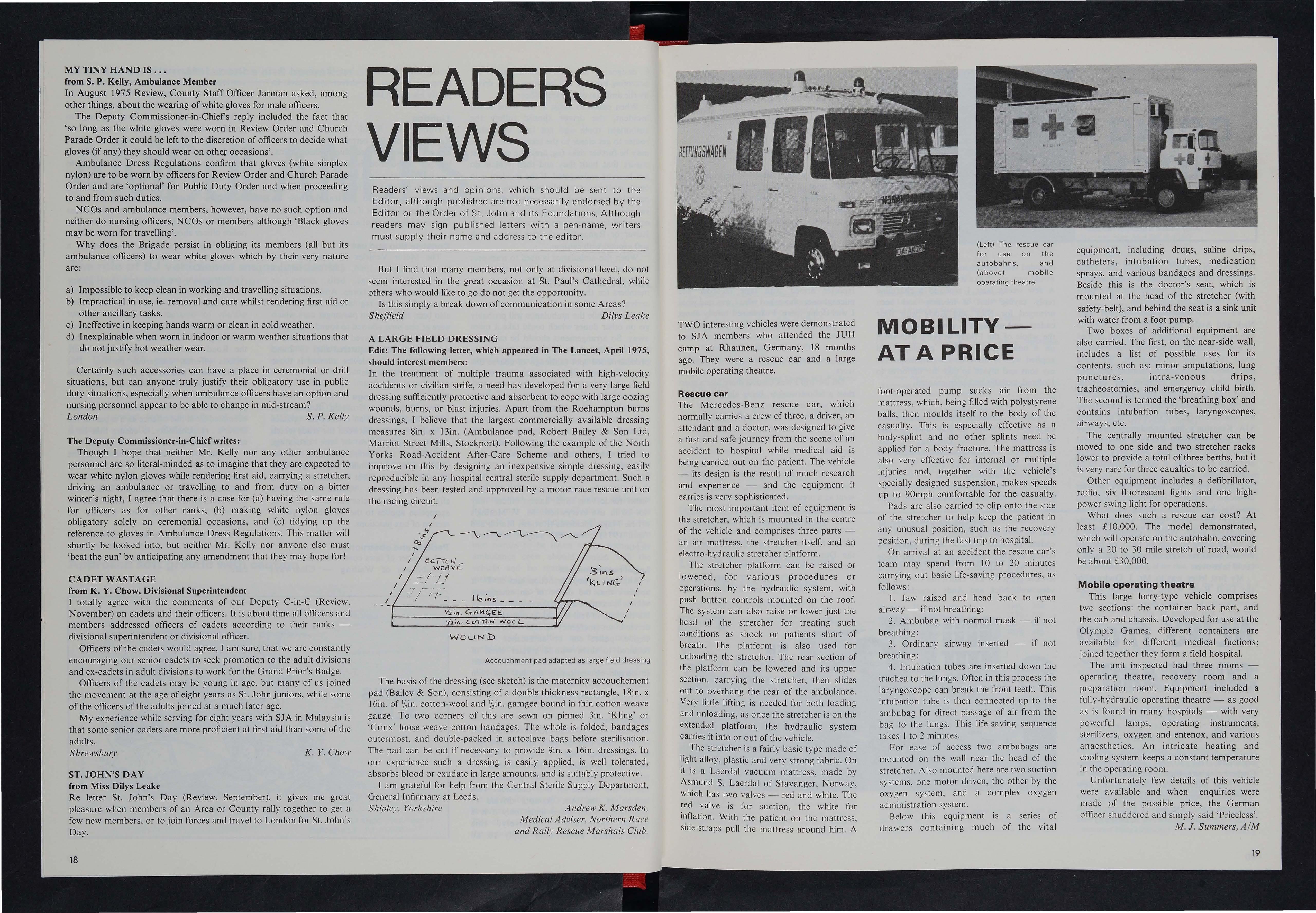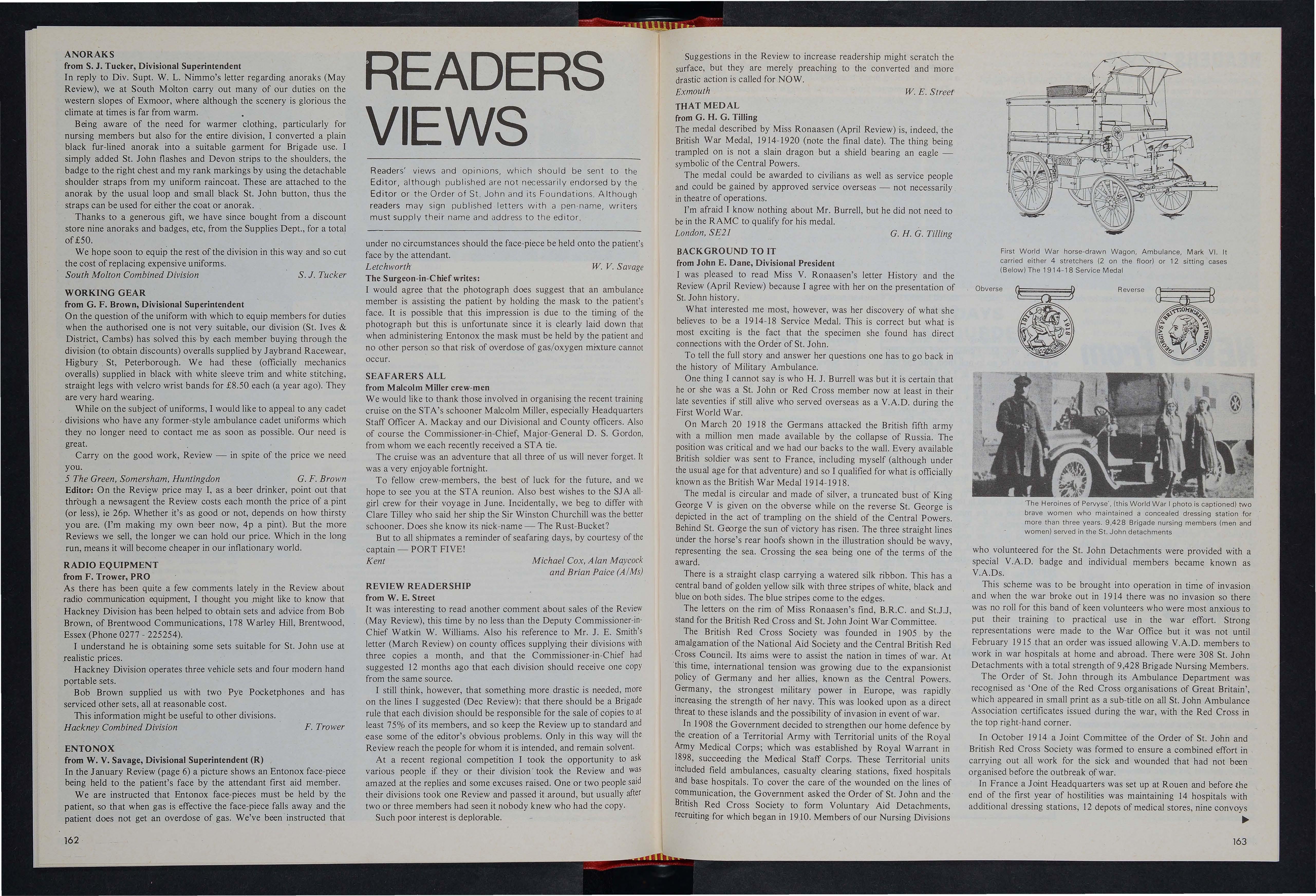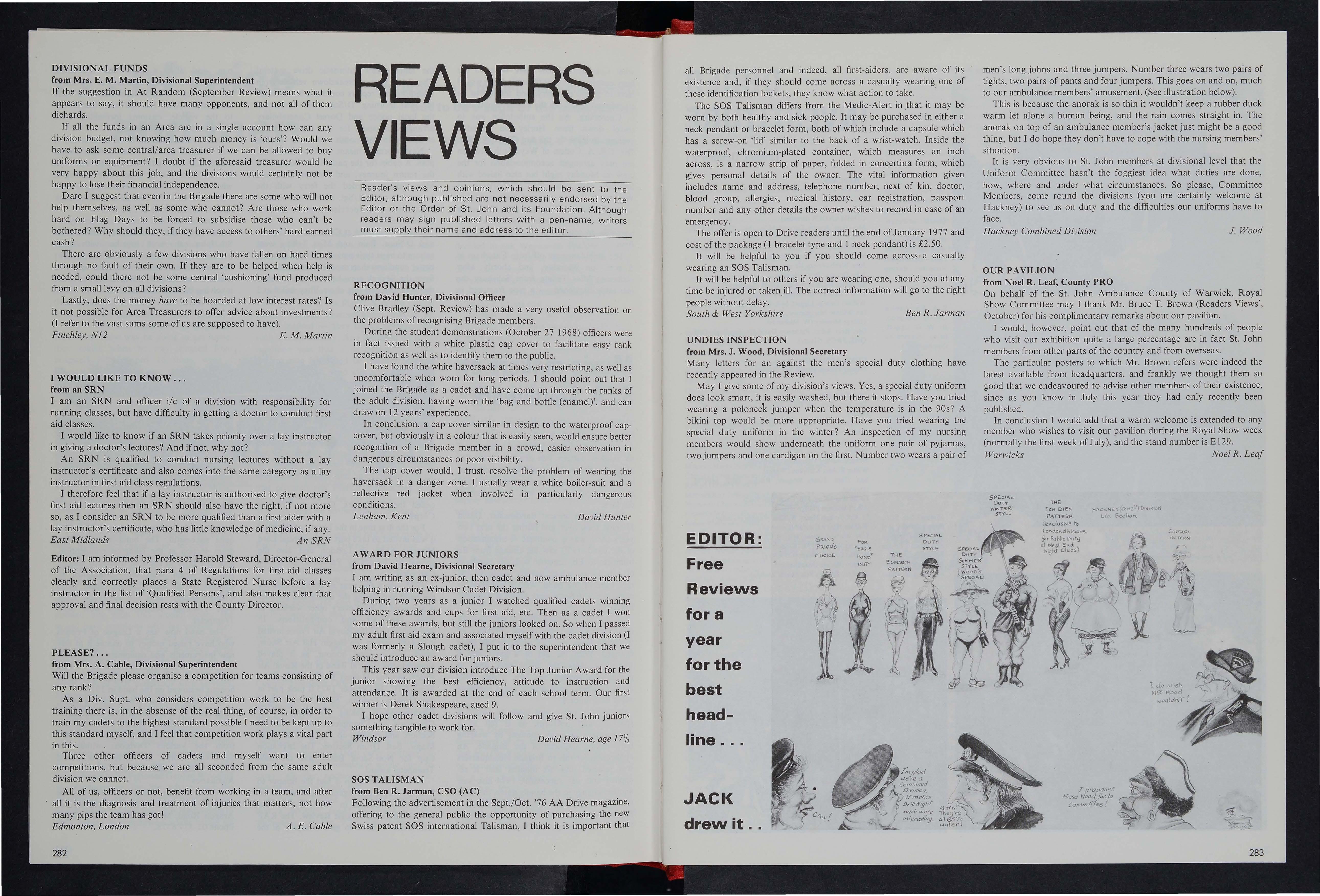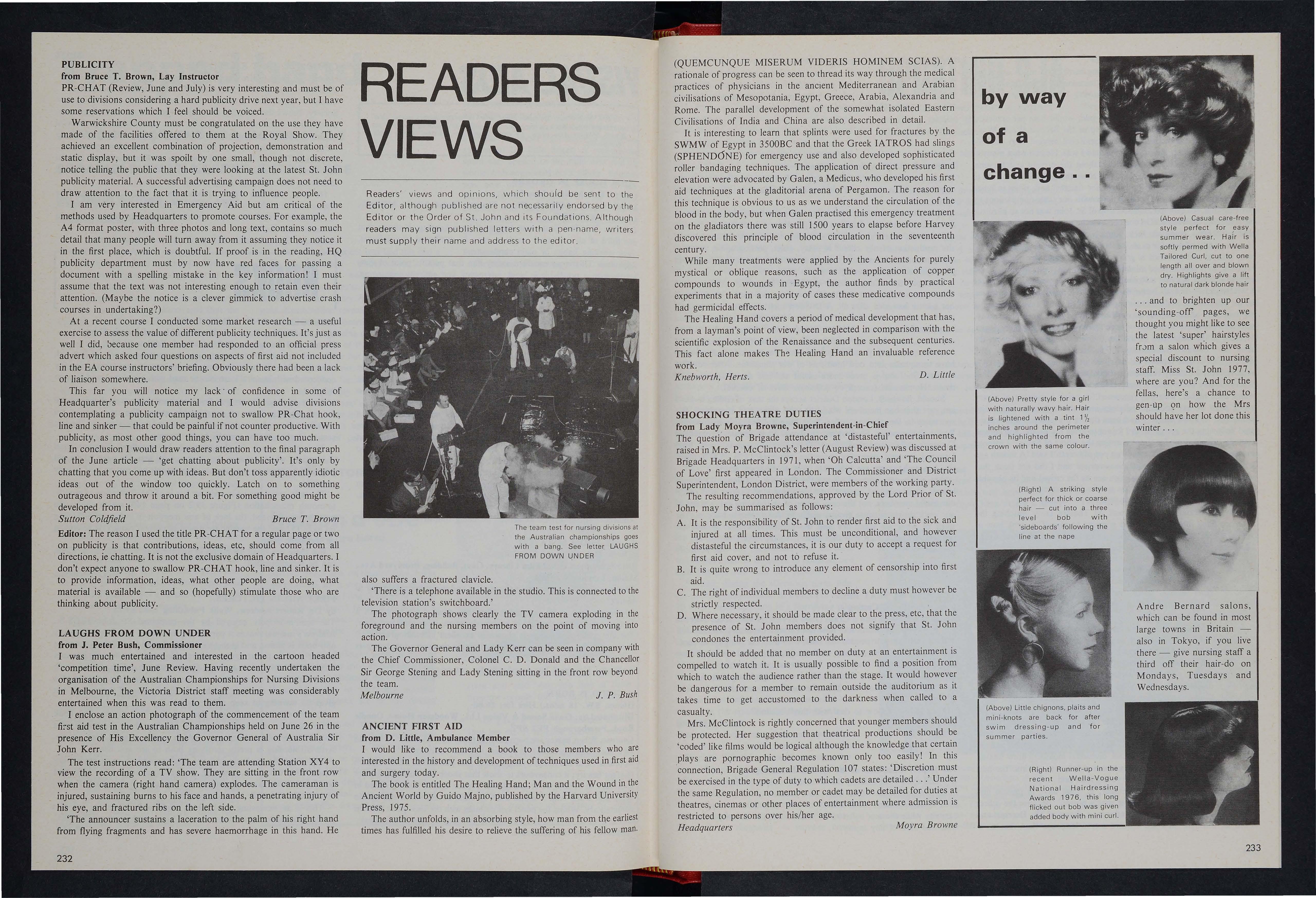 On behalf of the St. John Ambulance County of Warwick, Royal Show Committee may I thank Mr. Bruce T. Brown (Readers Views ', October) for his complimentary remarks about our pavilion.