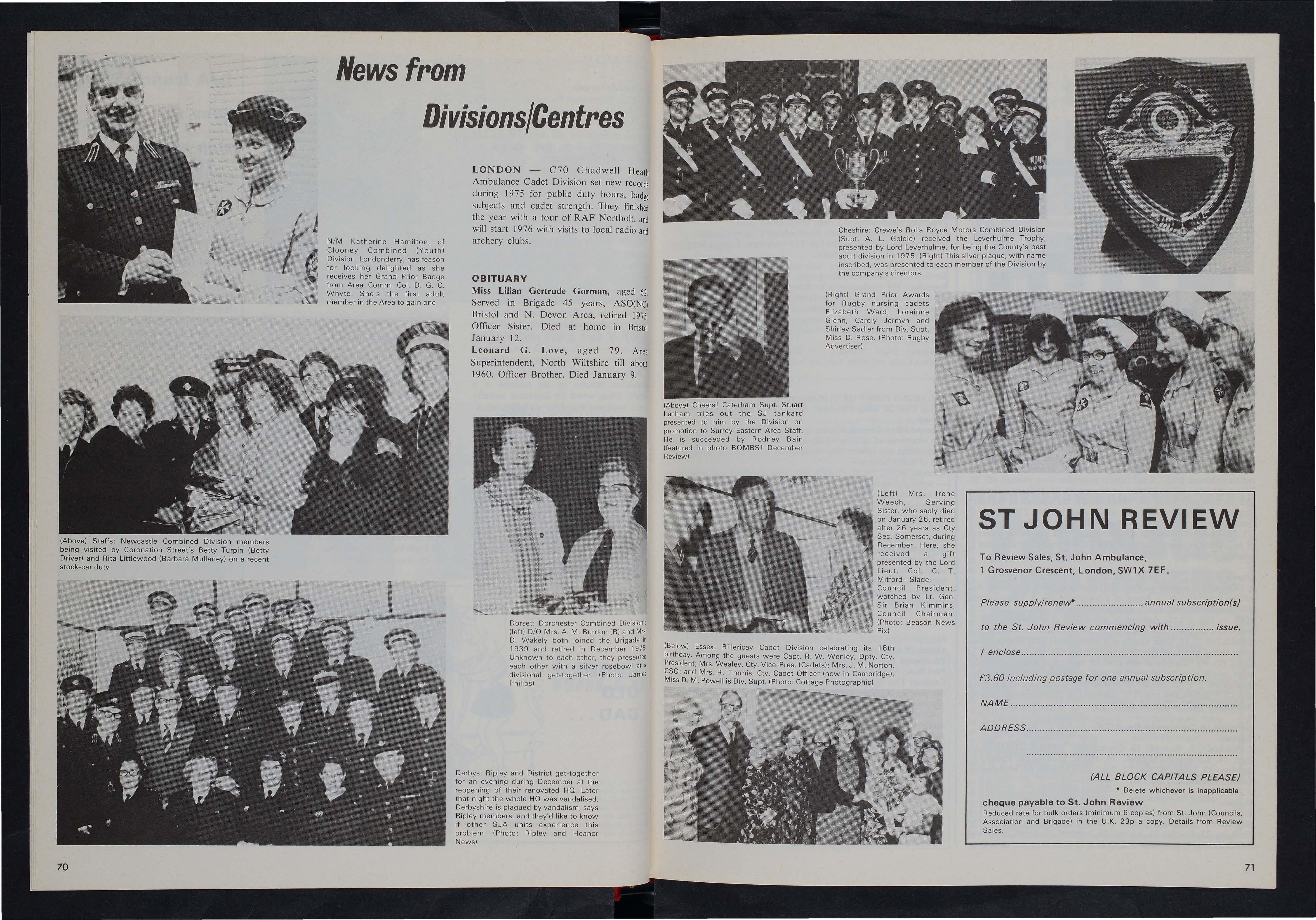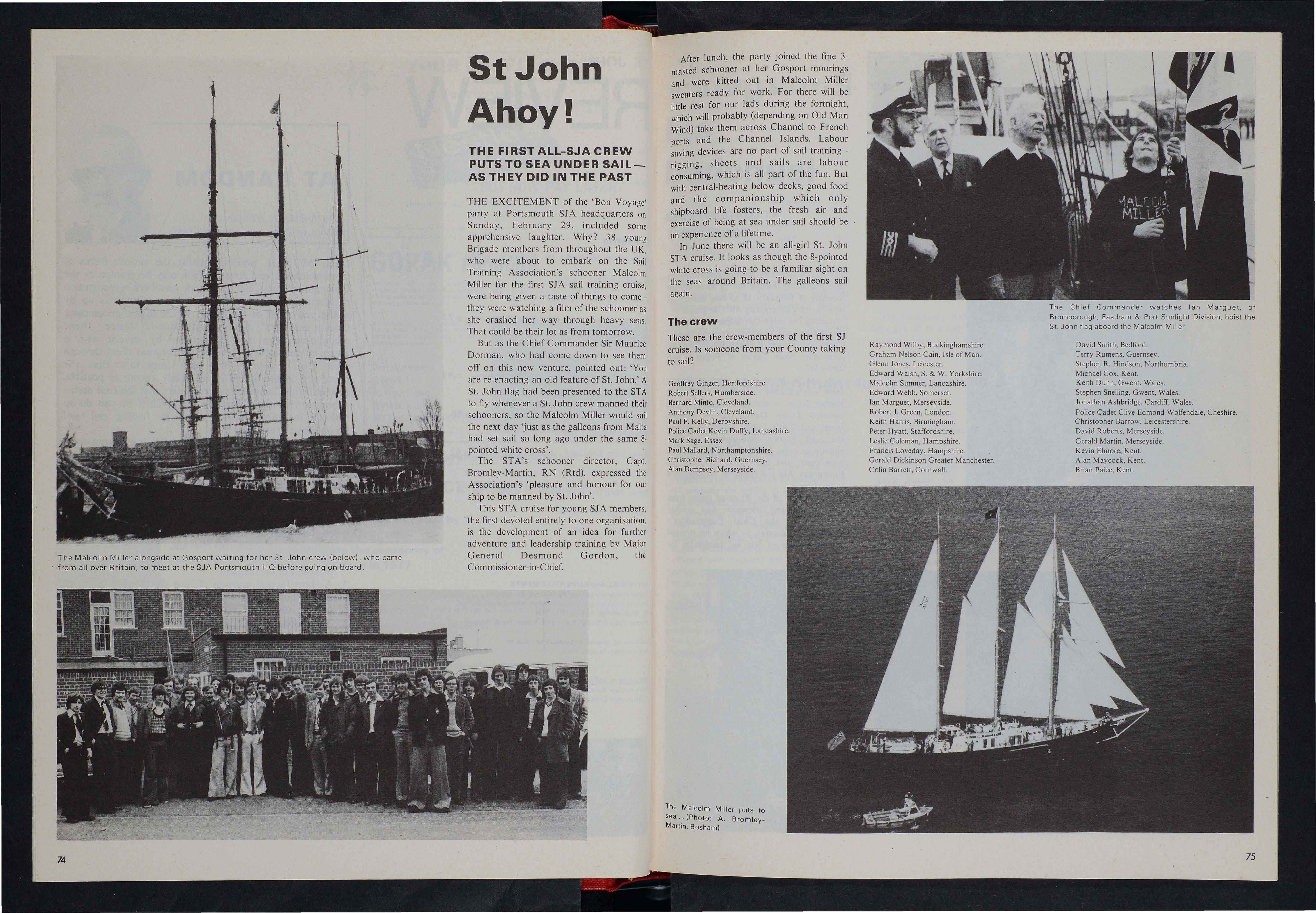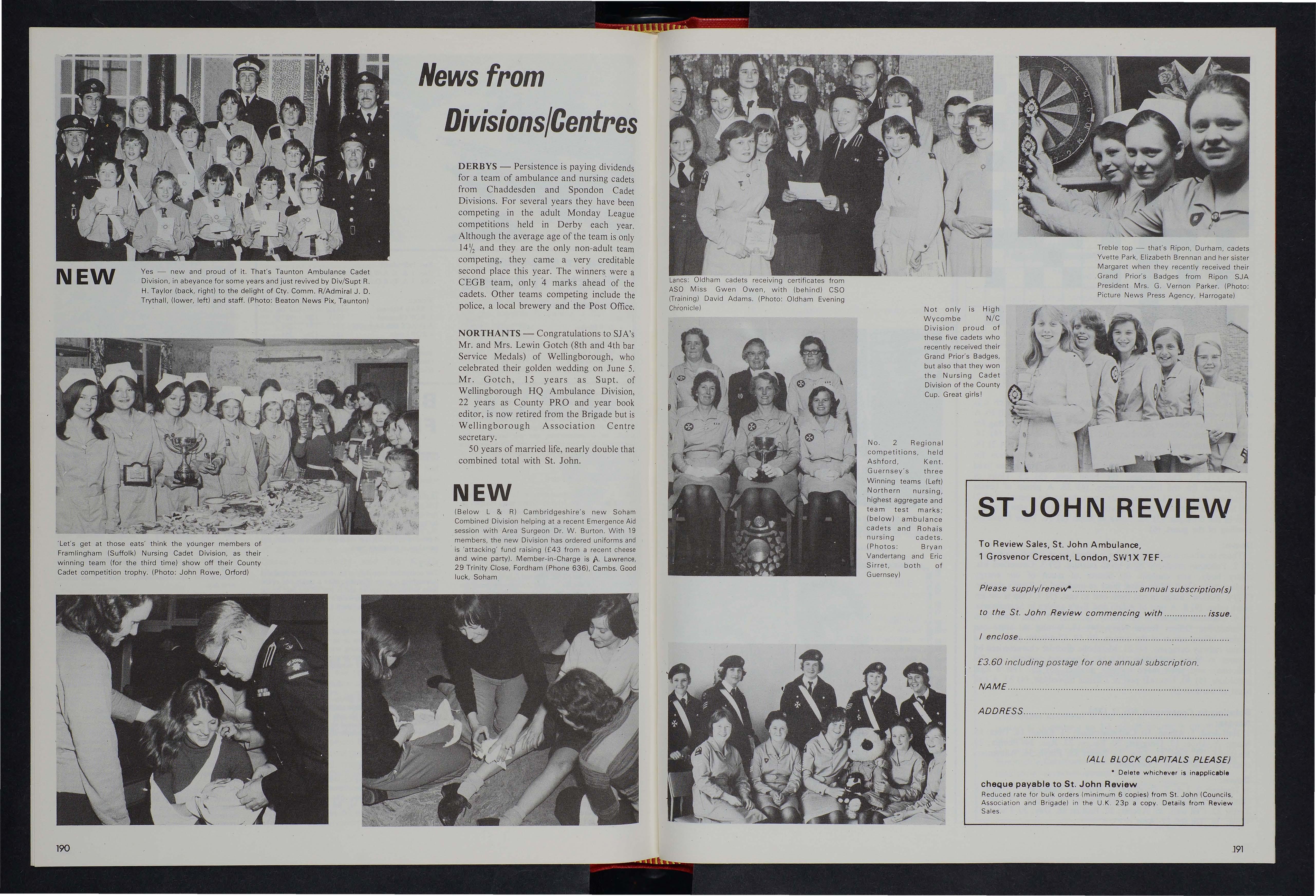 Perhaps there is a need to emphasise both goals when we strive to attract young people to St. John think we shall do well to ponder these wise words and apply them to our older as well as our younger members. The service of mankind must always be a challenging adventure , and our training for it must be challenging and adventurous too. Many of our leaders are already aware of this fact and act on it: those who do not are in danger of losing their right to hold positions of leadership , for they have certainly lost the power to lead: theirs are the divisions which sooner or later fold up through lack of purposeful and adventurous programmes , inability to see opportunities for new ways of serving when in a changing society some of the older ways disappear, and consequent inability to attract new recruits