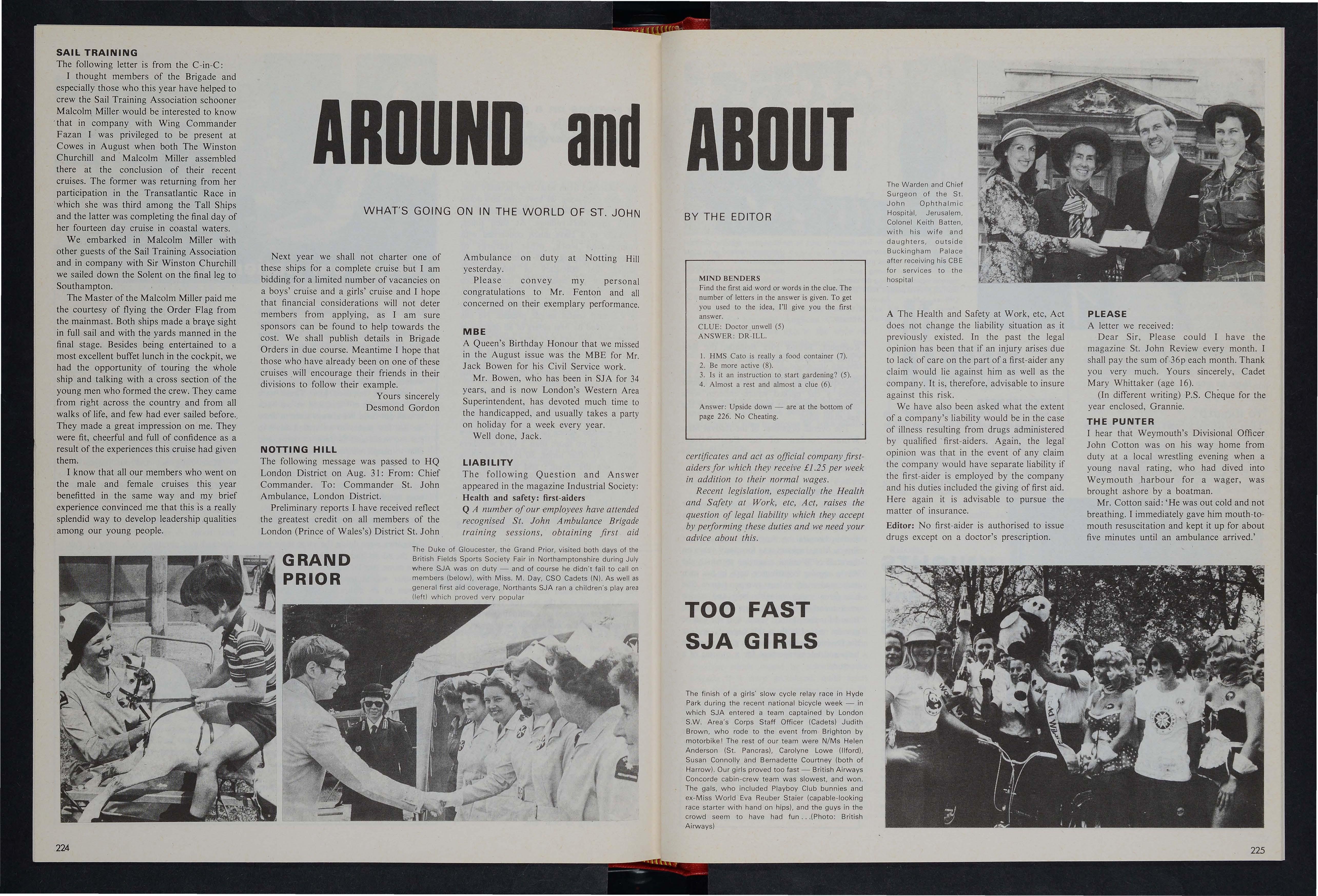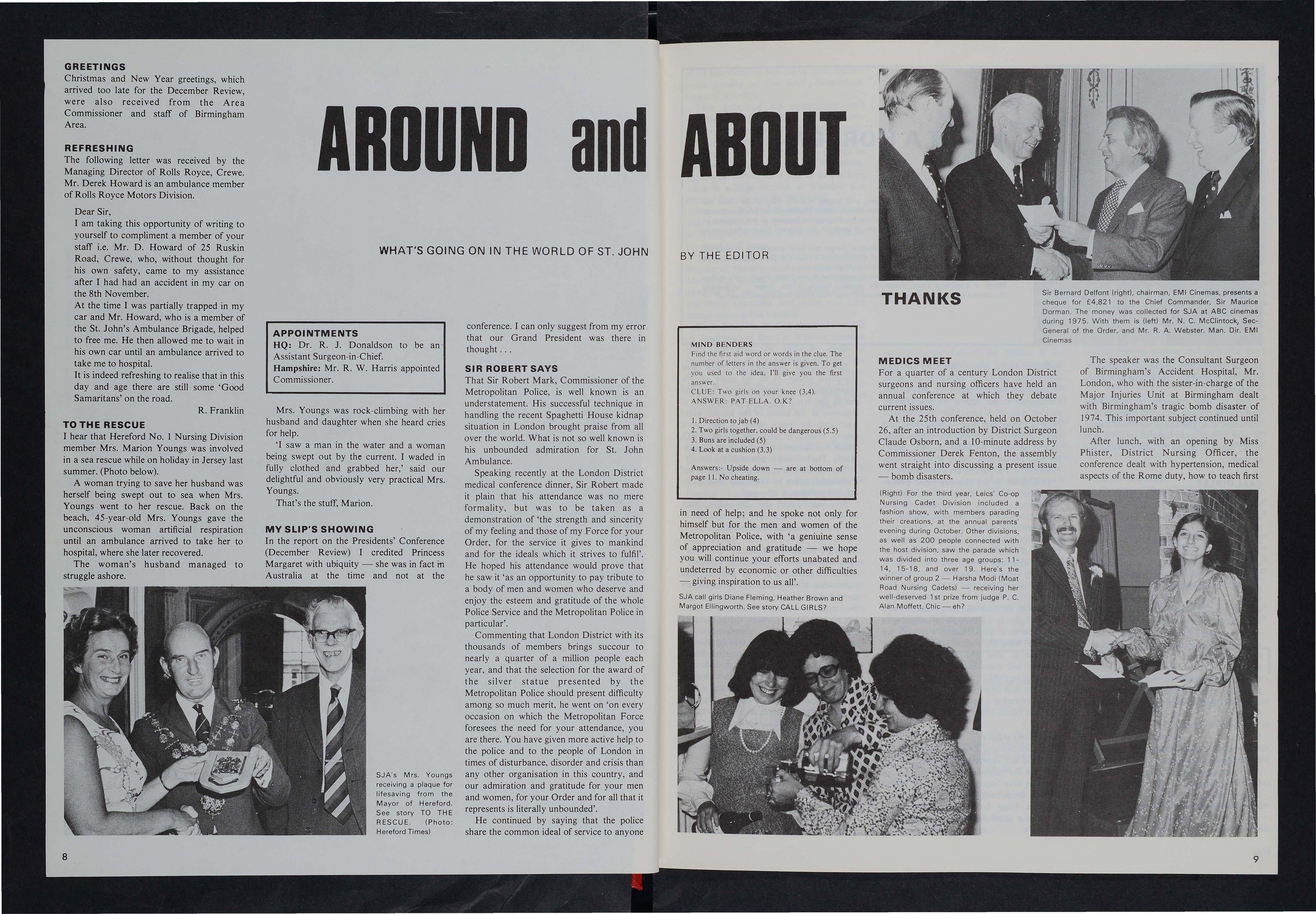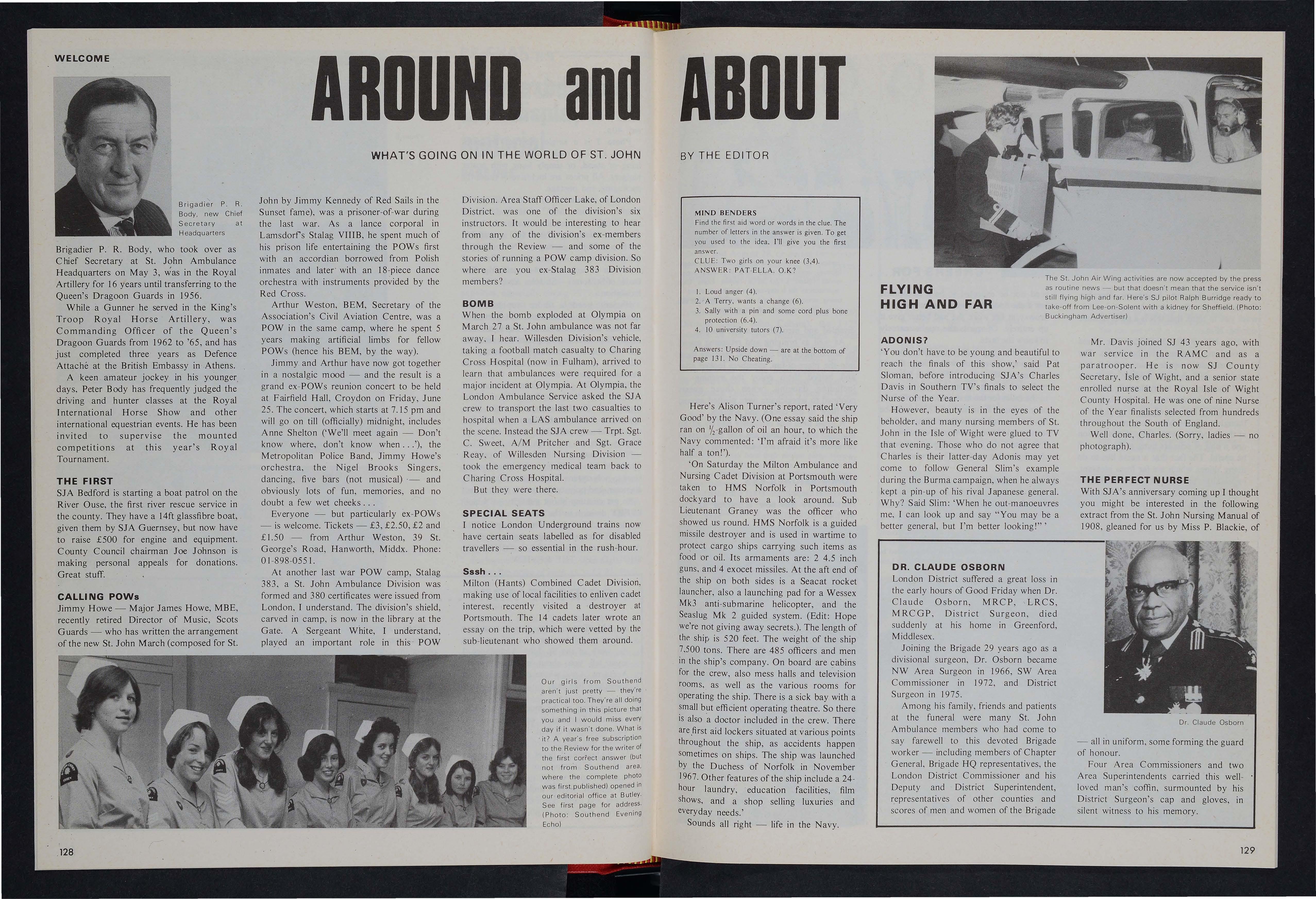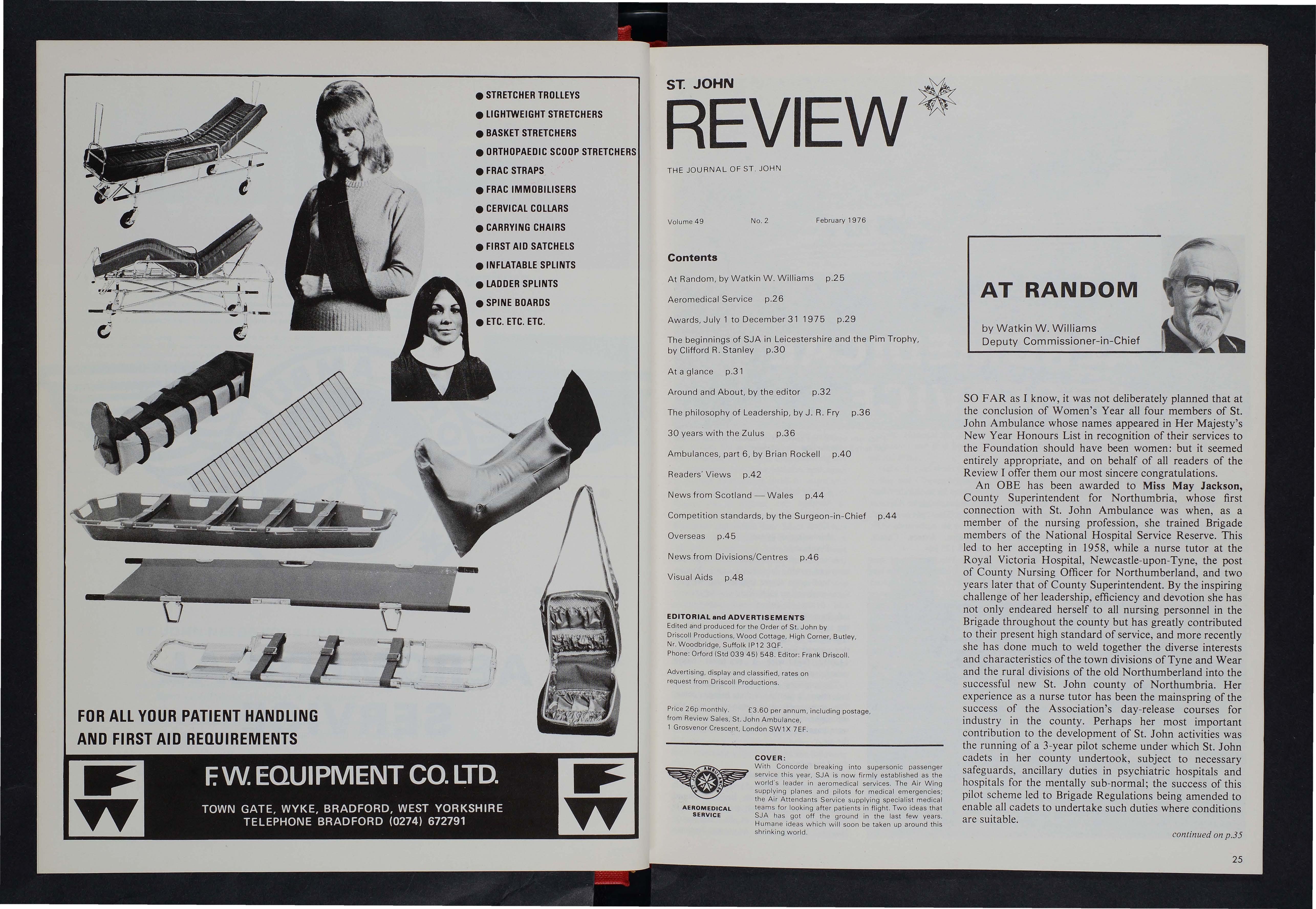 Perhaps there is a need to emphasise both goals when we strive to attract young people to St. John think we shall do well to ponder these wise words and apply them to our older as well as our younger members. The service of mankind must always be a challenging adventure , and our training for it must be challenging and adventurous too. Many of our leaders are already aware of this fact and act on it: those who do not are in danger of losing their right to hold positions of leadership , for they have certainly lost the power to lead: theirs are the divisions which sooner or later fold up through lack of purposeful and adventurous programmes , inability to see opportunities for new ways of serving when in a changing society some of the older ways disappear, and consequent inability to attract new recruits