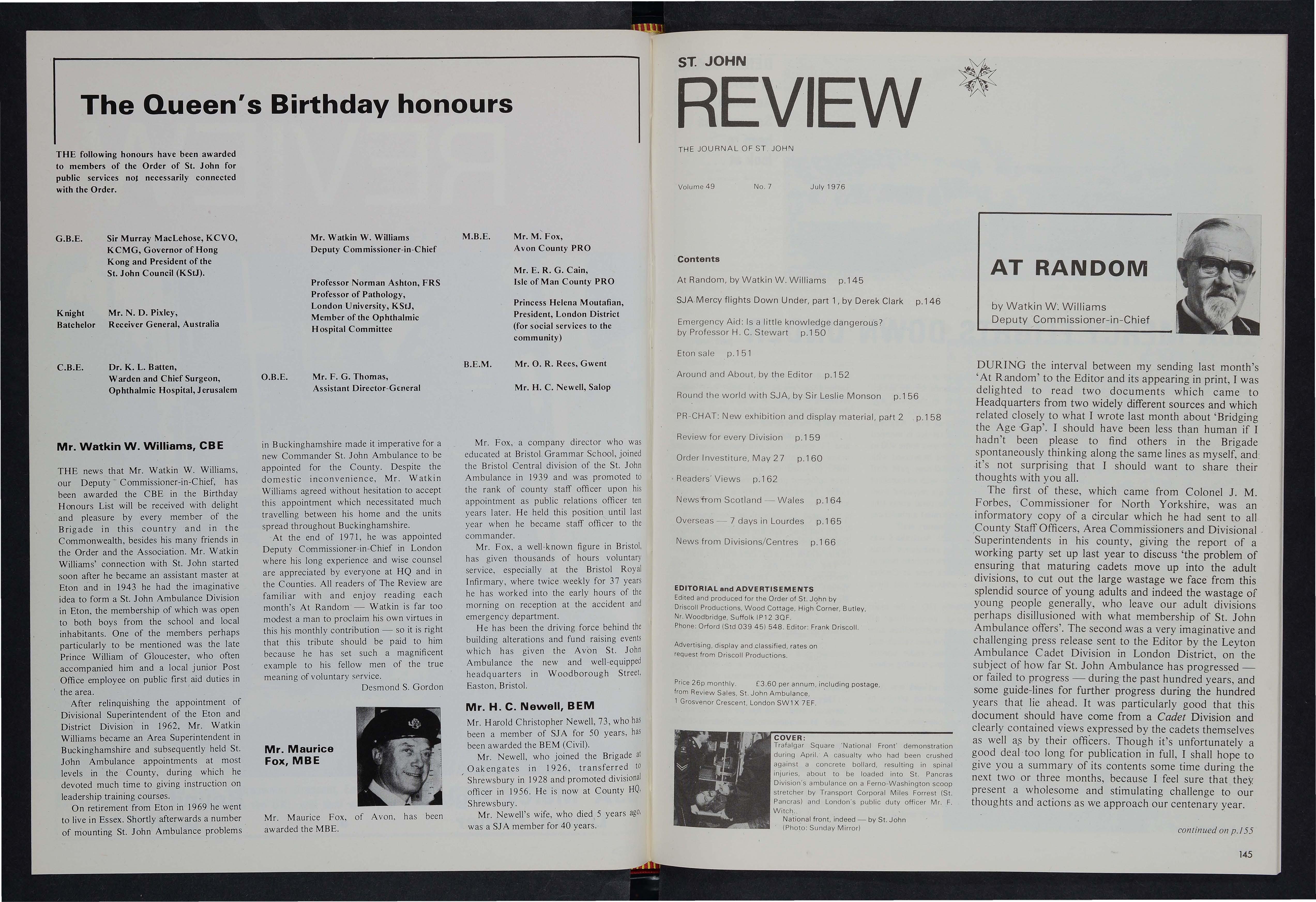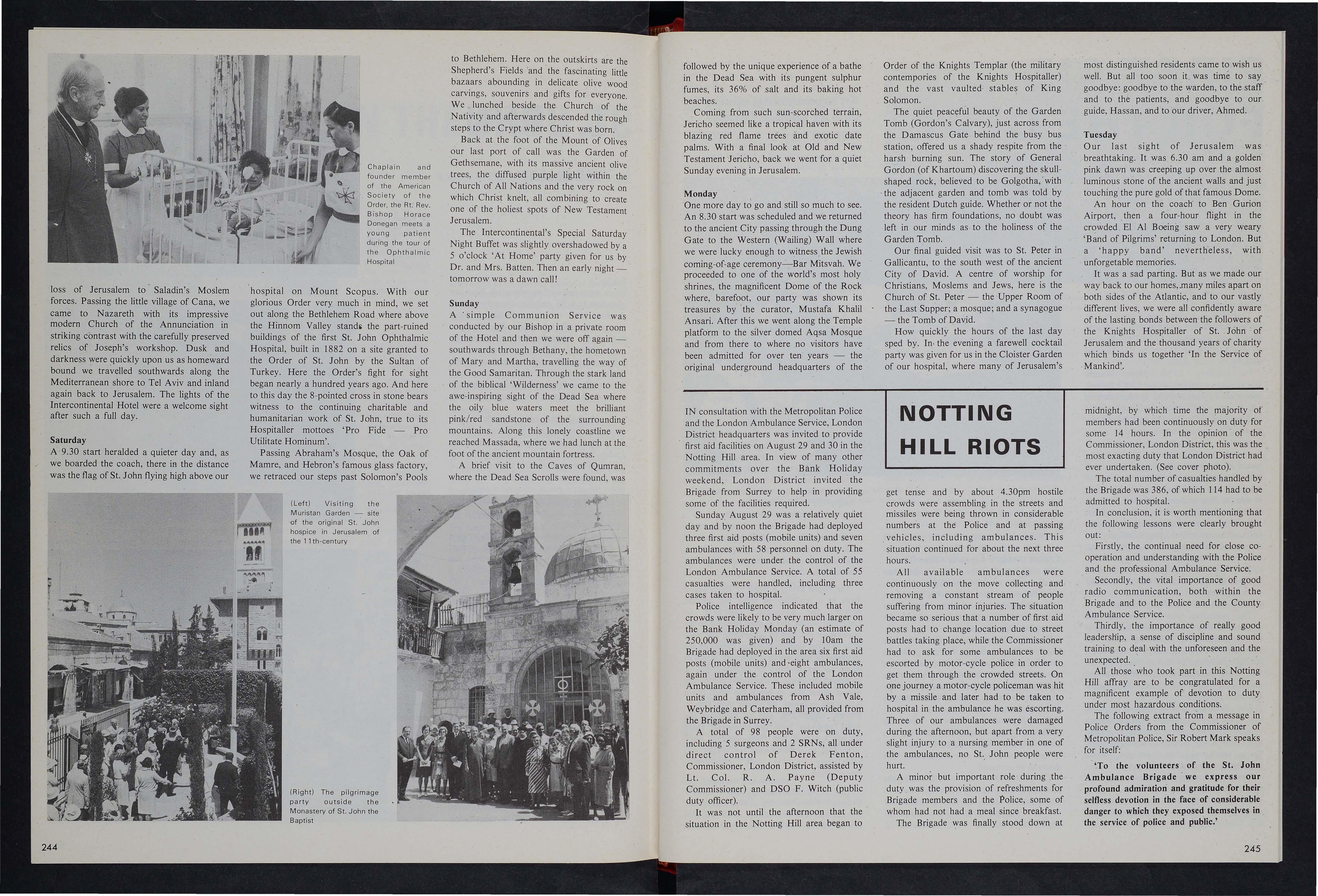 efficacy of the charitable activities of each Order gains immeasurably from close collaboration. Much more can be done together duplication of effort can be avoided; and we can support each other with help and advice so that our individual enterprises gain as well. Thirdly, we are faced today by the emergence of a plethora of unrecognised Orders of St. John, which are making things difficult for us and, because some of their members have eccentric ideas, may be affecting the support of a public which cannot be expected to distinguish the recognised from the unrecognised. The recognised Orders of St. John, including of course ourselves and the Sovereign Order of Malta, are being drawn together in the face of this threat; and the more we act together, the more effectively we will be able to combat it. J,R -S.