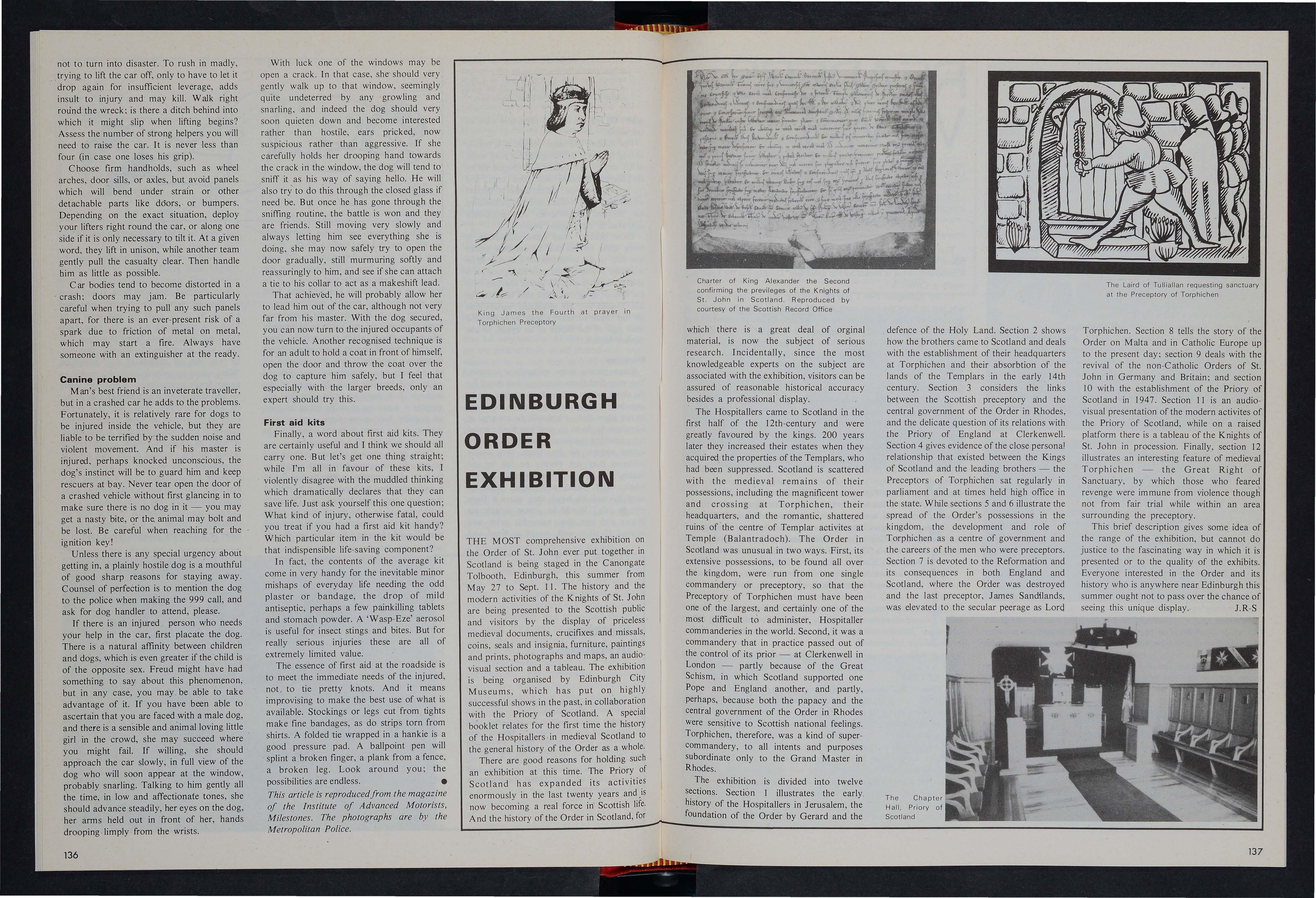 ONE of the most encouraging developments of the last few years has been the growing links between the Scottish Priory and the Scottish members of the Sovereign Military Order of Malta This, of course, reflects the increasing collaboration between the Orders that is to be found in England and it has special significance in three ways. First, it has been in the past rather sad to see how few contacts there were between the Order of St. John, an order of chivalry dedicated to Hospitaller ideals, and the Order of Malta, still in fact a religious order with unbroken continuity from the medieval brothers of St. John.