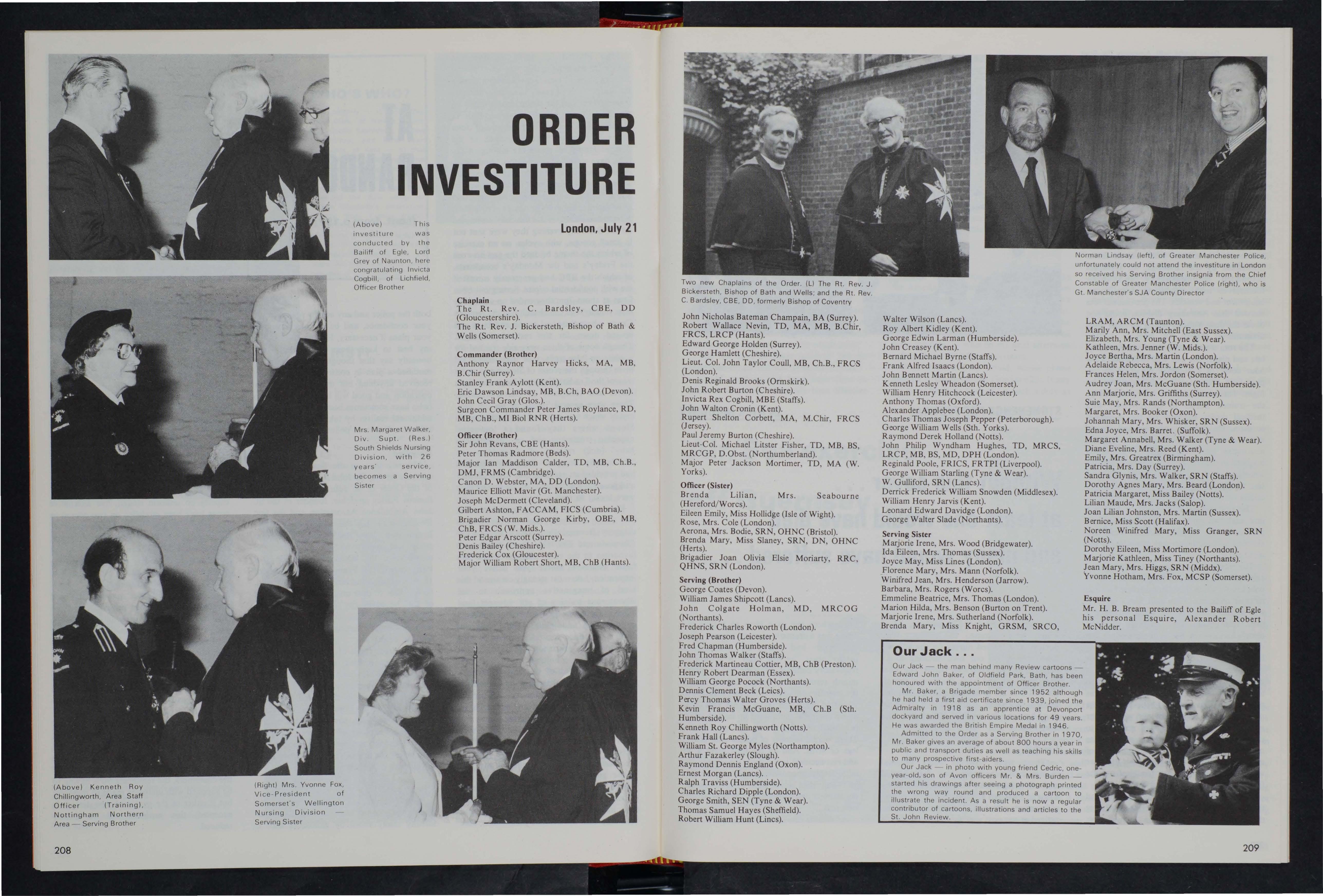 over my official appointment at the end of 1977. I say 'official appointment' because it's clear that St. John isn't going to let me entirely off the hook; nor would I (selfishly) wish this to be so, provided that I can go on doing one or two useful jobs without breathing down the necks of my successors in others. Colonel Pat Adams has already taken over last month the chairmanship of the Regulations and Dress Revision Committee, while Mr. Gerald Easton has begun understudying various of my tasks as Deputy C -in - C, and I shall be handing over to him the chairmanship of the Brigade Investigation Committee at about the end of January when the current batch of recommendations has been fully considered by that committee and forwarded to the Chancery of the Order.