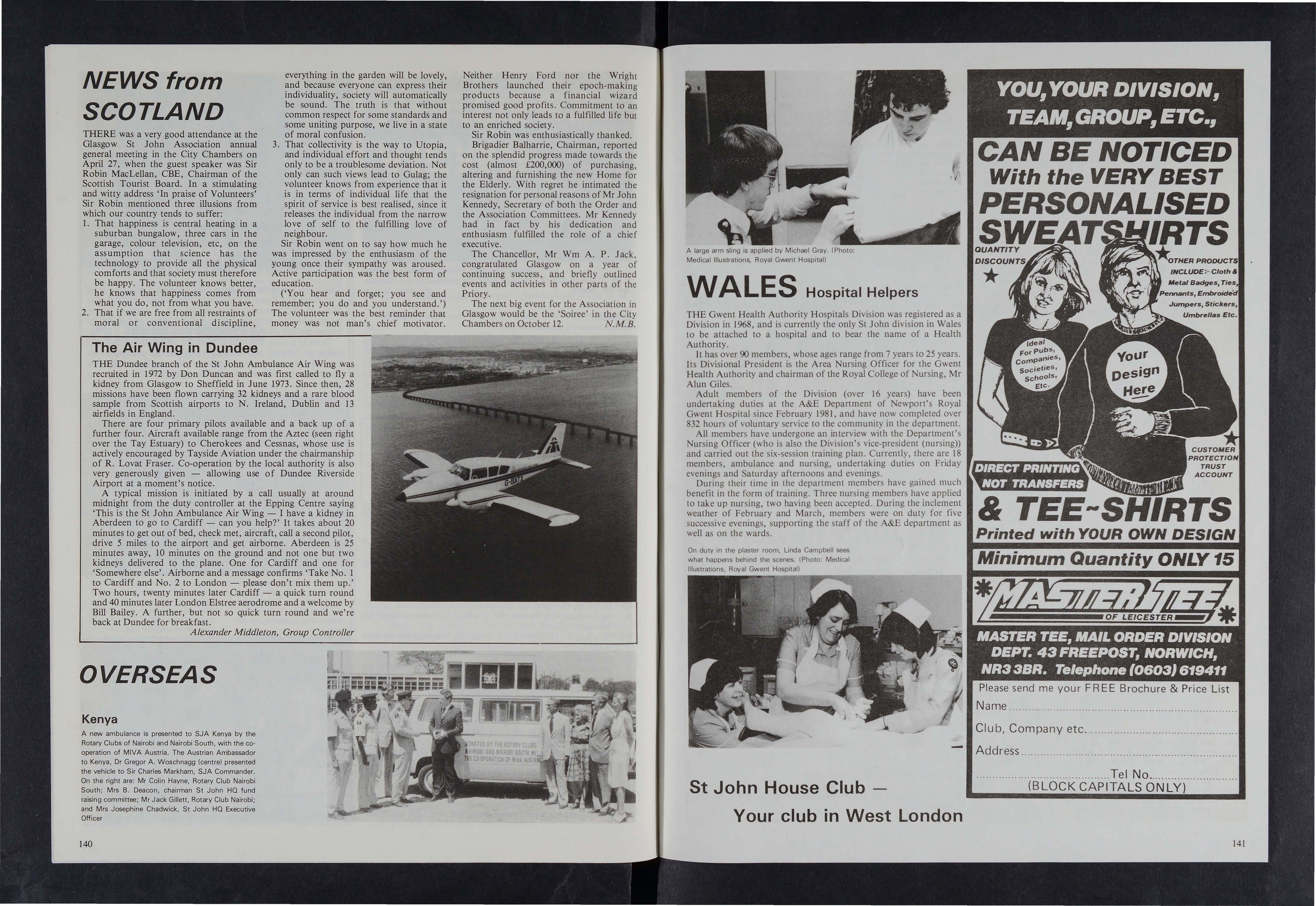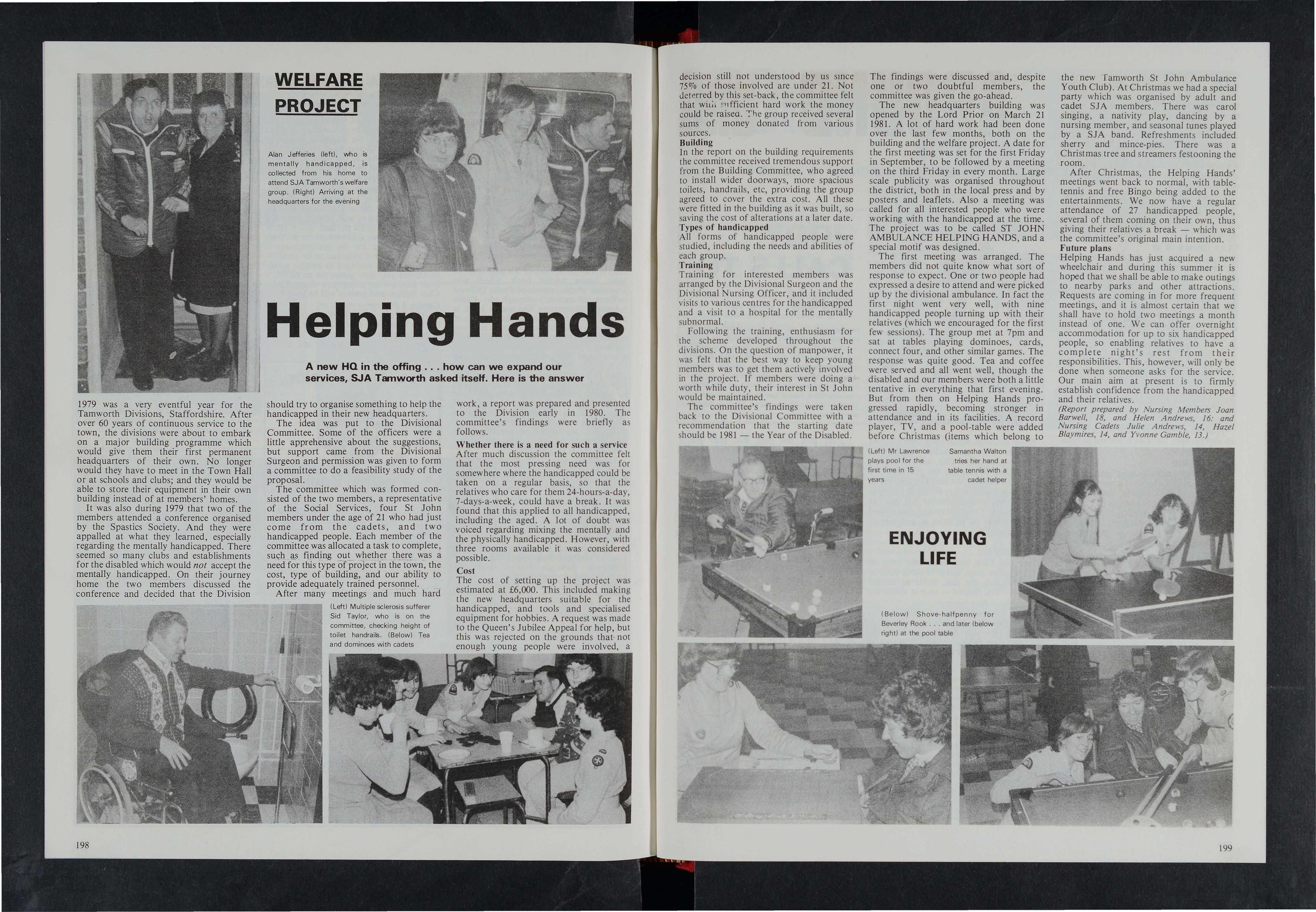 Like the term CSt John Association' the words CSt John Cadets' do not mean in Scotland exactly what they may signify elsewhere. Having no St John Ambulance Brigade attached to the Order in the Priory of Scotland, local Associations support their Area Order Committees in good works of many different kinds, much, but not all of it, related to the handicapped, the elderly and the hospitalised.
