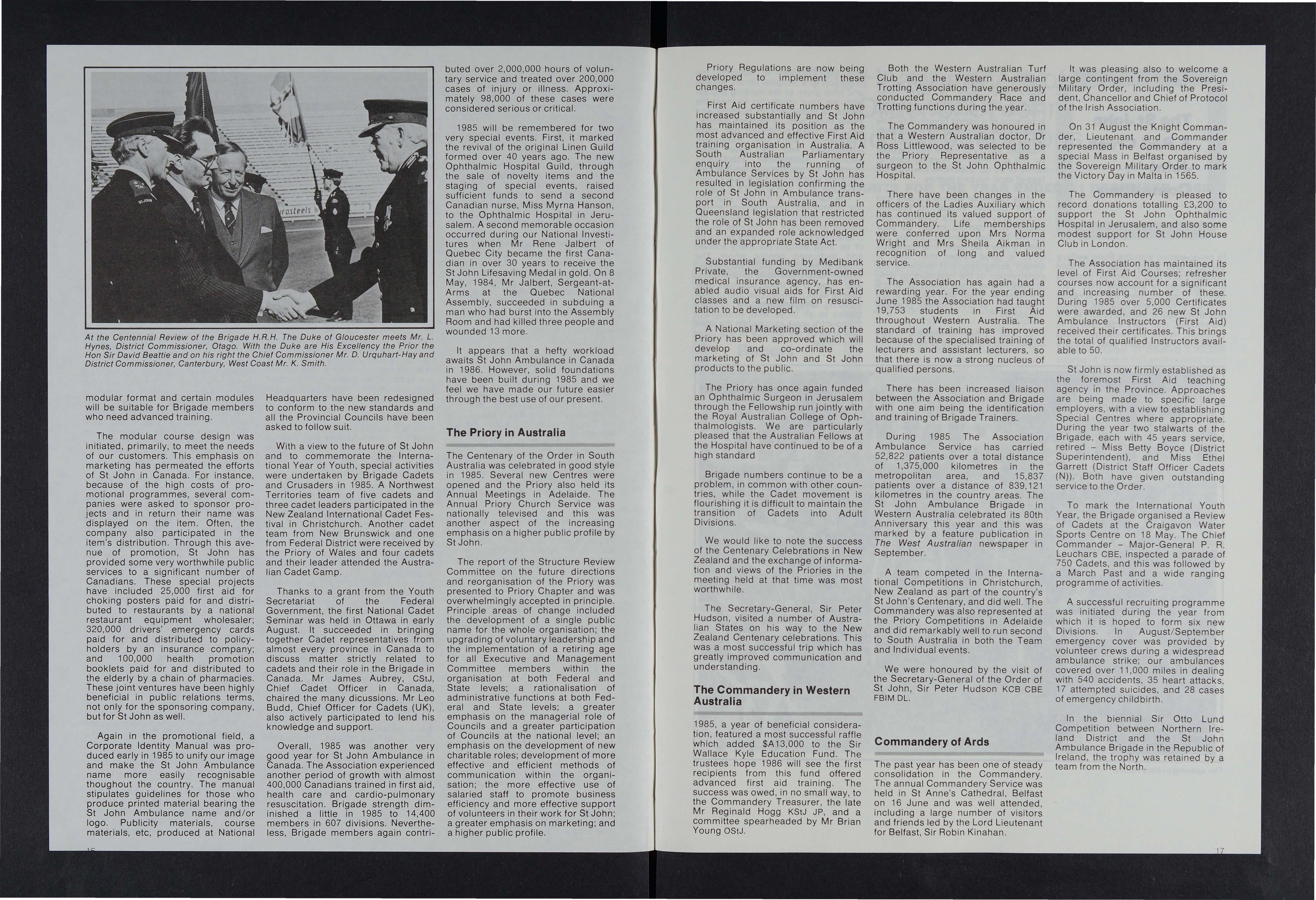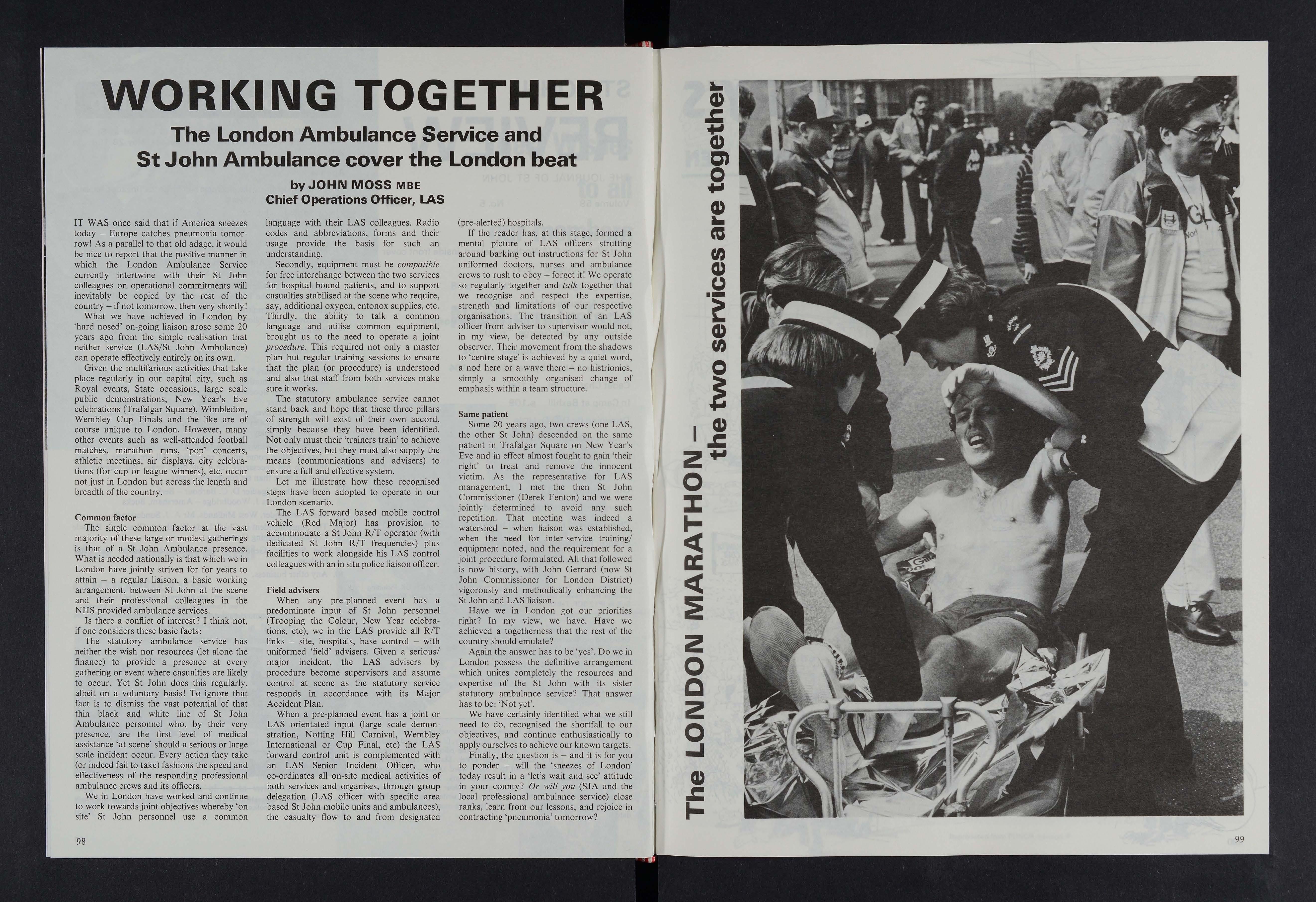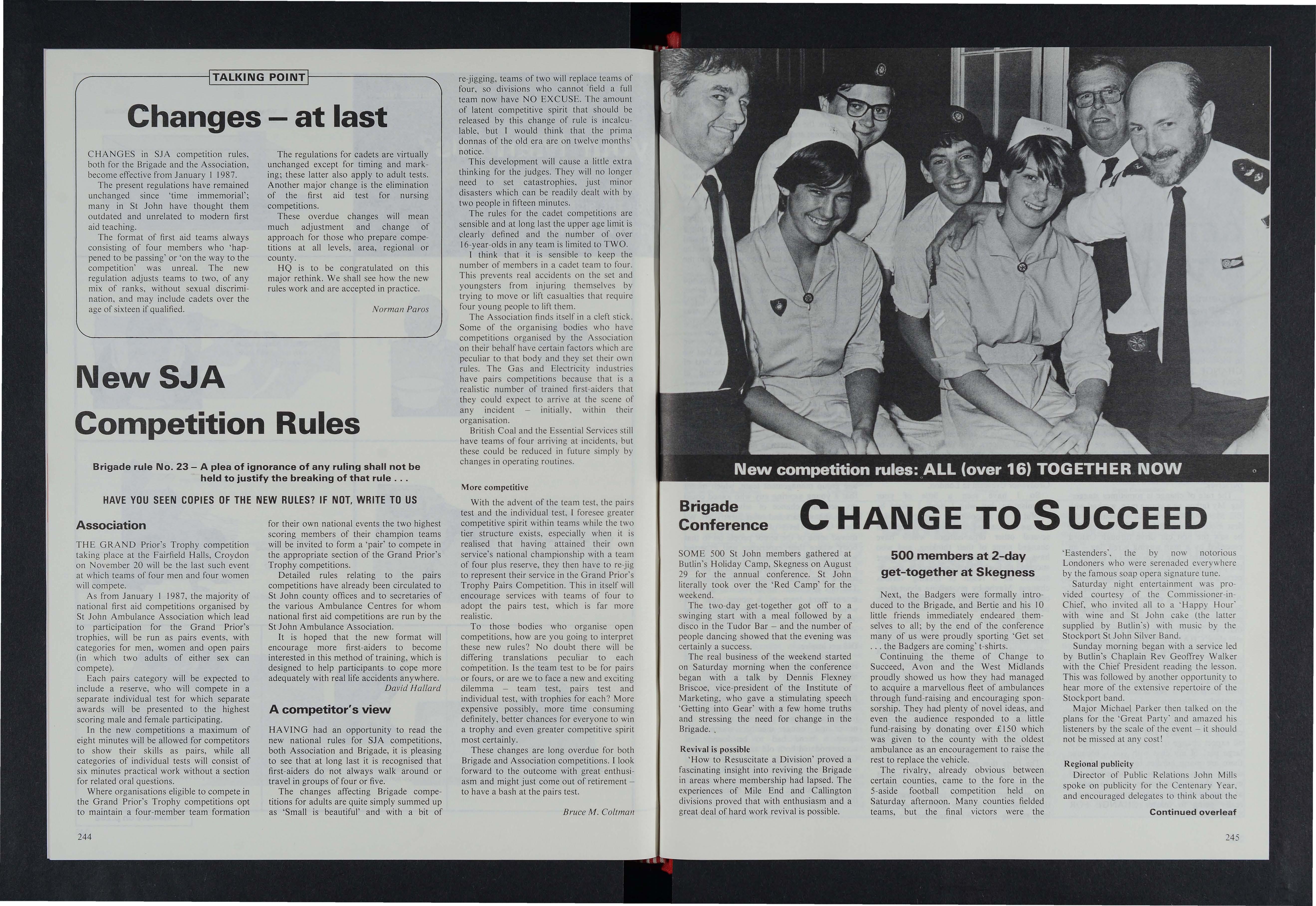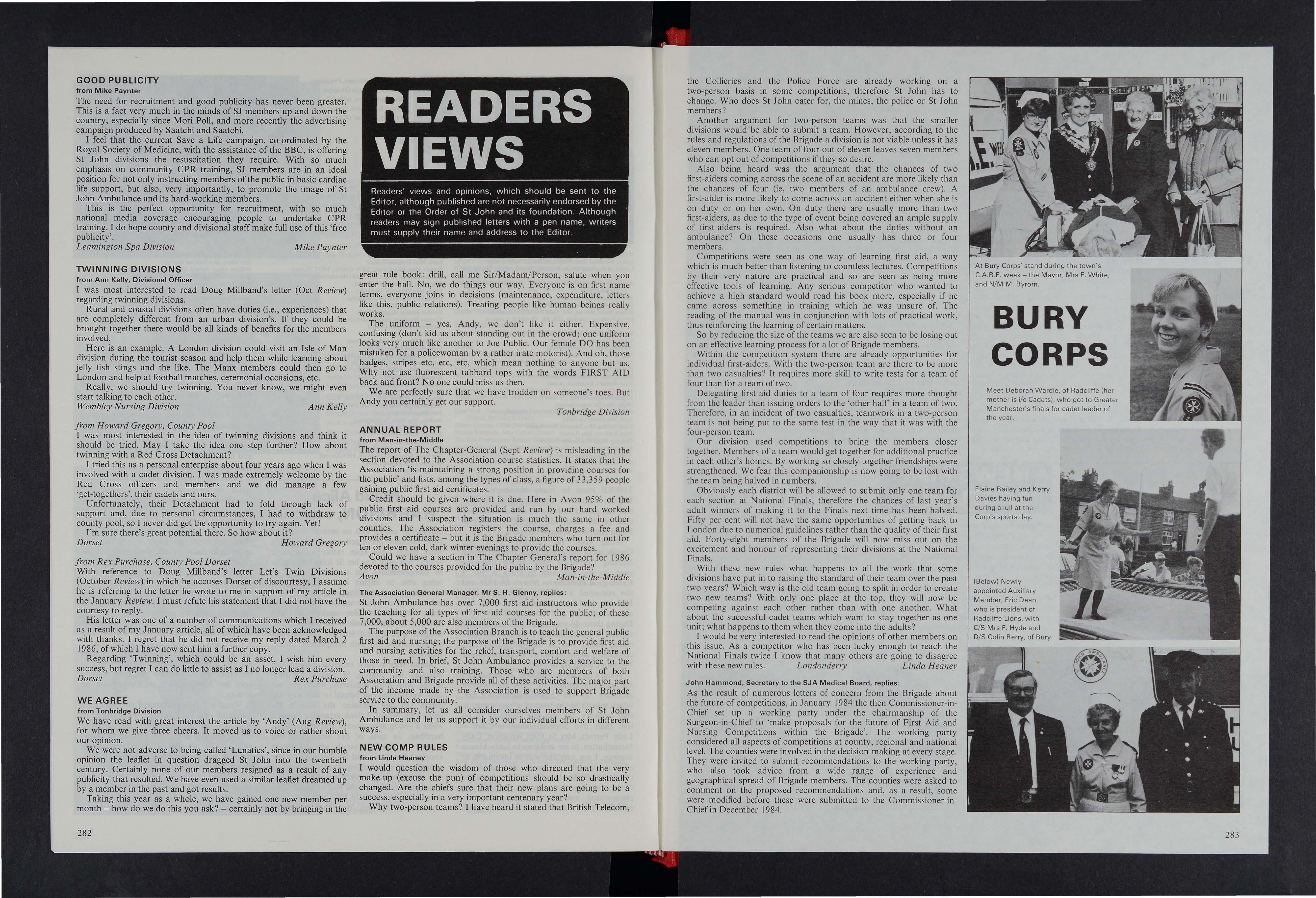 'British Telecom, the Collieries, the Police Force are already working on a two-person basis .. therefore St John has to change'. While the Brigade had made its decision by the end of 1984 to change to pair teams, the Association did not hold discussions with the organisations