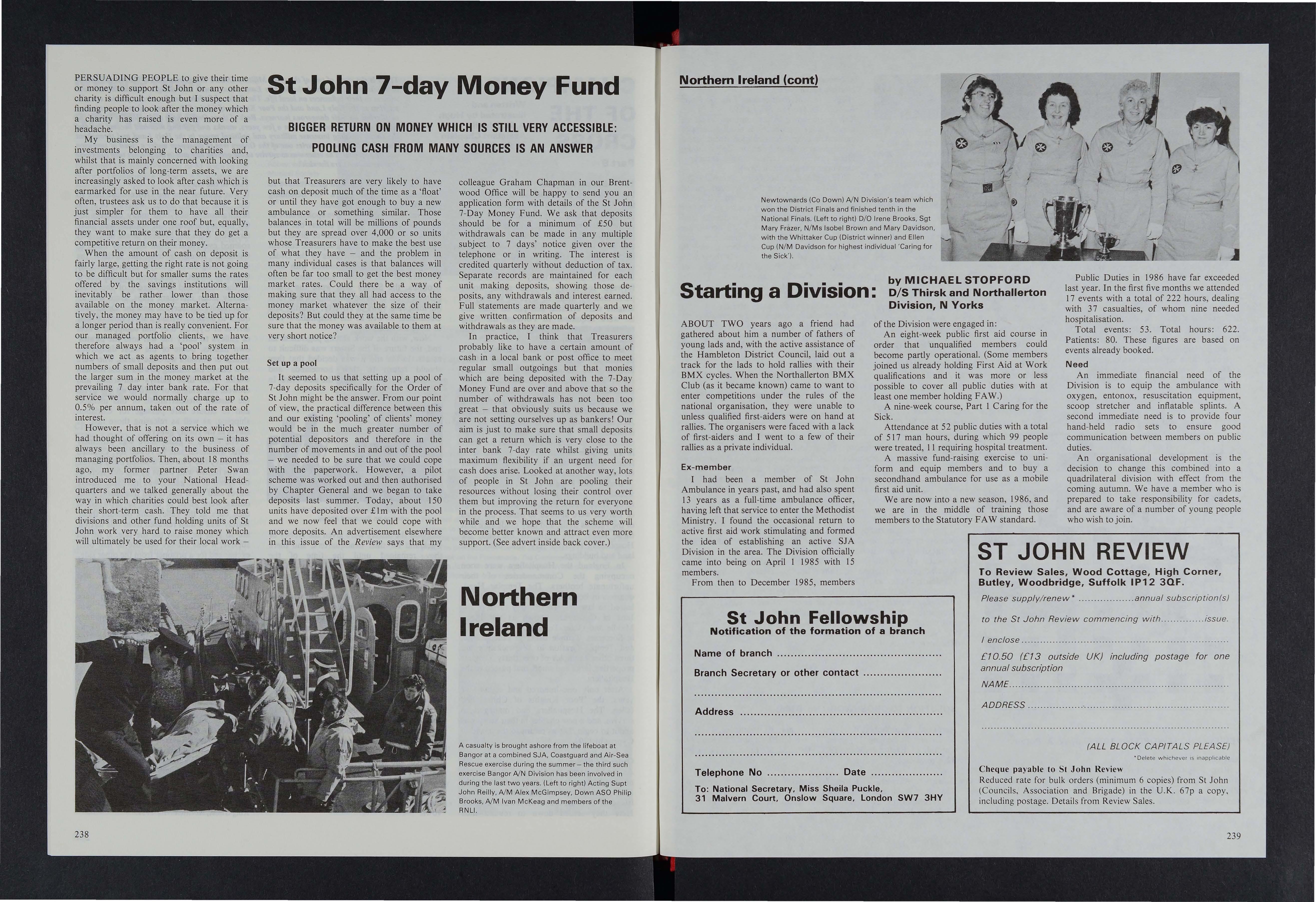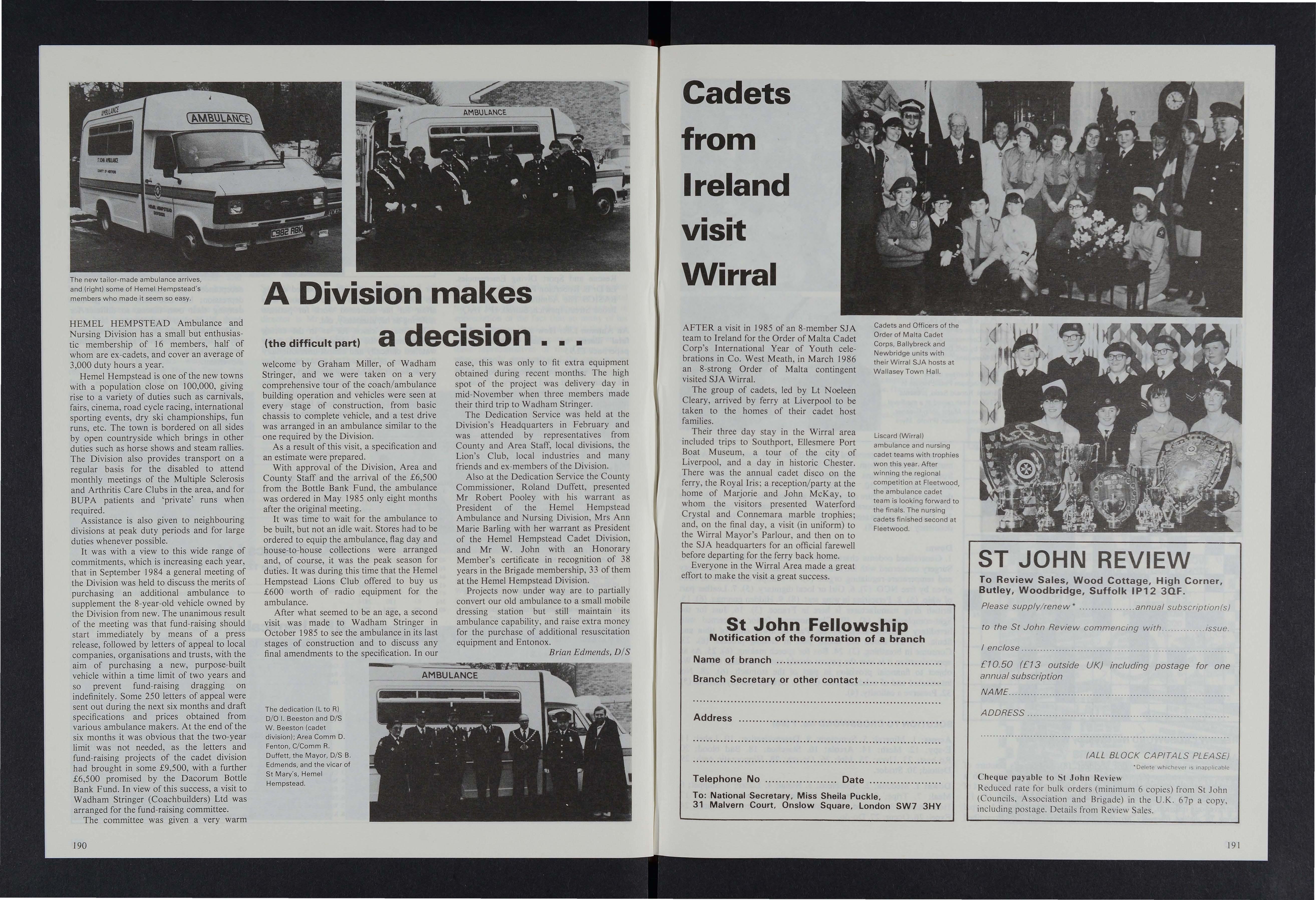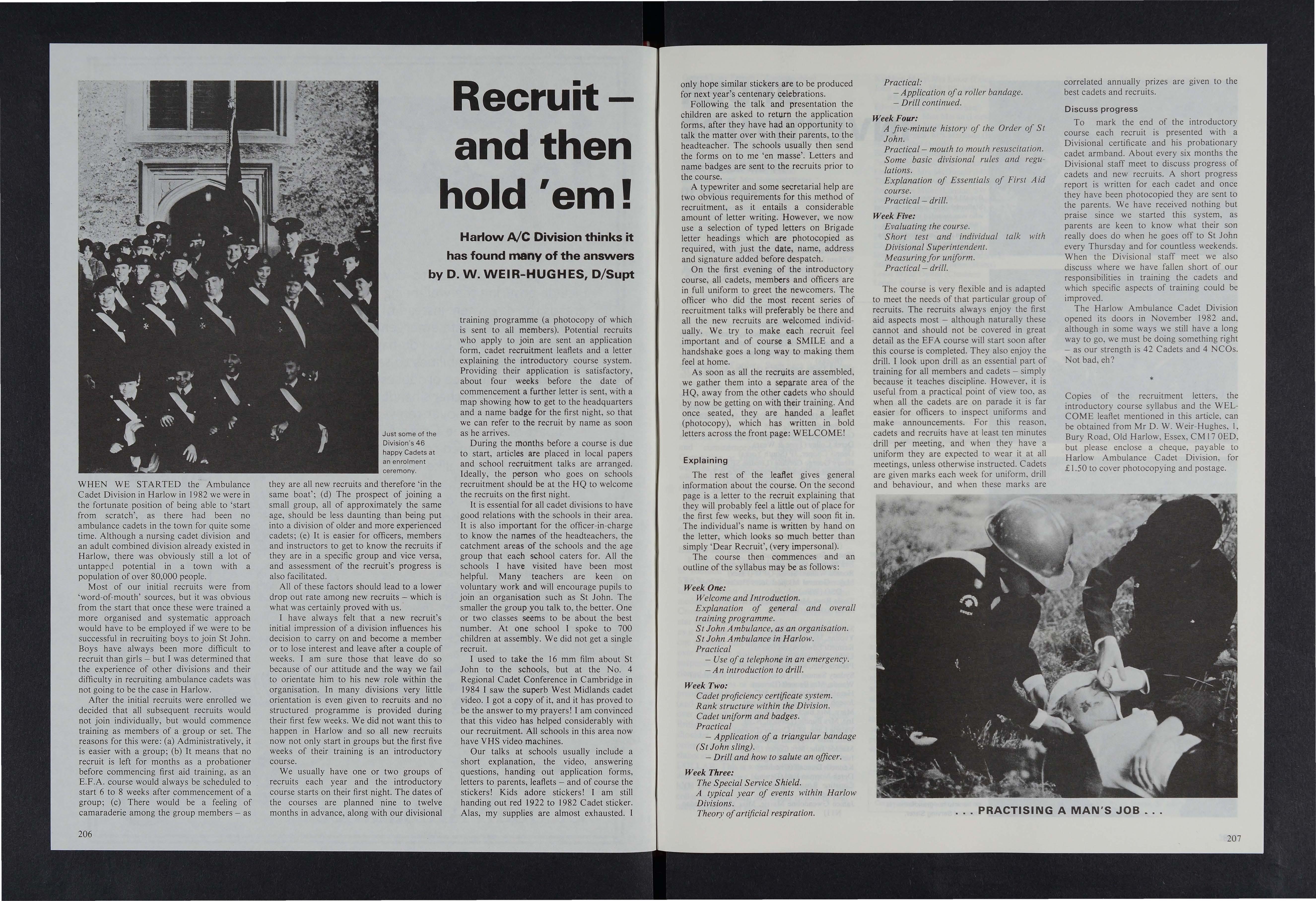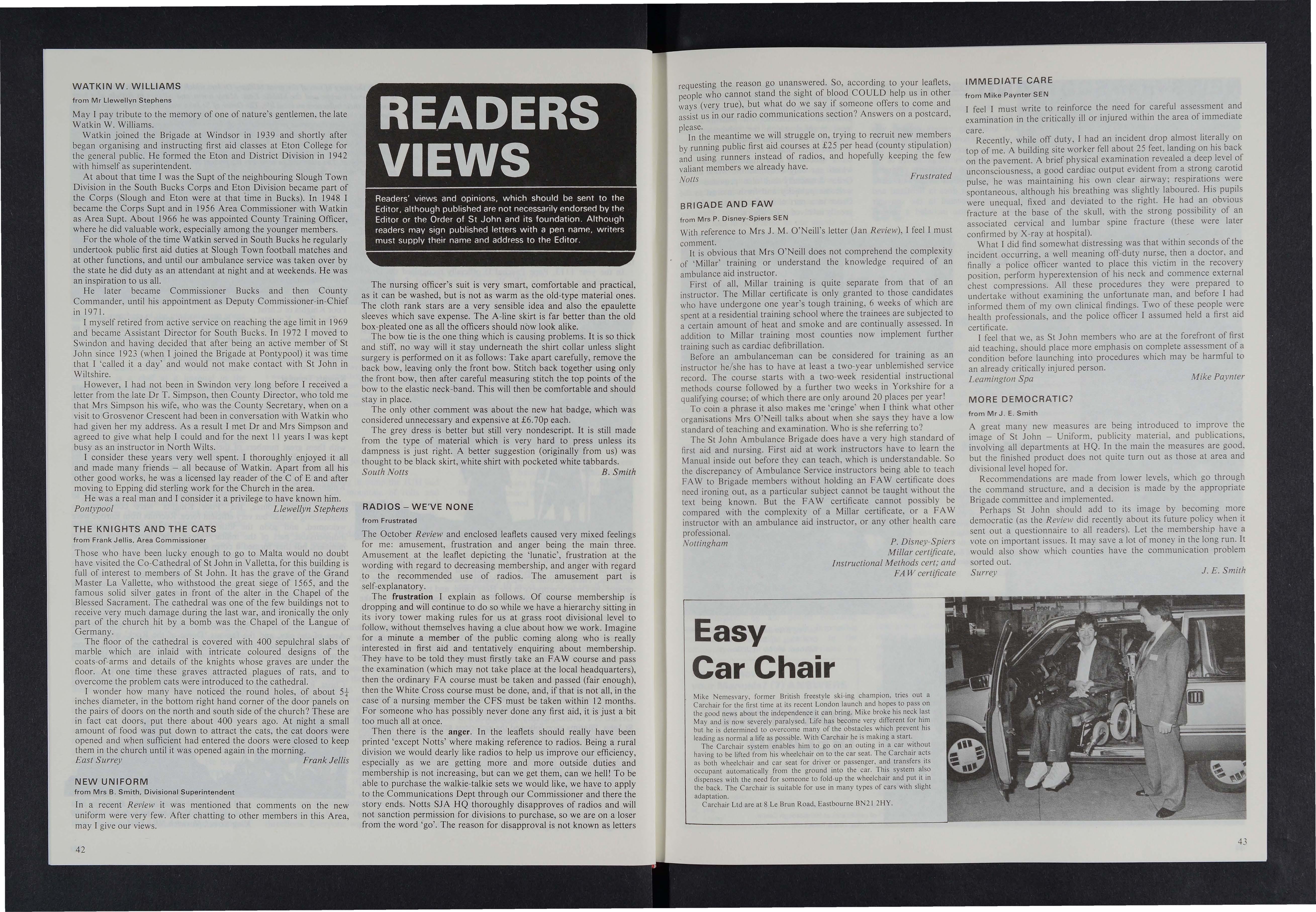 'British Telecom, the Collieries, the Police Force are already working on a two-person basis .. therefore St John has to change'. While the Brigade had made its decision by the end of 1984 to change to pair teams, the Association did not hold discussions with the organisations