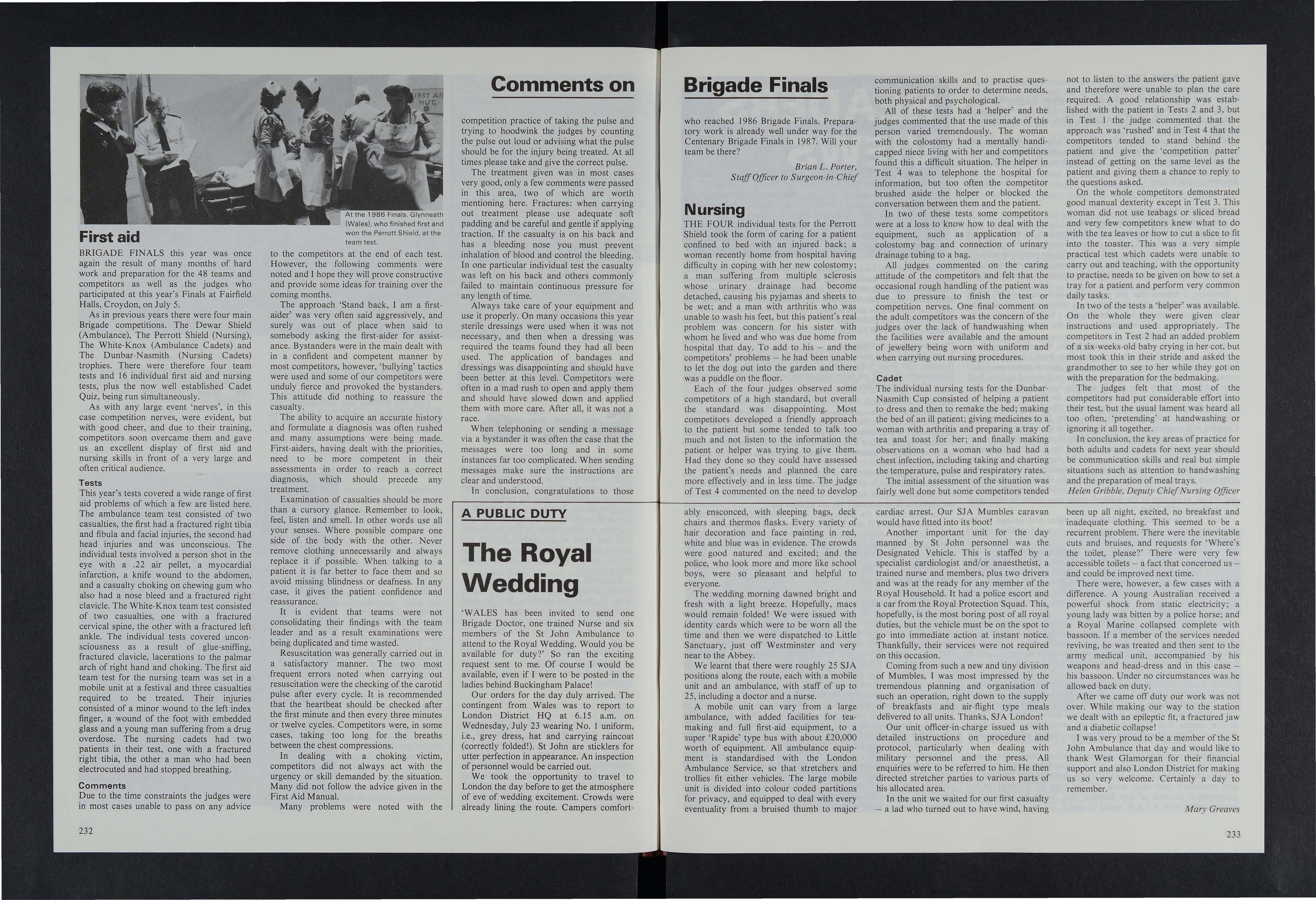 However, as the day went on in came the casualties, with cuts and bruises two fractures (that had to go to hospital ) and many other complaints. It began to rain heavily - how boys love mud, pounds of it often had to be washed away before the injury could be found, said Joyce Ware the cadet supt. Chairman of Gloucestershire's joint SJA!BRCS