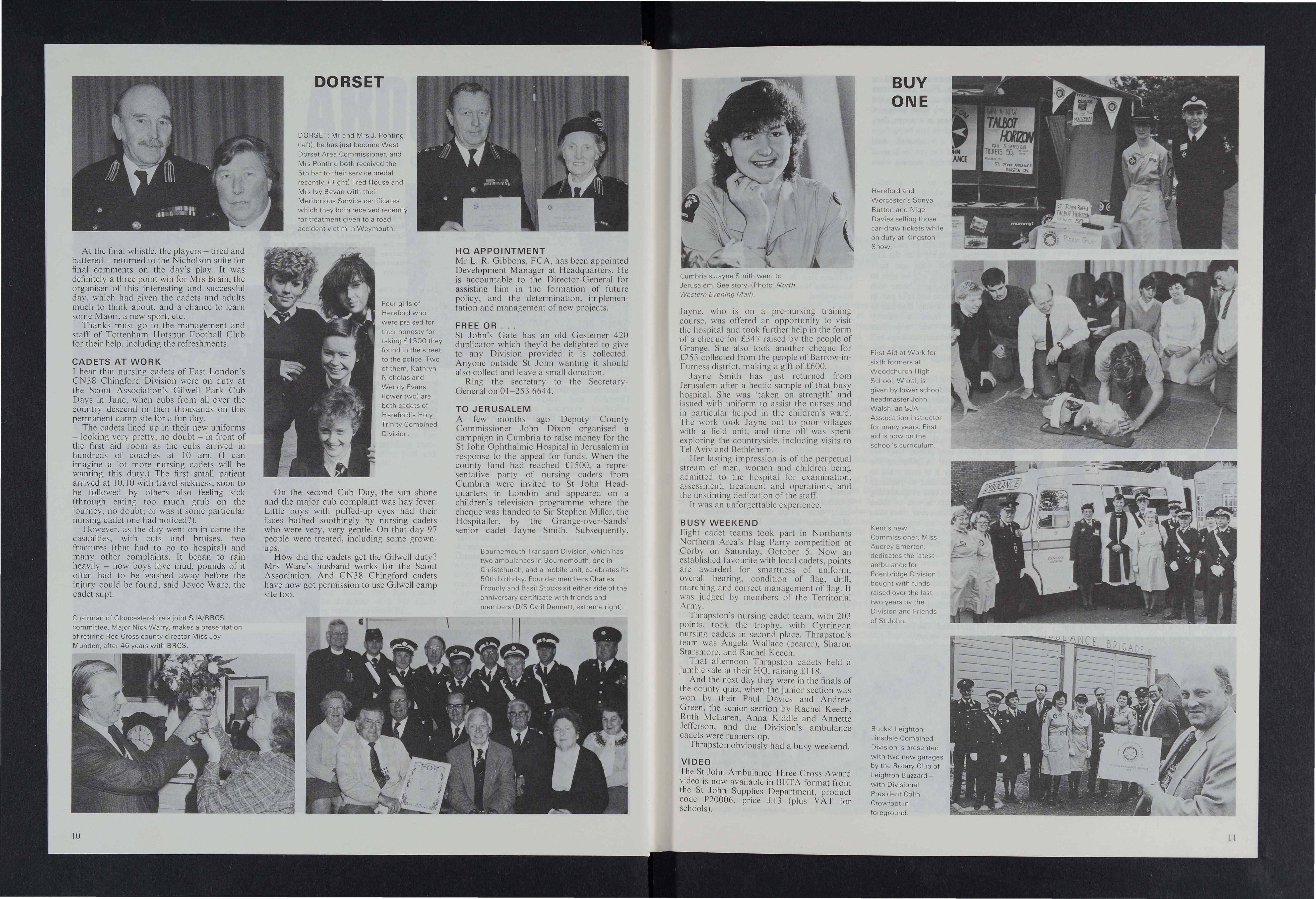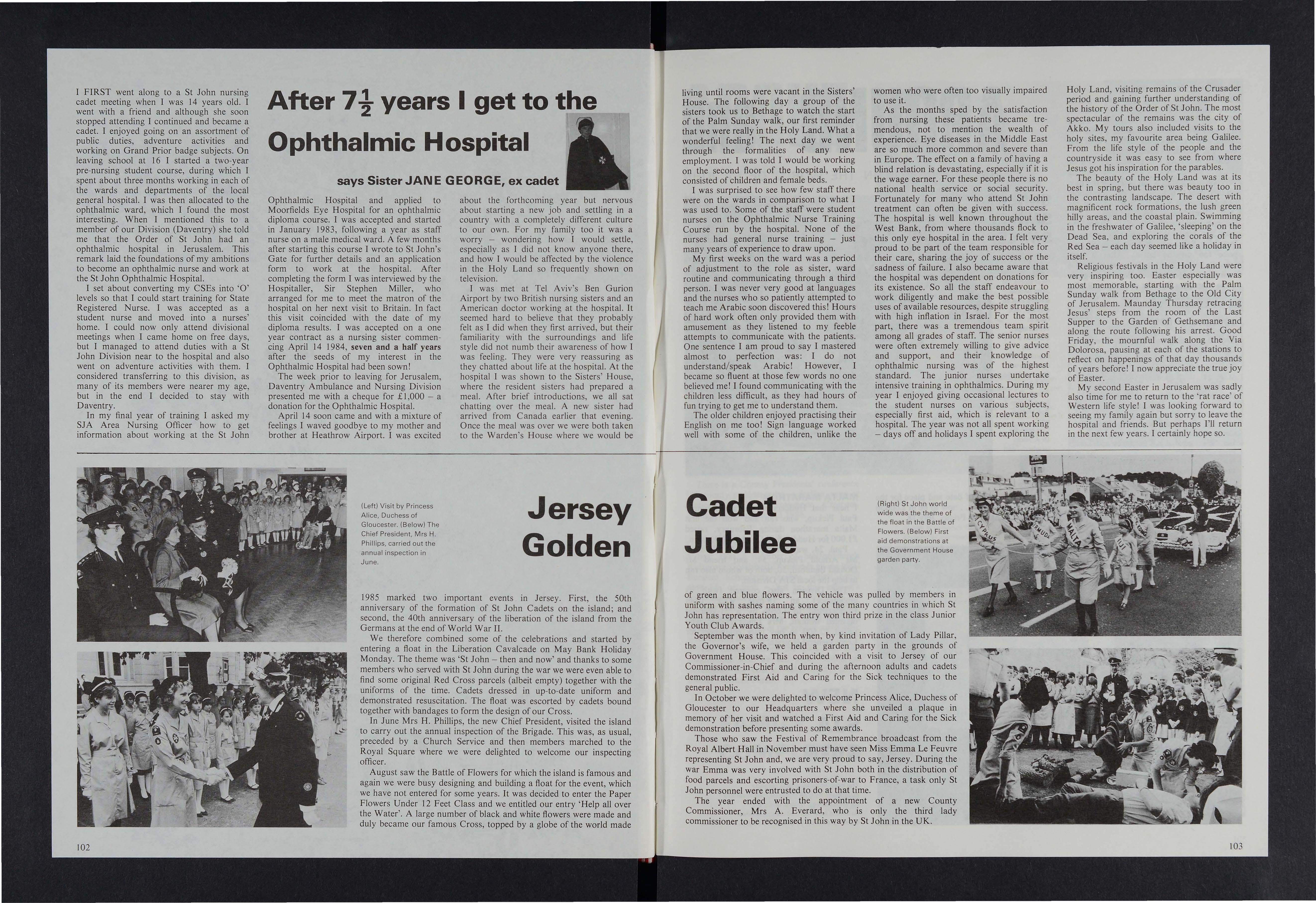 A few months ago Deputy County Commissioner John Dixon organised a campaign in Cumbria to raise money for the St John Ophthalmic Hospital in Jerusalem in response to the appeal for funds. When the co unt y fund had reached £ I 500, a r epresentative party of nursing cadets from Cumbria were i nvi ted to St J ohn H eadquarters in London and appeared on a children's television programme where the cheque was handed to Sir Stephen Miller, the Hospitaller , by the Grange -over -Sand' senior cadet Jayne Smith. Subsequently,