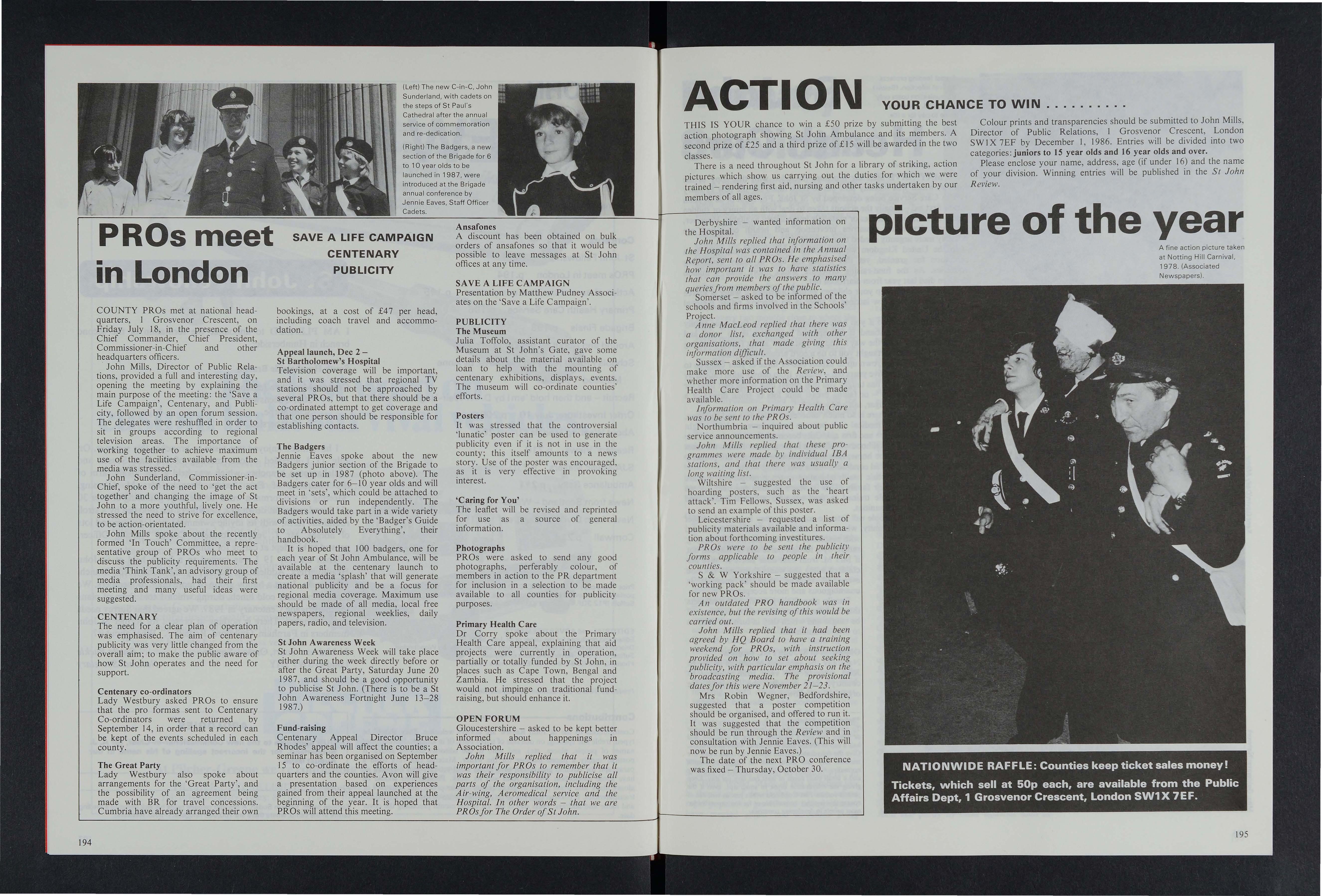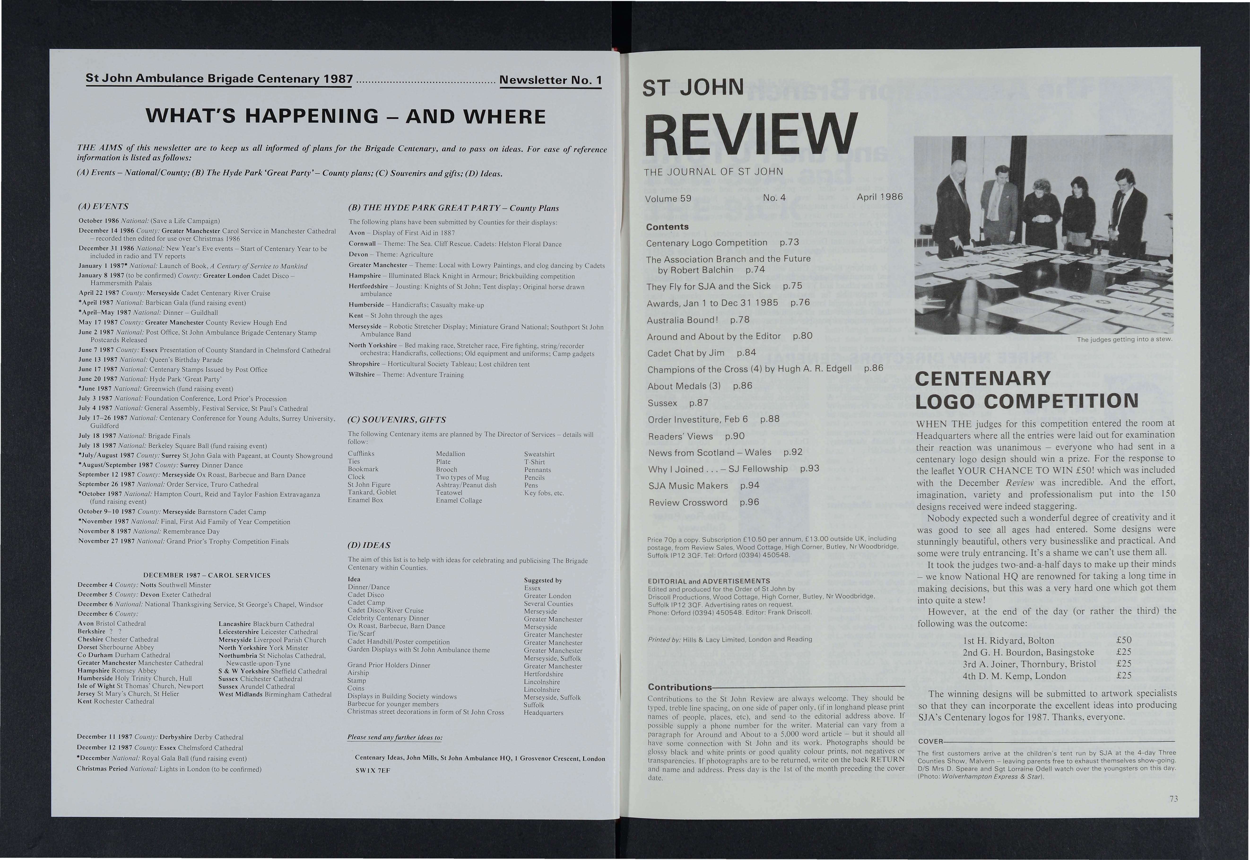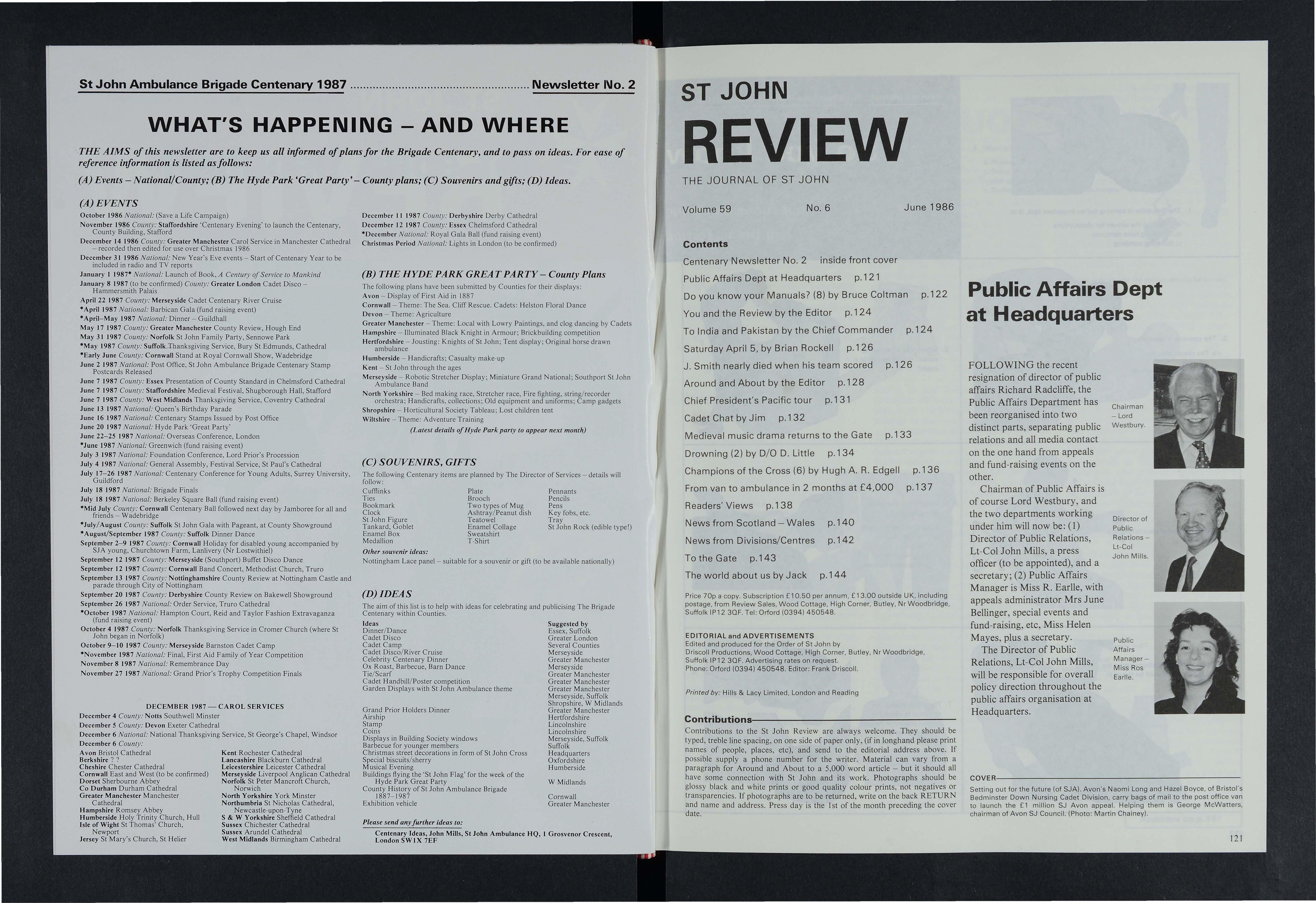 Publications: There will be a special Cente n ary History of St John Ambulance published, and a book of reproduct ions of hi sto ric photog r aphs from our collection at St John' s Gate, among other anticipated publications.