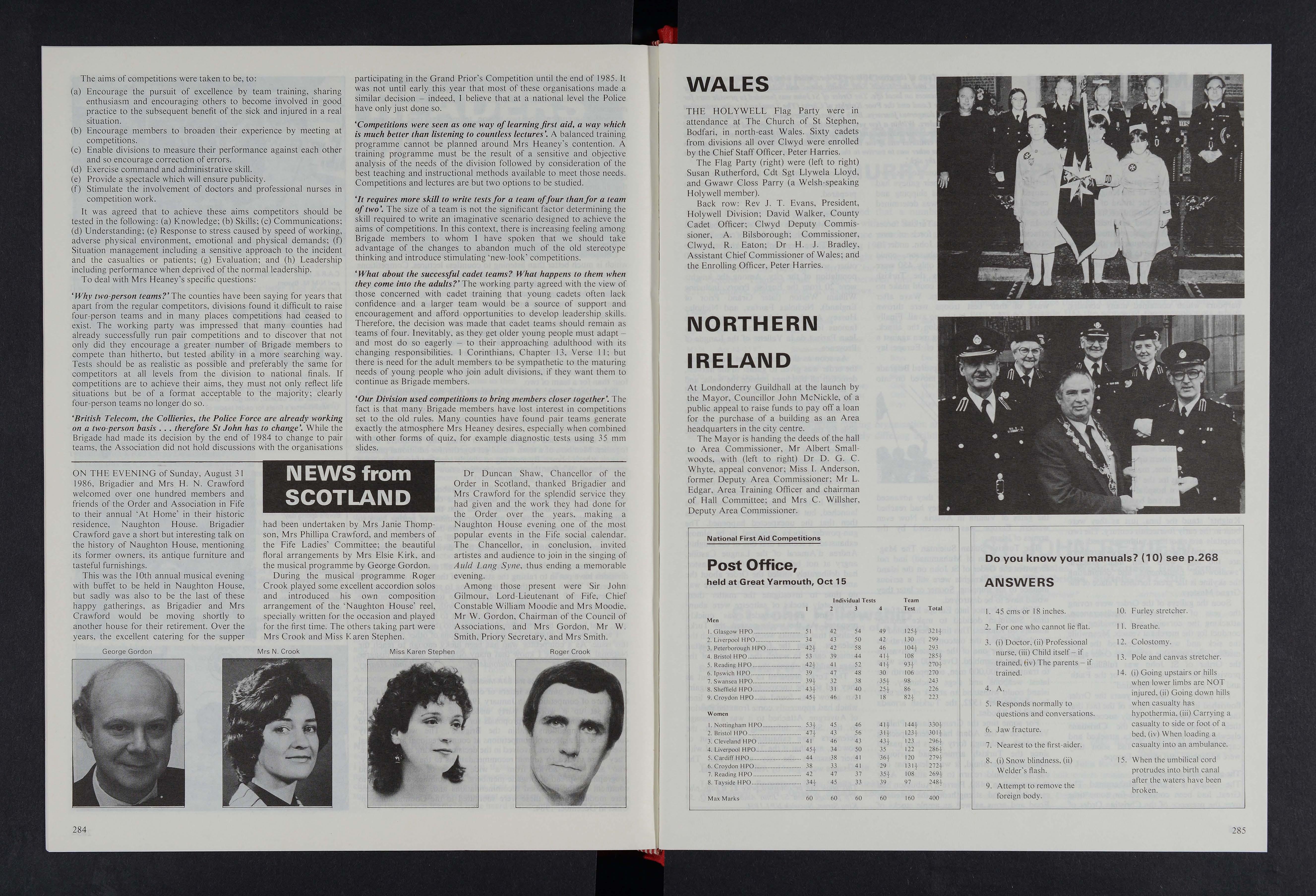 And the next day they were in the Rnals of the county quiz, when the junior section was won by their Paul Davi es and Andrew Green, the se nior section by Rachel Keech, Ruth McLaren, Anna Kiddie and Annette J efferson, and the Division's ambulance cadets were runners - up.