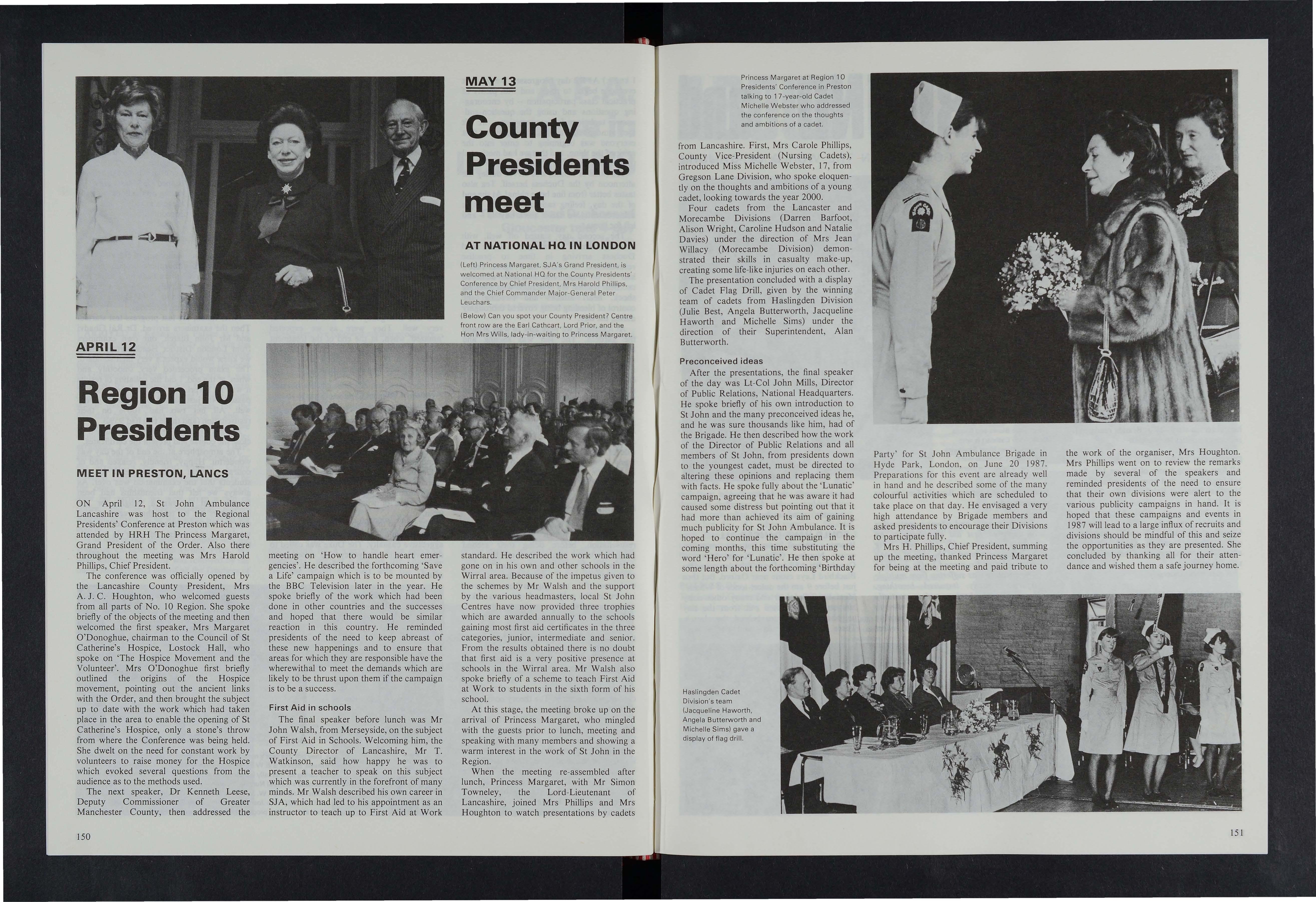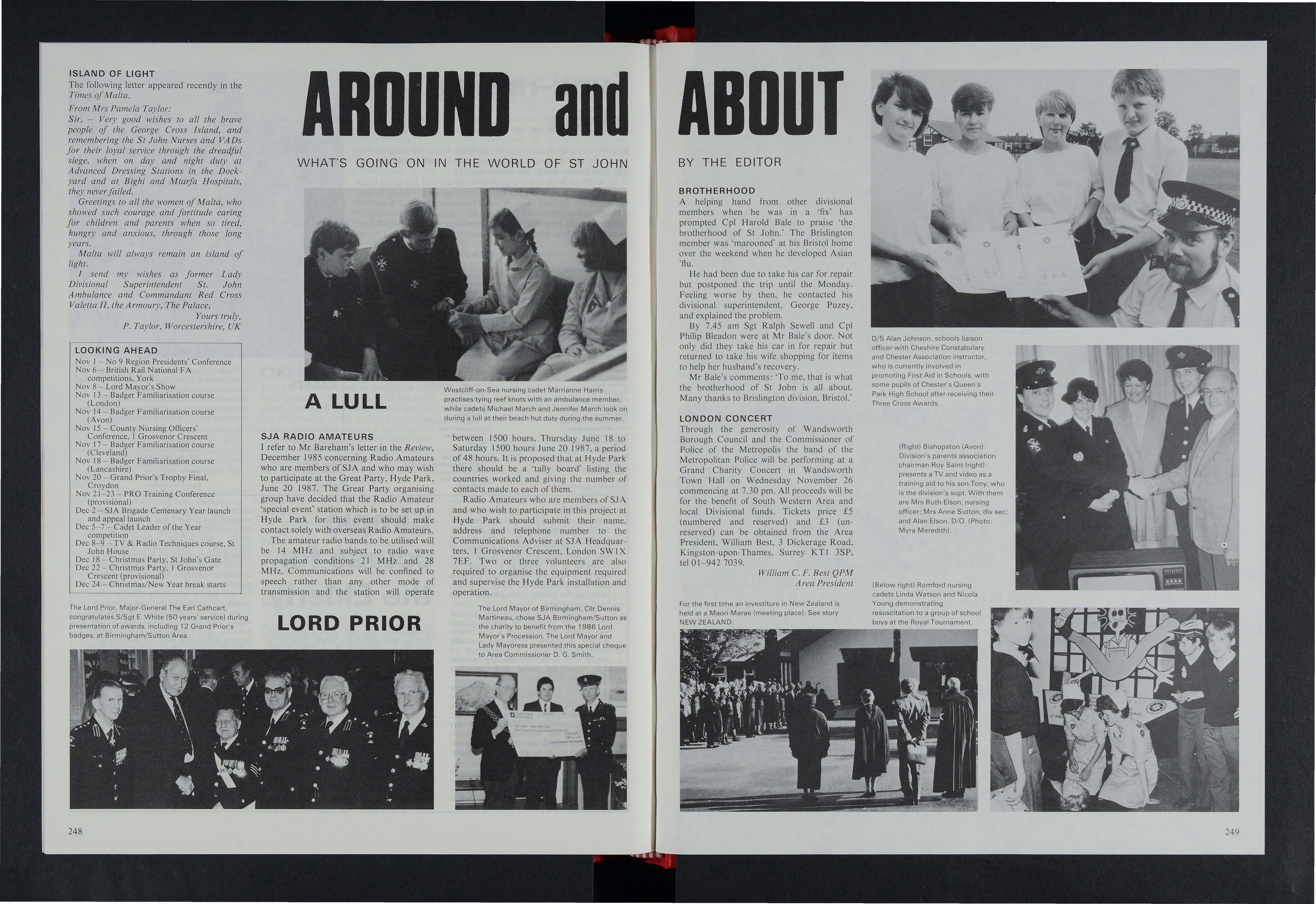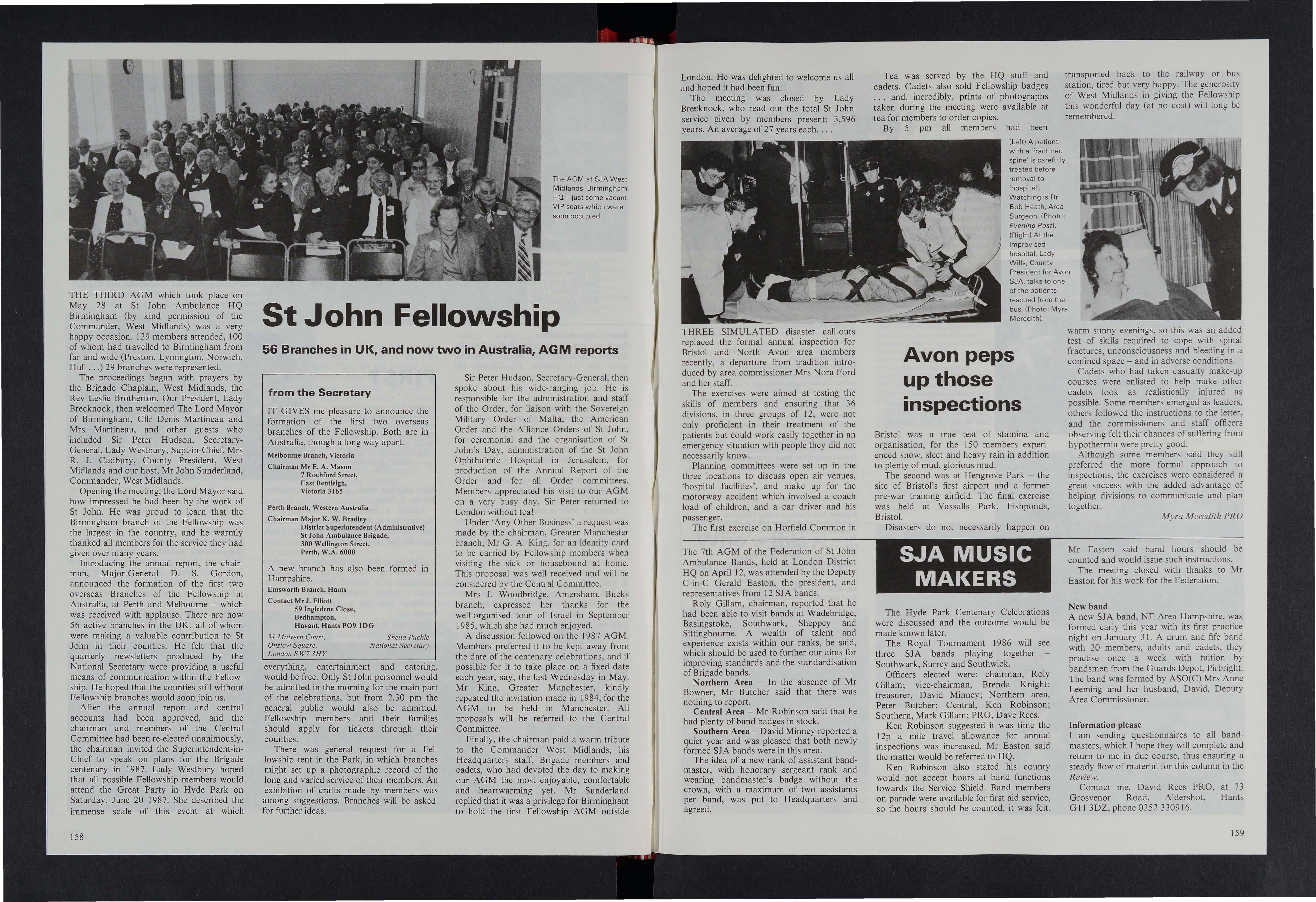 DURING 1987 - centenary year of t h e St John Amb ul ance Brigade , man y division s and counties wi ll be planning their own celebrations in the form of displays, exhib itions, etc. Do not forget the Muse um & Libra r y of the Order at St John 's Gate: it owns a vast collection of material relating to the history of the Order of St John an d St John Ambu a n ce. Next yea r we wi ll be celebrating 100 years of service to mank nd in the Brigade , stress ing the histo r y of th e organisation as well as the way forward for the next century. The history of St John Ambu lance and the Order is one of the greatest selling points of our organisatio n as the he ritage' and tourism in gene r a l bec ome the more popular. The Library & Museum wa nt s to help yo u plan and present the history of the Brigade and s u ggests the following services: