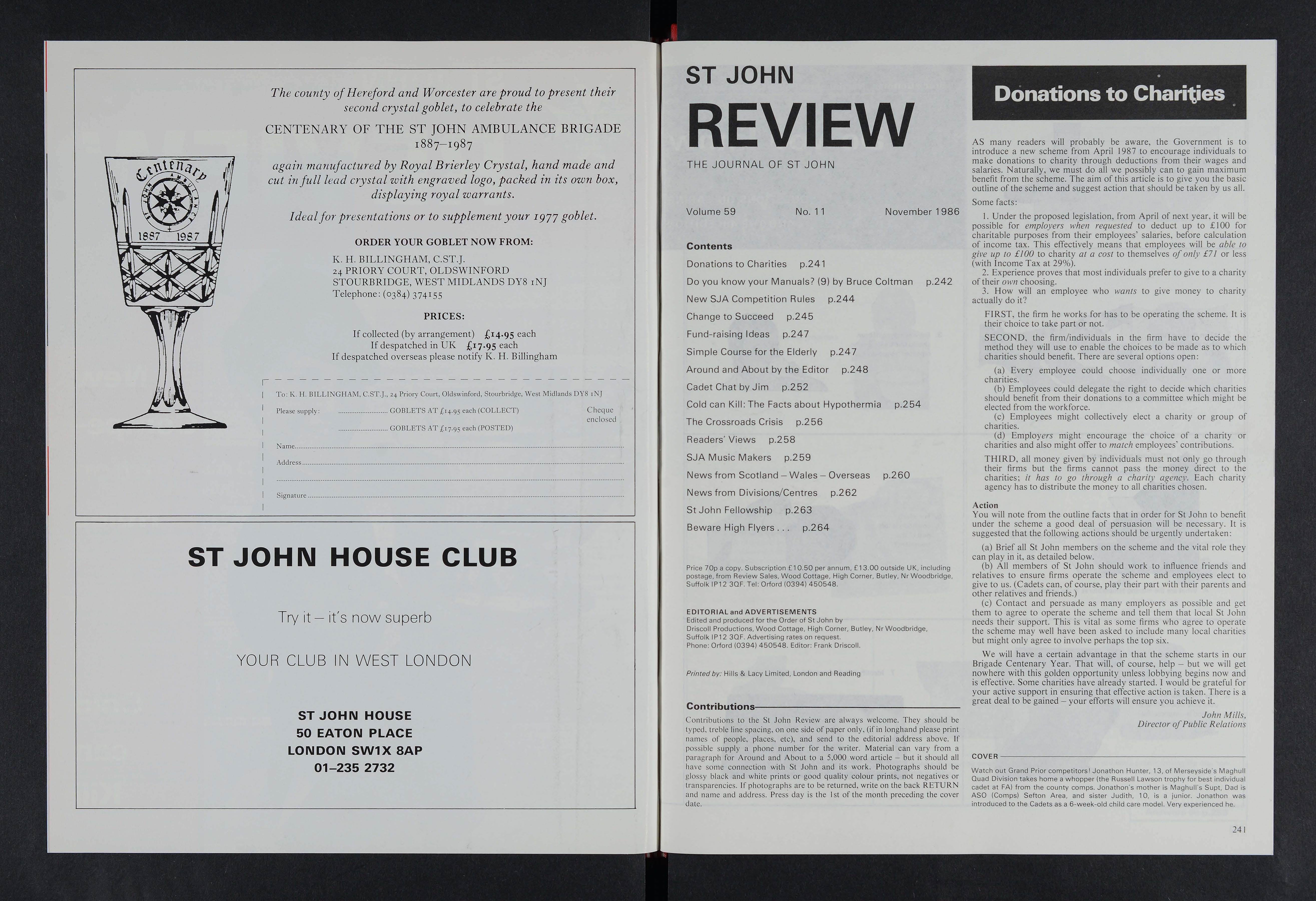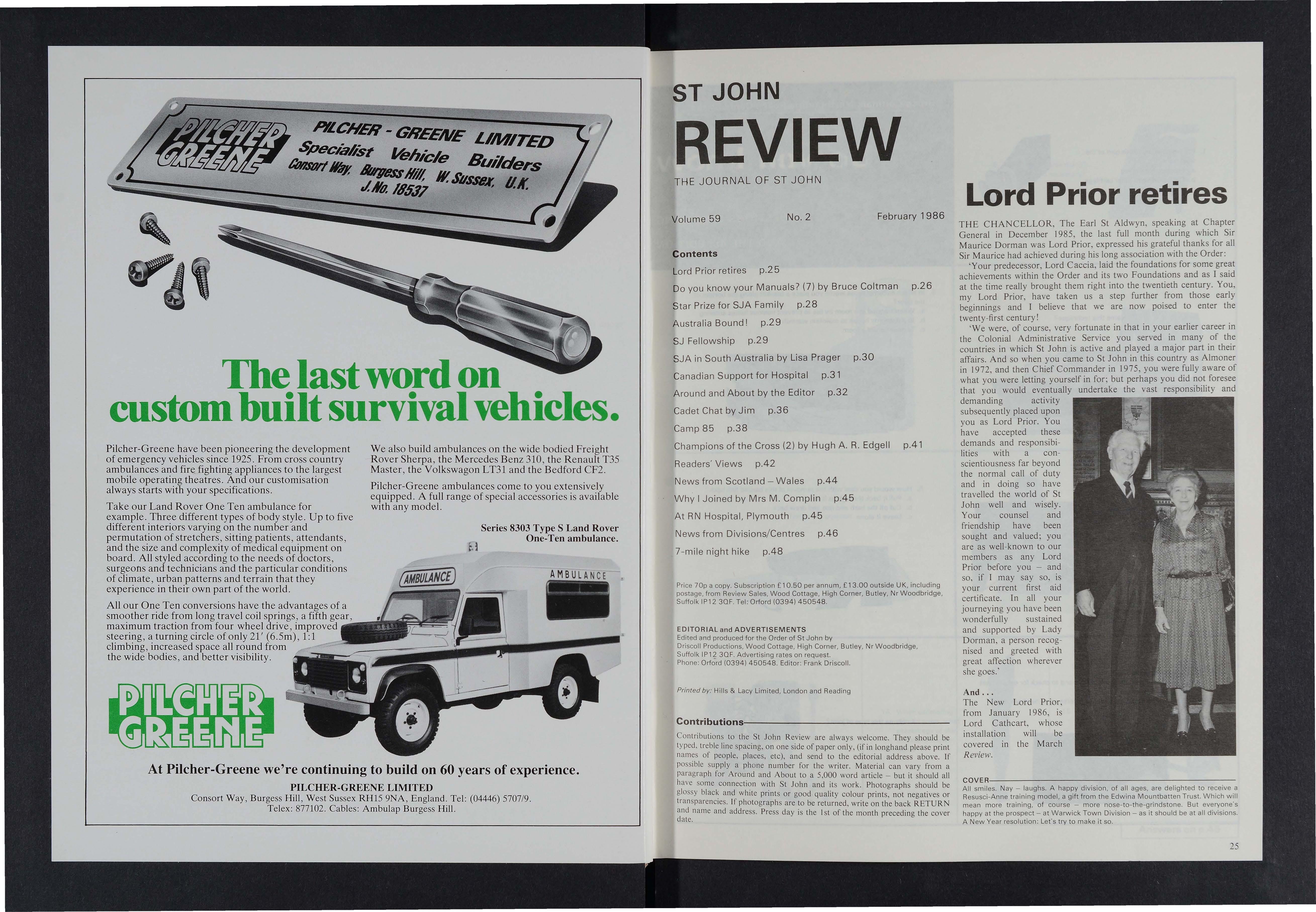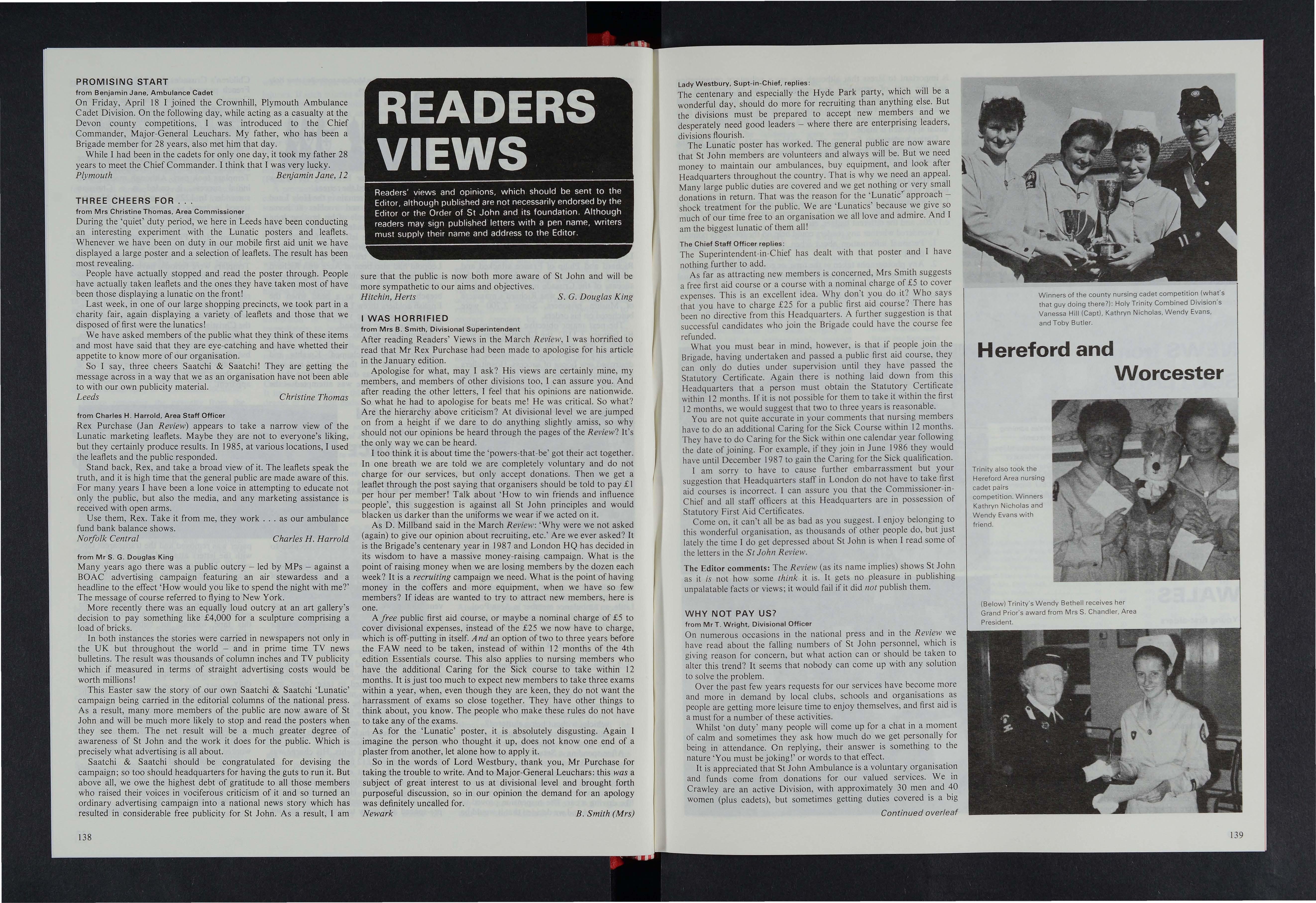DURING 1987 - centenary year of t h e St John Amb ul ance Brigade , man y division s and counties wi ll be planning their own celebrations in the form of displays, exhib itions, etc. Do not forget the Muse um & Libra r y of the Order at St John 's Gate: it owns a vast collection of material relating to the history of the Order of St John an d St John Ambu a n ce. Next yea r we wi ll be celebrating 100 years of service to mank nd in the Brigade , stress ing the histo r y of th e organisation as well as the way forward for the next century. The history of St John Ambu lance and the Order is one of the greatest selling points of our organisatio n as the he ritage' and tourism in gene r a l bec ome the more popular. The Library & Museum wa nt s to help yo u plan and present the history of the Brigade and s u ggests the following services: