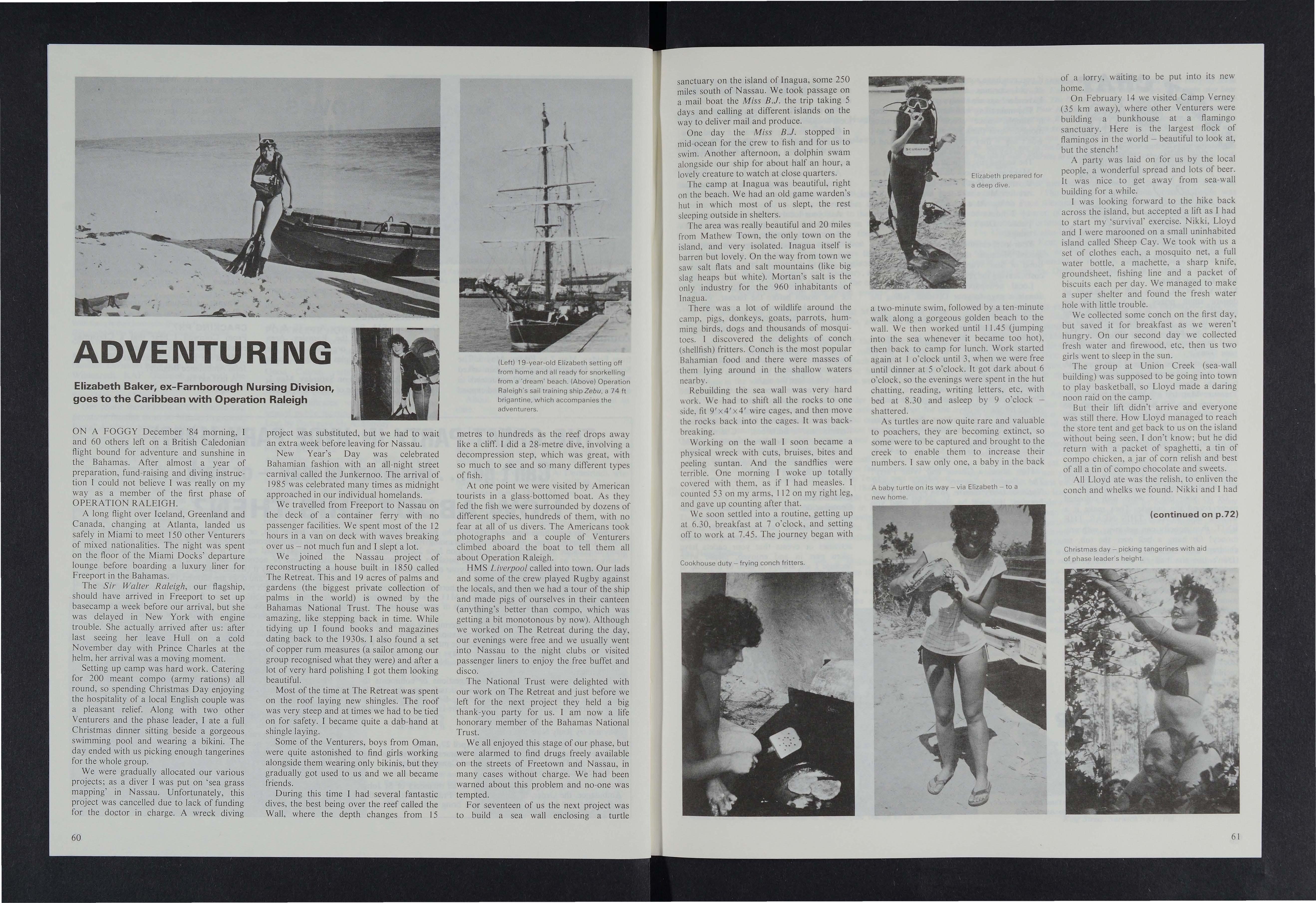 The Ro ya l Navy recently ran a pilot course for SJ A members (over 18 years old) at the Royal Naval Hospital, Stonehouse , Pl ymo uth. T wo of our Mark Selleck and El iz abet h Mann, both from Devon, spent a fortnight li vi ng in the hospital and gai ned experience in all departments from casualty to operating theatre. We hope to publish a report of their experiences in the February R ev ew.