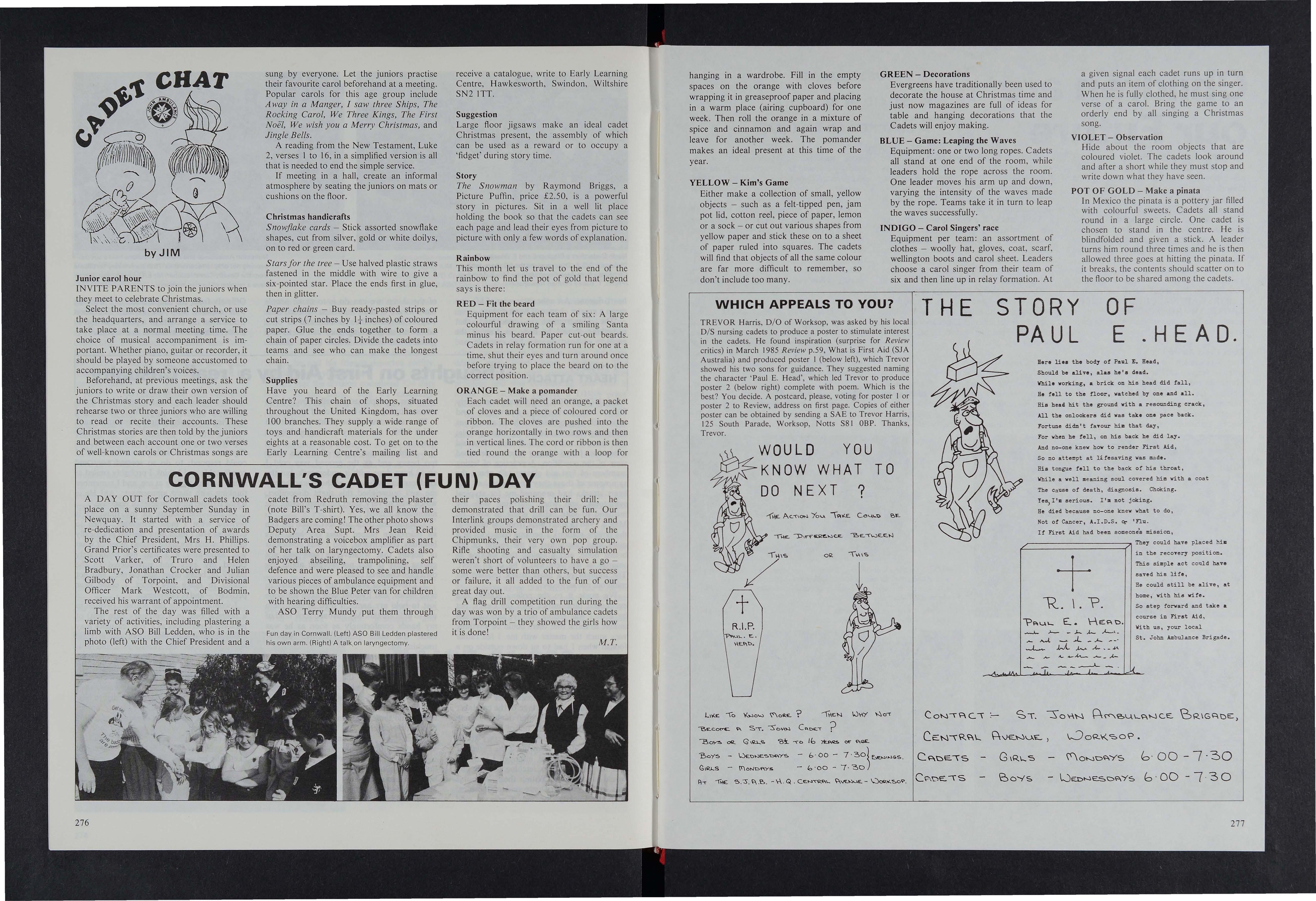Perhaps you may be having a fancy dress or a tramps party. Take a photo of cadets as they arrive and send someone with the film to the nearest shop that does one hour developing. Thus each cadet will be able to take their own special souvenir home with them. Invite parents to come and take part in all party activities and you may also like to invite some chi dren from a nearby residential home They will appreciate getting out of their normal surroundings and you may also be able to invite them to join the Division when meetings resume in the new year.