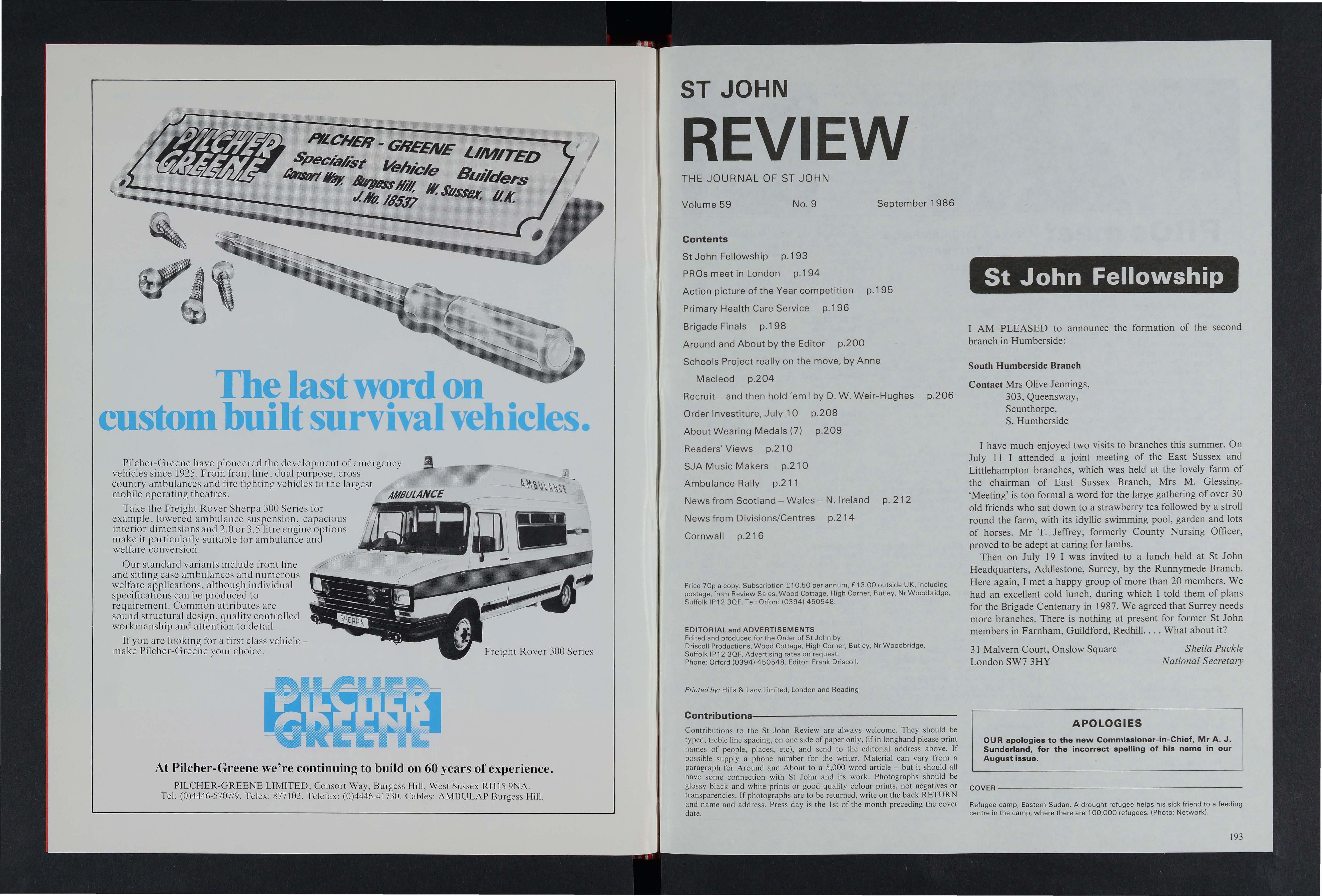 23p a word (mill. £4.60); semi display £23 s ingle column inch (min. £1 J .50) inc/. VAT Send to Sf John Review, Wood Cottage, Hig h Corner,