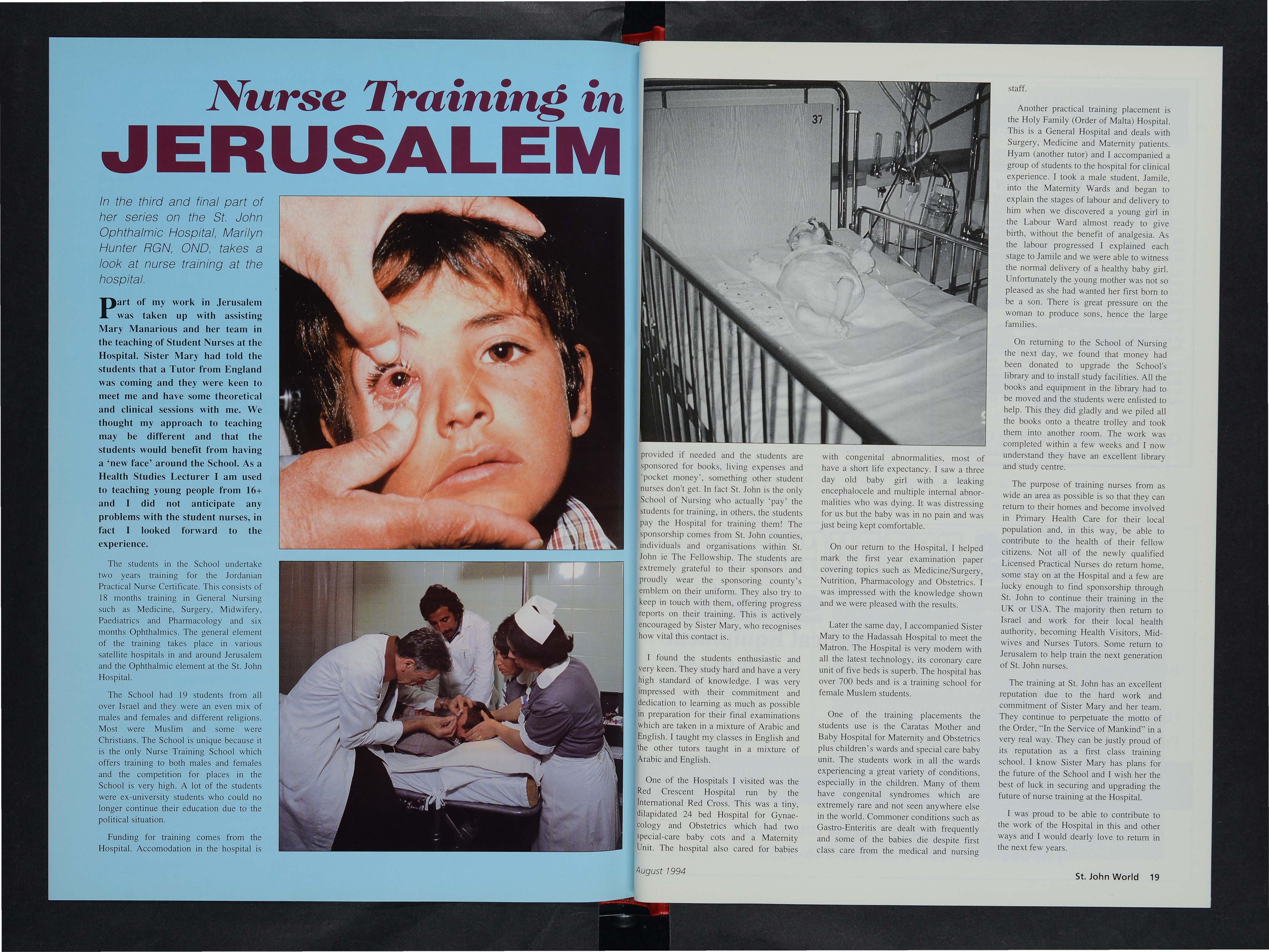 In the third and final part of her series on the St. John Ophthalmic Hospital, Marilyn Hunter RGN, OND , takes a look at nurse training at the hospital.