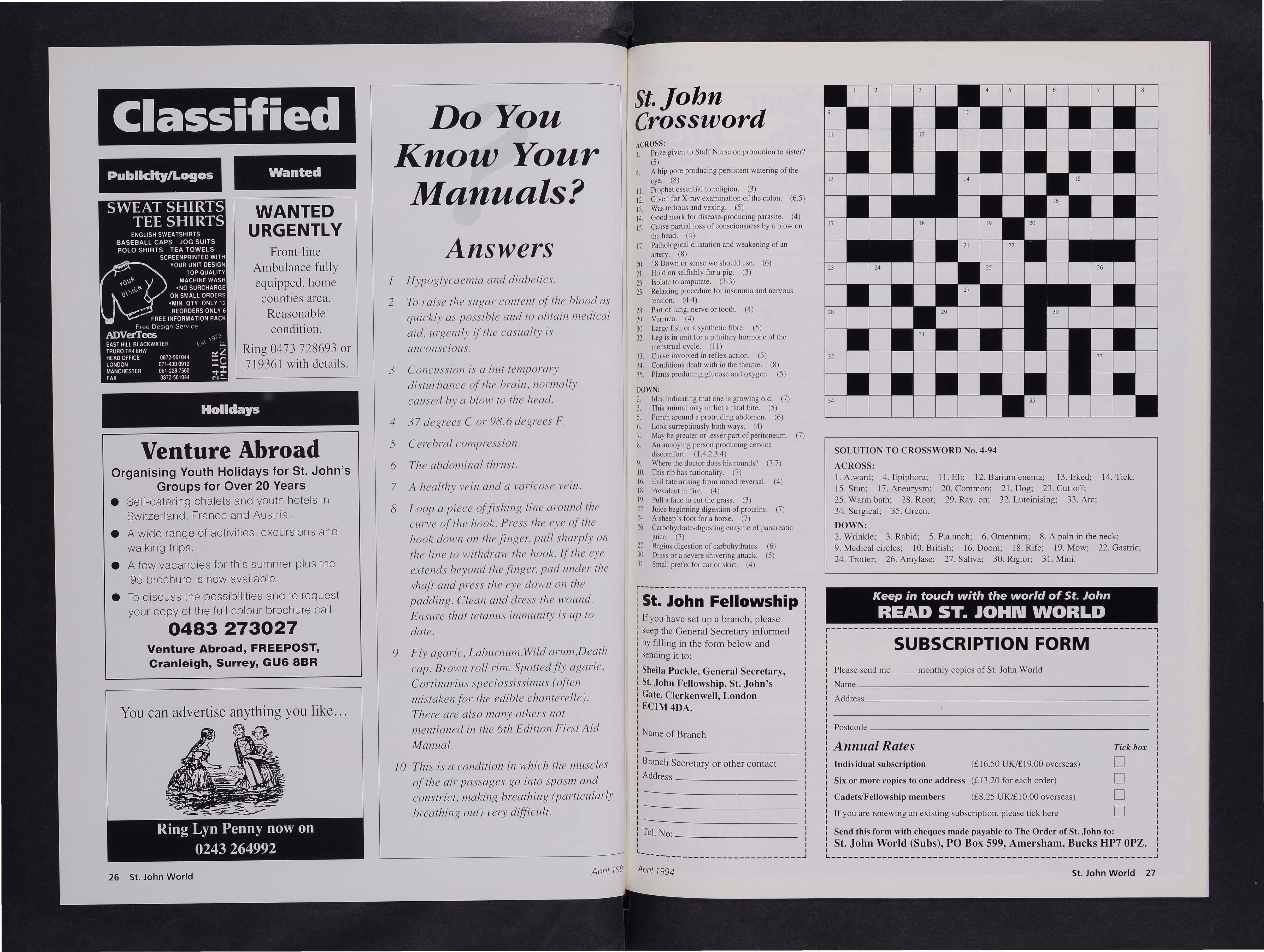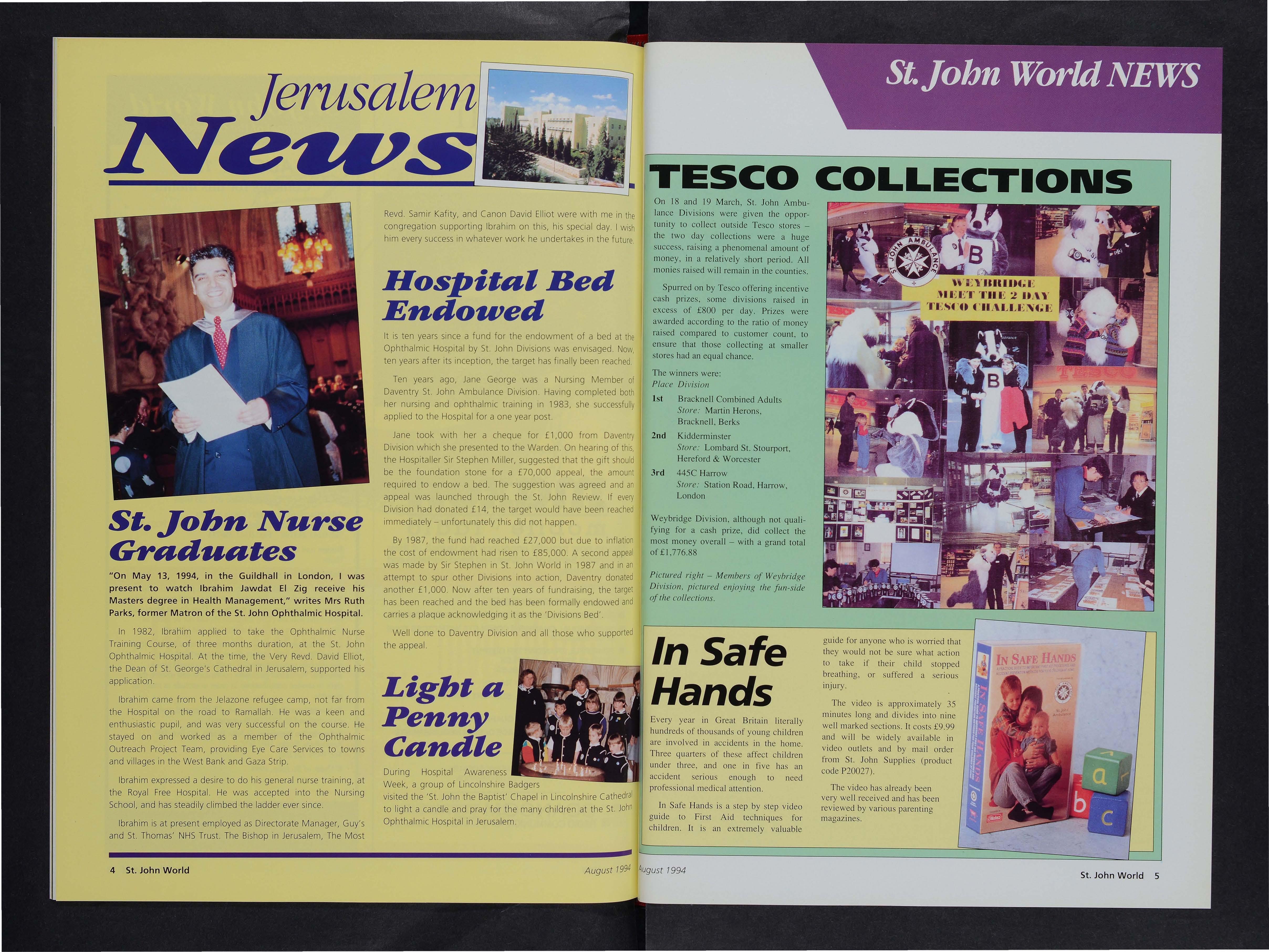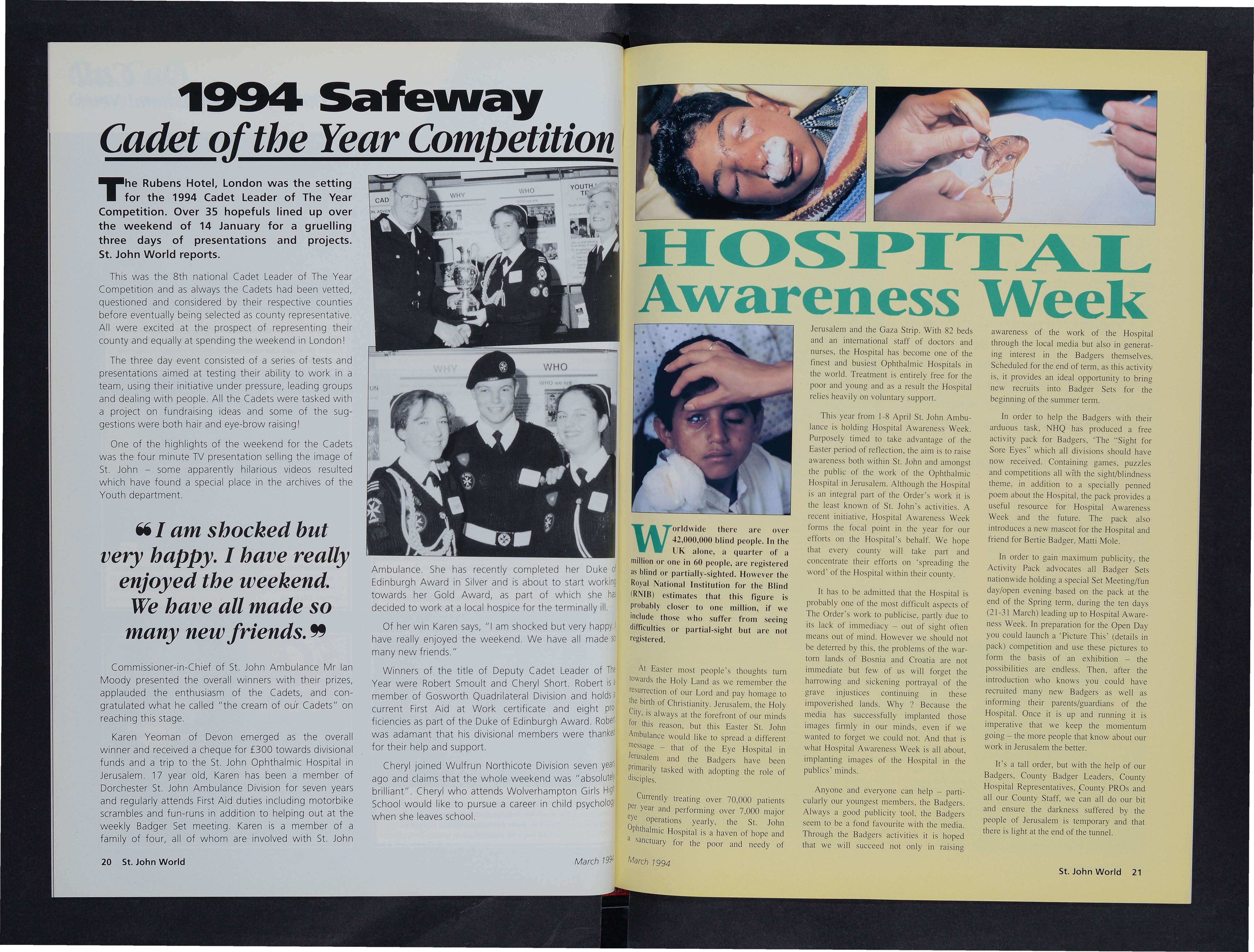 There will be another organised tour of the Holy La n d, Jon an d the Opht h a l mic Hospi t a in 1994, which wi l fo ll ow usual lines from Apr l 29 to May 9. T h e Lord Prior wi l holo .Invest ture in the Hospital on Sunday May 8. Brochure s