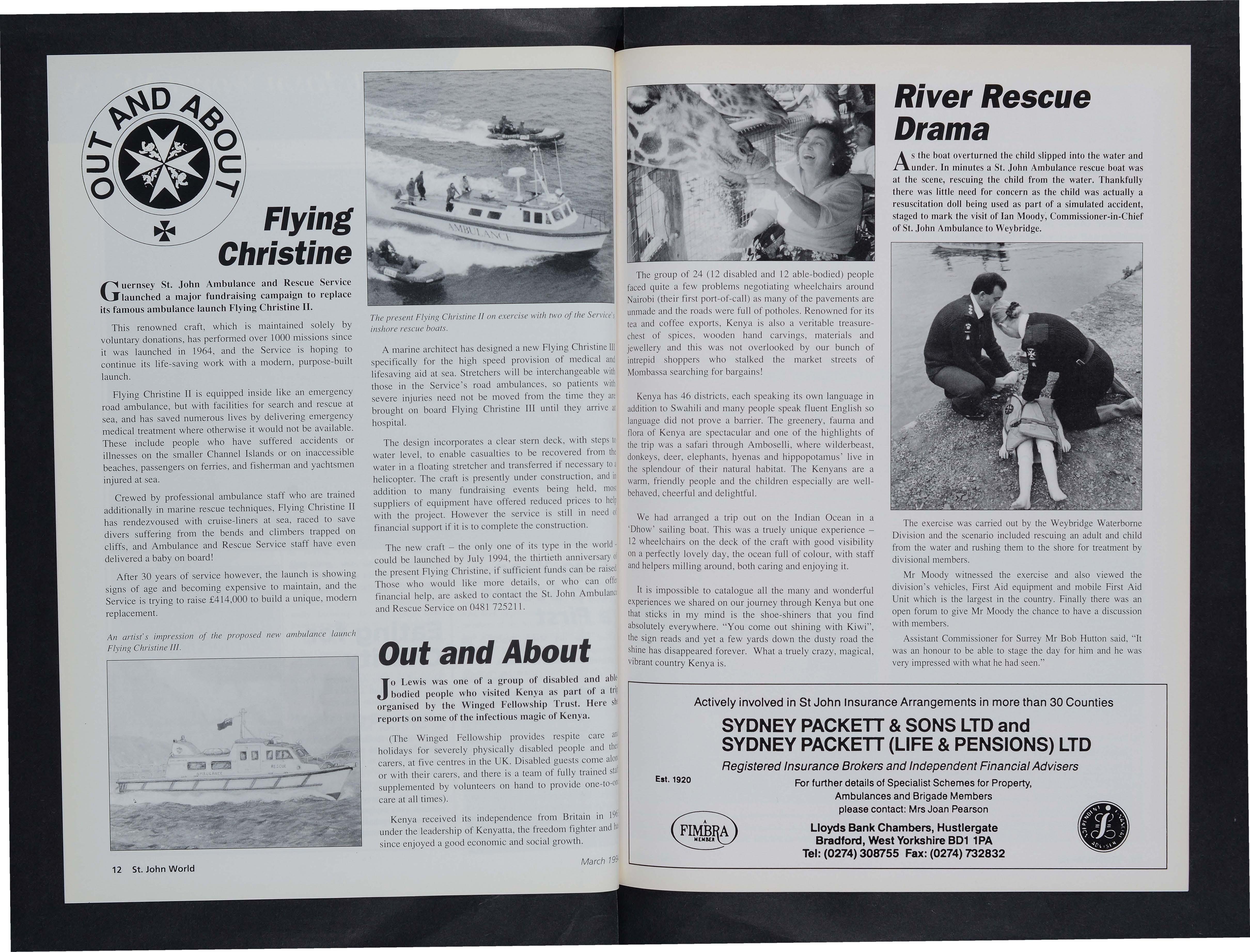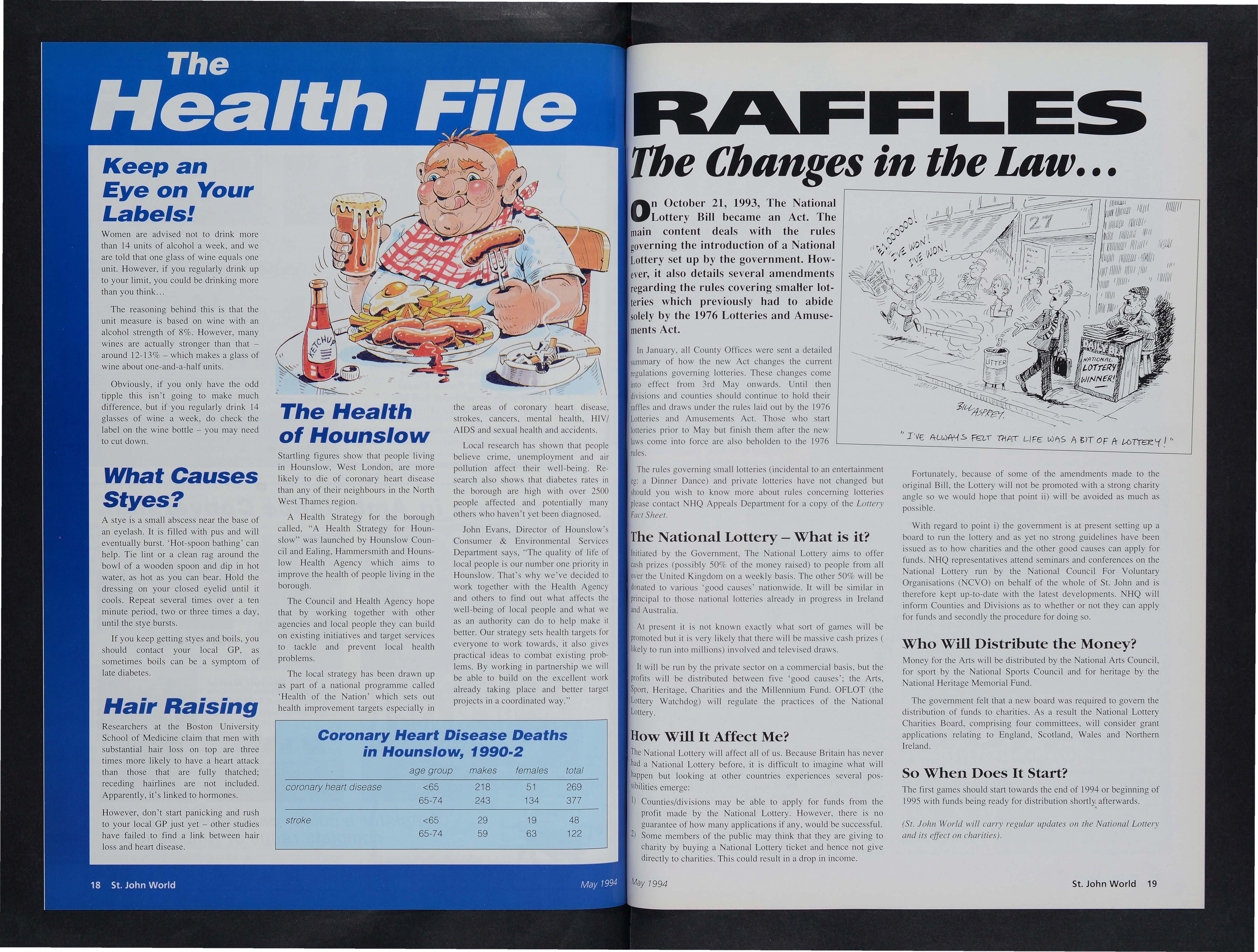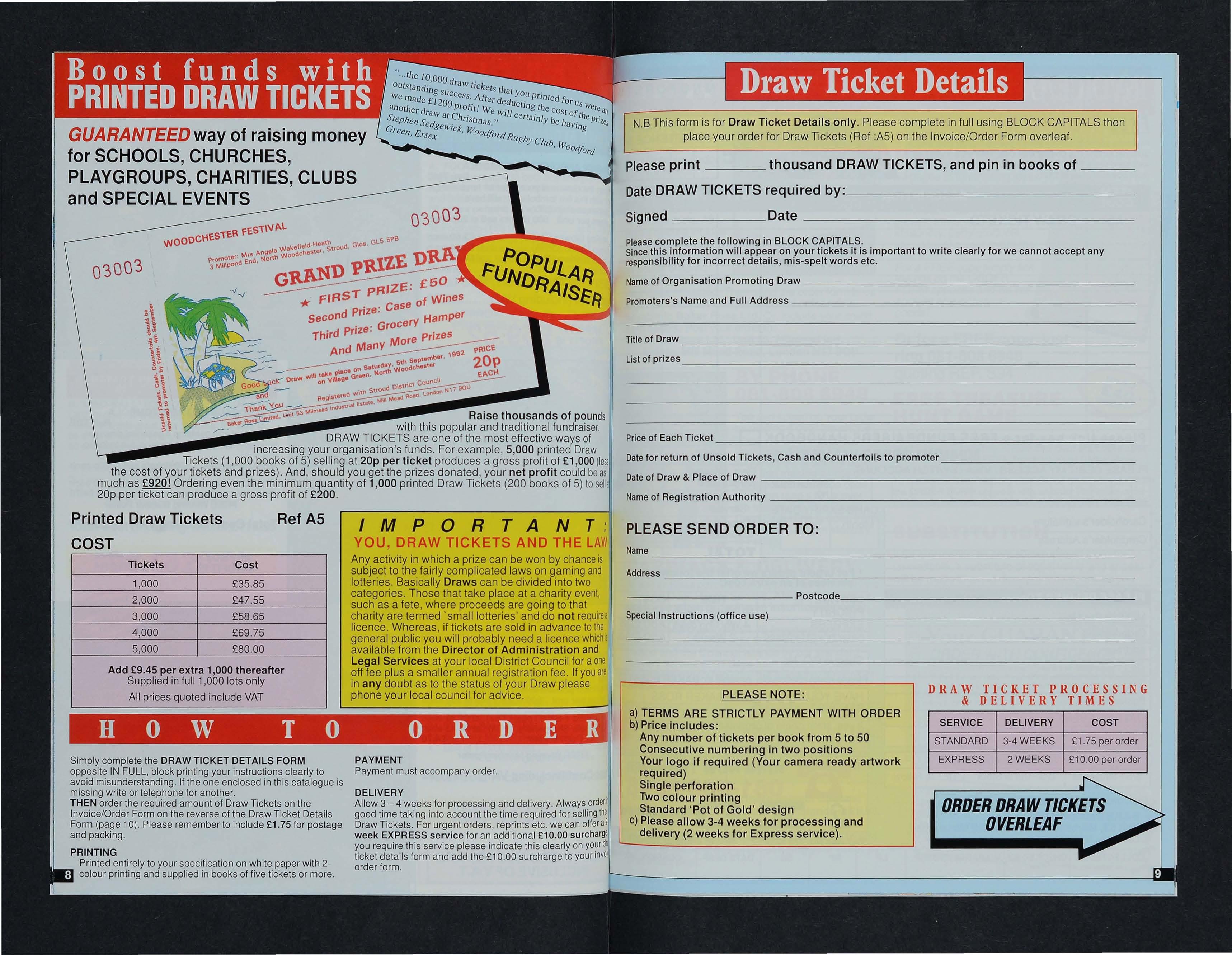 On 28 October, 30 peopl e from all ove r th e co untry gat hered at NHQ to w itn e s th e yea rl y Grand Raffle dr aw. Th e eve nt coi nc id ed wi th th e 1993 PR Conference and hence variou s PRO s were ab le to participate by drawin g o ut win nin g tickets The lu cky winners of the top three pri zes were: Mr Jim Tyler of Stoke, Plymouth who won th e P&O Cruise Ct cket no. 209667), Mrs M Jordan of London w ho won the Fiat Uno Sian and Mr N Morga n of Gwynedd who won three l arge De sey Pilot case. Congratul at i ons to them all and to tho se Divi s o ns and Co un ties w hi ch so ld ti c kets.. th e Raffle raised a g rand tot al of £ 166,263! Pi c/urecl Ri g hi - Li : Poris CO lln/, AdminislwlOr./or Warwickshire pulls 0/ ;/ /he 5 1h pri:e winner's lick e/, (fhl\' assisled hy Bertie Budger.