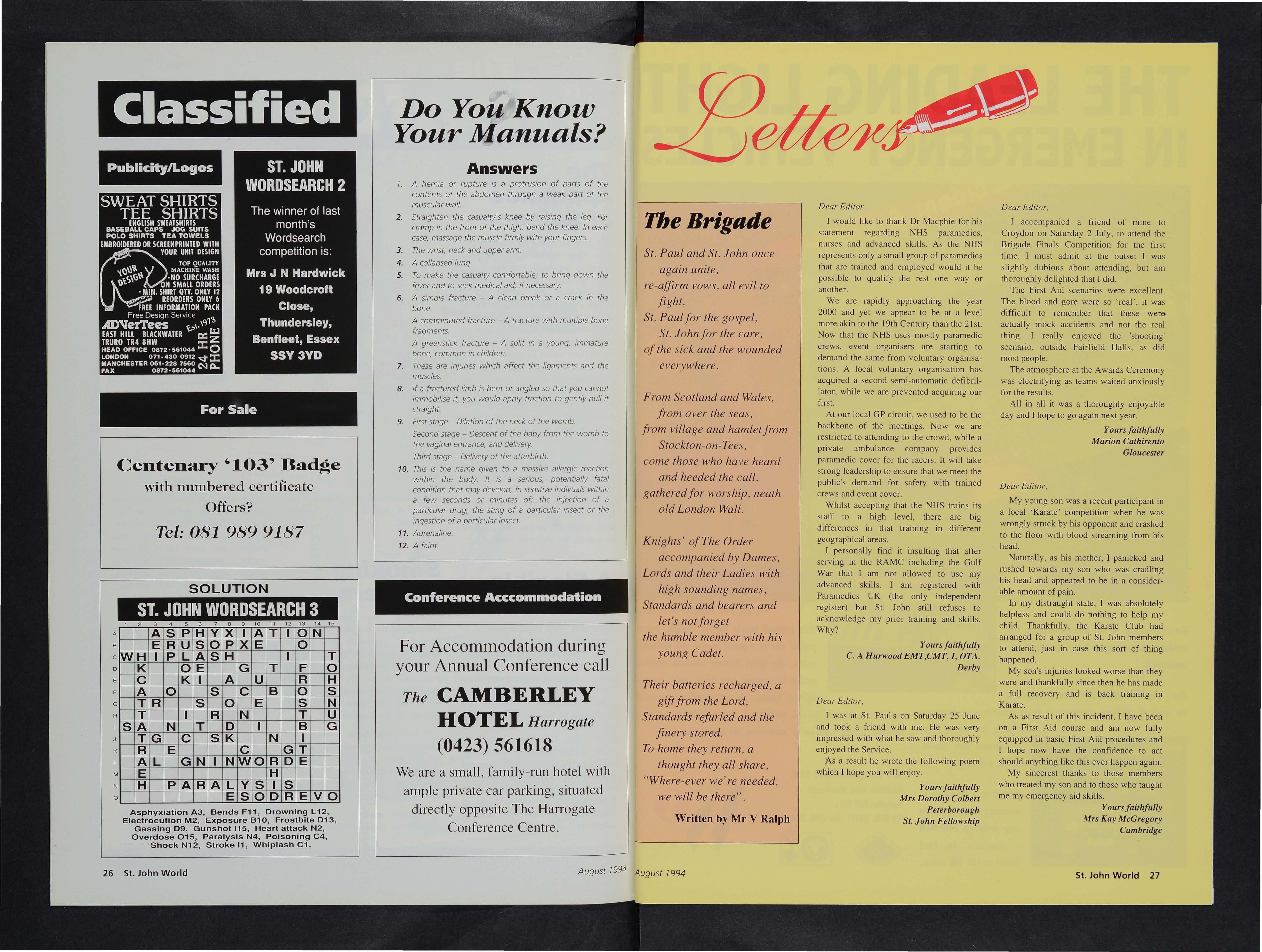 We are rapidly approachi ng the year 2000 and yet we appear to be at a level more akin to the 19th Century than the 21 st. Now hat the NHS use s mo s tly paramedic crew s, event organi sers are starting to demand the same from vo luntary organi sation s. A local voluntary organi sation has acquired a second semi-automatic defibrillator while we are prevented acquiring our fir s t.