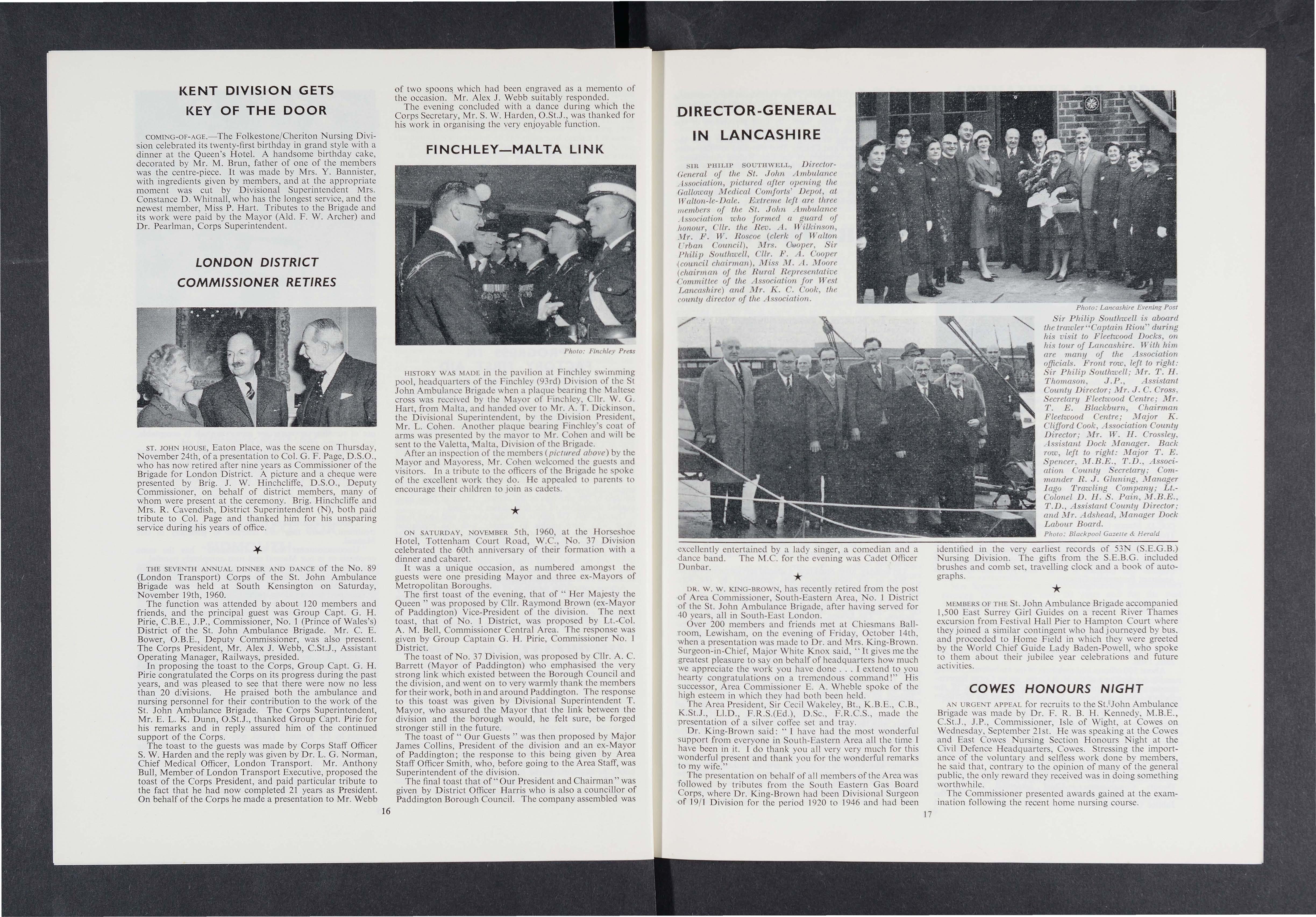 Dr. E. M. D ea rn , a Kni g ht o f t he Ord er, mor e lh a n 25 year s se rvice wit h th e B r ig a d e, ornm i s on er of the Brig a d e and Vice-Ch a irman of St. John ouncil fo r the E a t Riding. Mr. Sidney Ballance, Chief Con stabl e of Barrow , assoca ted with the Br igad e more th a n 30 yea rs. Has h elp ed to
