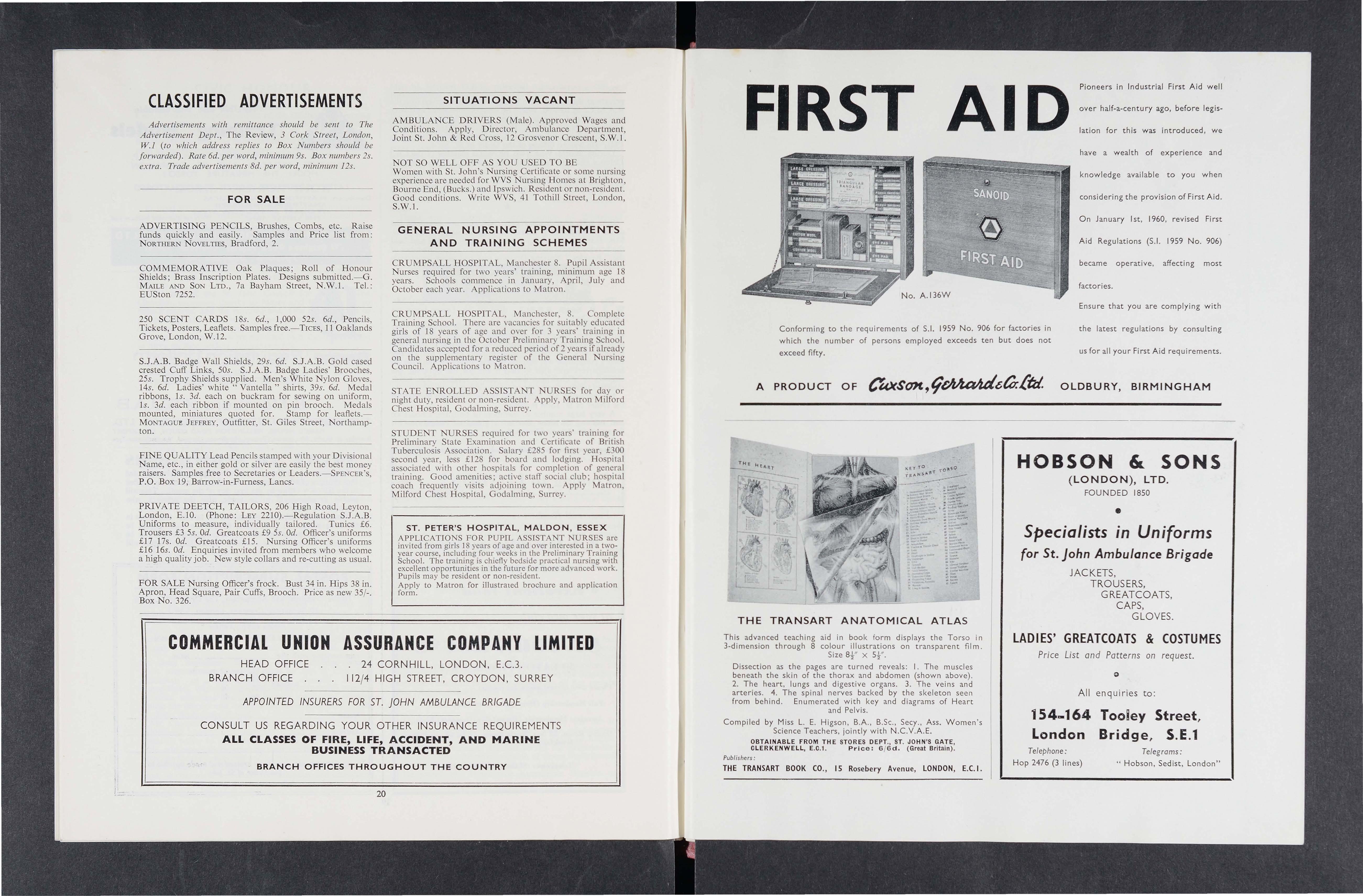 P RIV ATE D EETCR, TAILORS, 206 High Ro a d, L eyton, London, E.1O. (phone : LEY 2210). - Regulation S J .A. B Uniforms to measure, individually tailored. Tunies £6. Trousers £3 5s. Od. Greatcoats £9 5s Od. Officer's uniforms £17 17s. Od. Greatcoats £15 Nursing Officer's uniforms £16 16s. Od. Enquiries inv ited from members who welcome a high quality job. New style collars and re-cutting as usual.