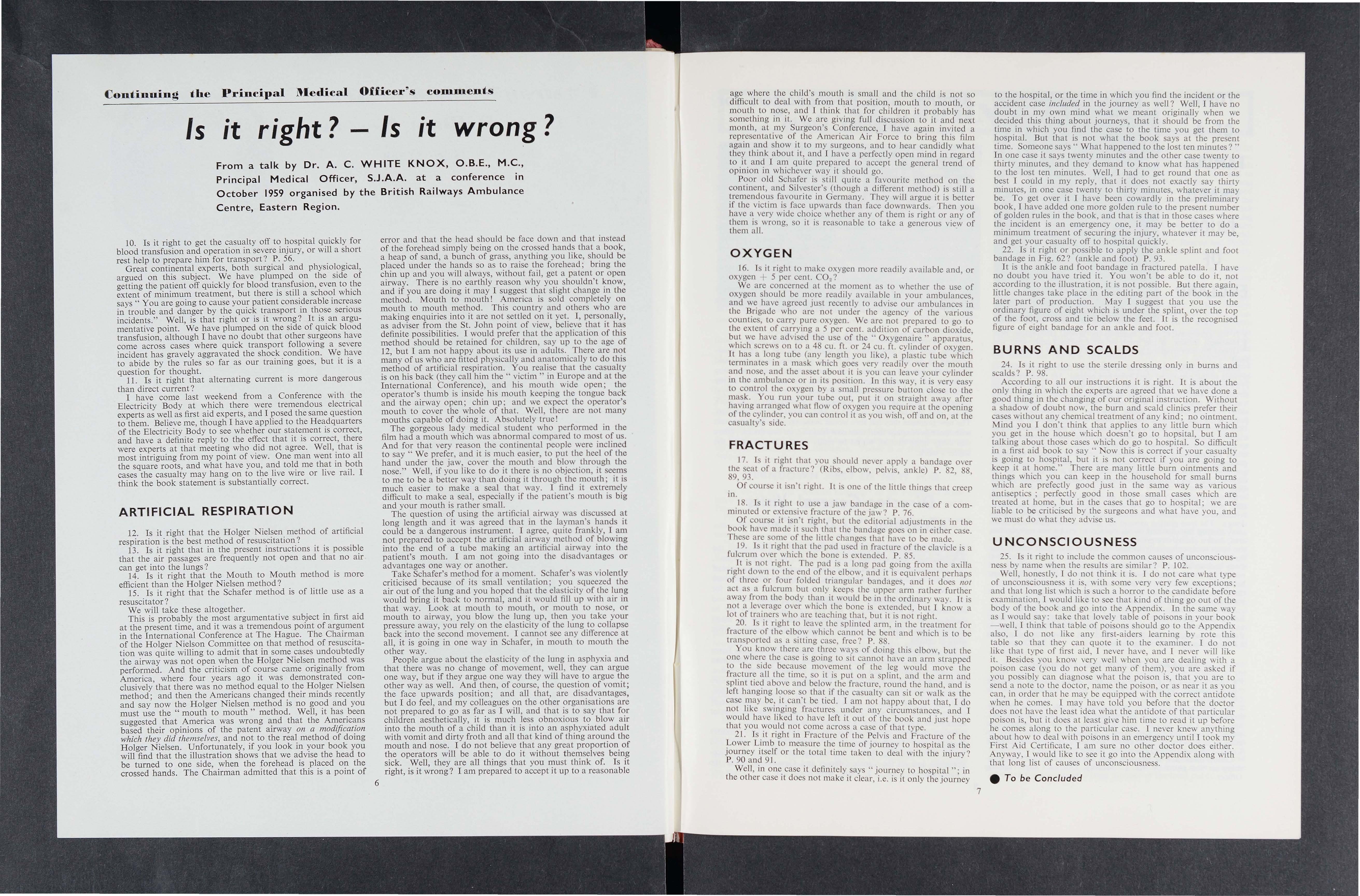 The Principal Medical Officer , Major A . C . WHITE KNOX appraises the various methods of artificial resp i ration