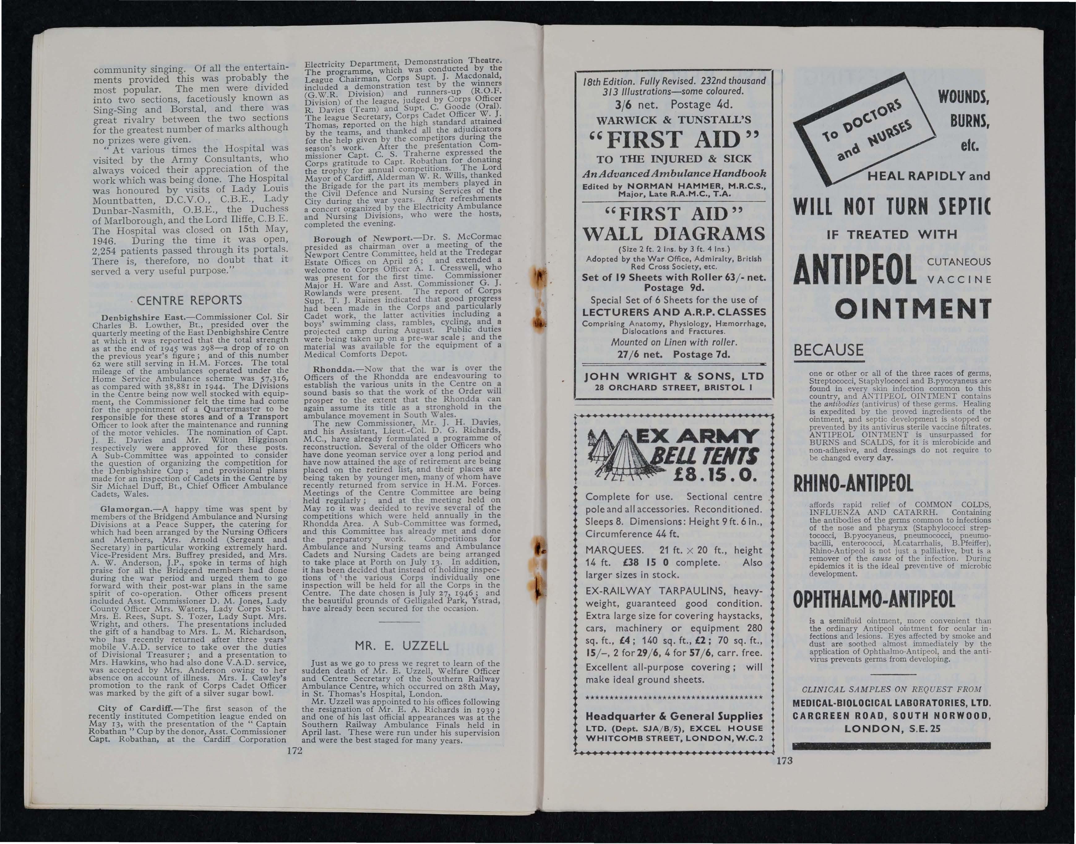 Advertisements with remittan ce should be sent to the St. John Gazette, 46-47 Chancery Lane, London, W.C. 2 (to which address replies to Box N1:J»)bers should be forwarded) Rate 3d per word, mlmmum 4s. 6d. Box numbers IS. extra. Trade advertisements 4d. per word, minimum 6s.