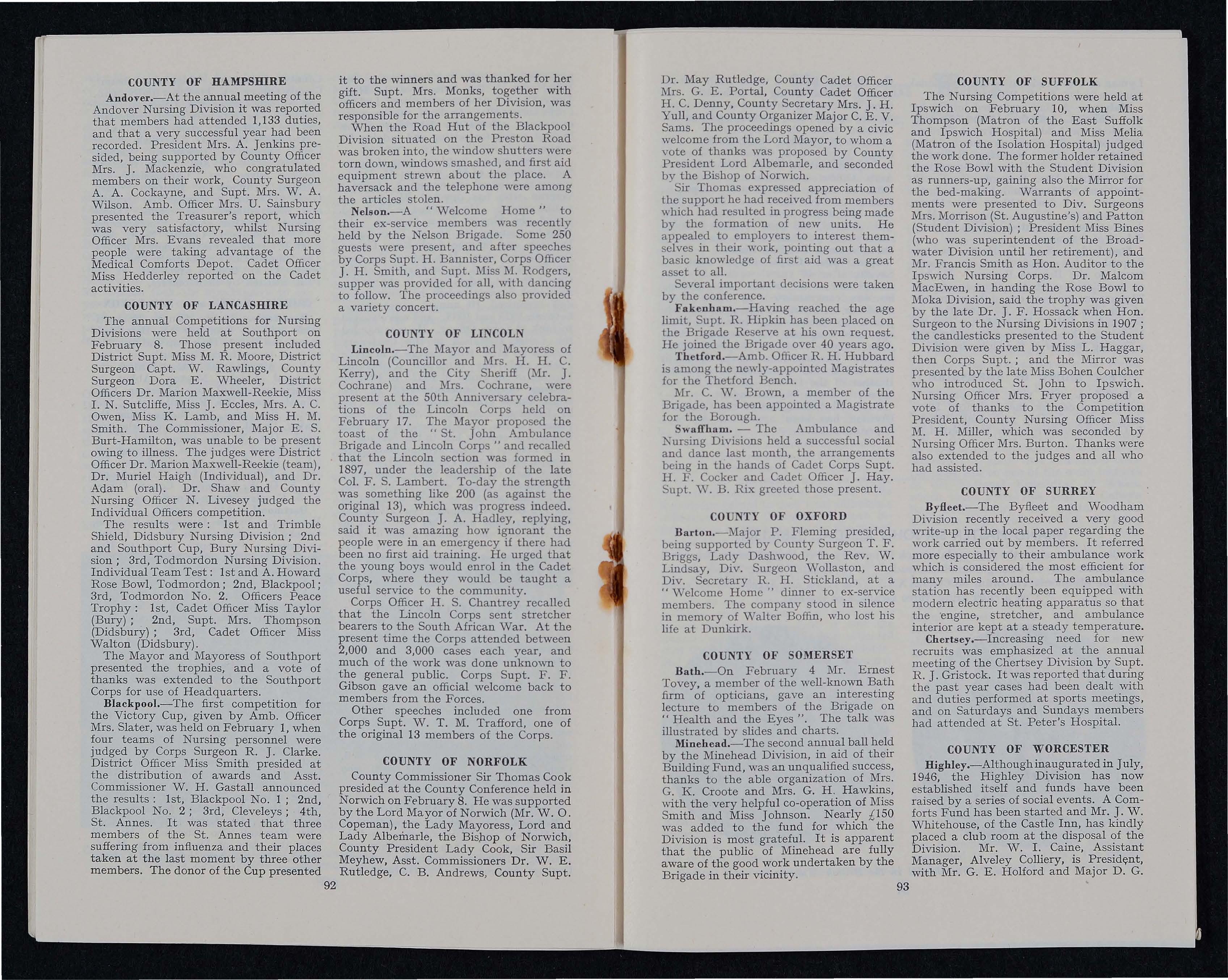M r. P erriam, Hon Secretary, t hanked m e mb er s of th e A mbula n ce a n d N u rsing Di v is i on s f or th eir assist a n ce in stafiing t he ambulanc es , w hich durin g t h e p as t y ear had ca rri e d 733 pati ents , atten de d 119 a ccid ents, a nd a n swe r e d 16 fire call s. T hi s work ent a il ed t ravellin g 14 , 409 mil es. Since t h e ab ove meeting , we r egr et to a nn o unc e t h e d eath of Mr . Law , which t ook p l ace th ree days later.