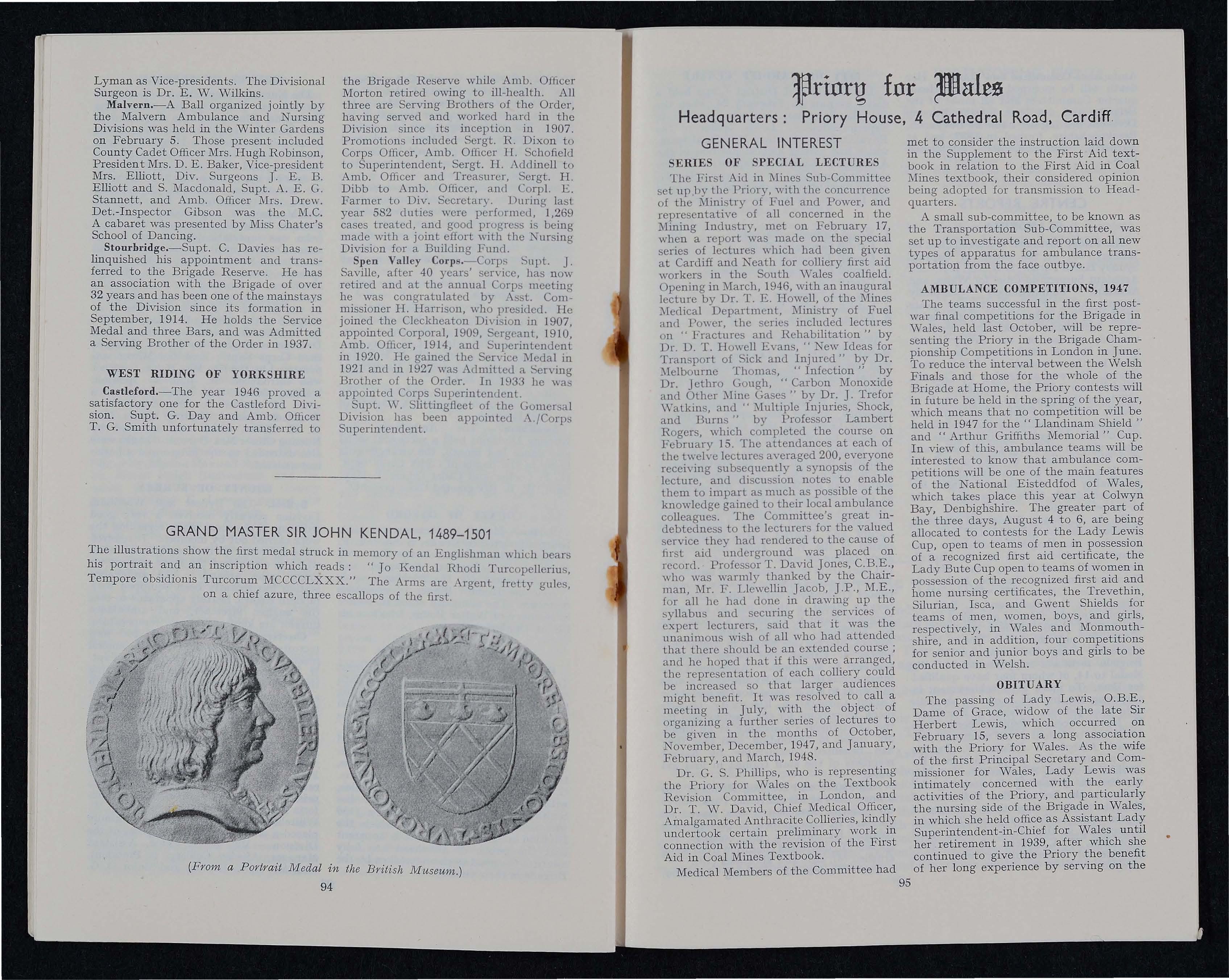 Order of St. John.-During the year seven Medical Lecturers received honours from the Order of St. John, and twentyone members of the staff were likewise honoured One member received the Vellum Vote of Thanks, and one the Welsh Priory Vote of Thanks.
