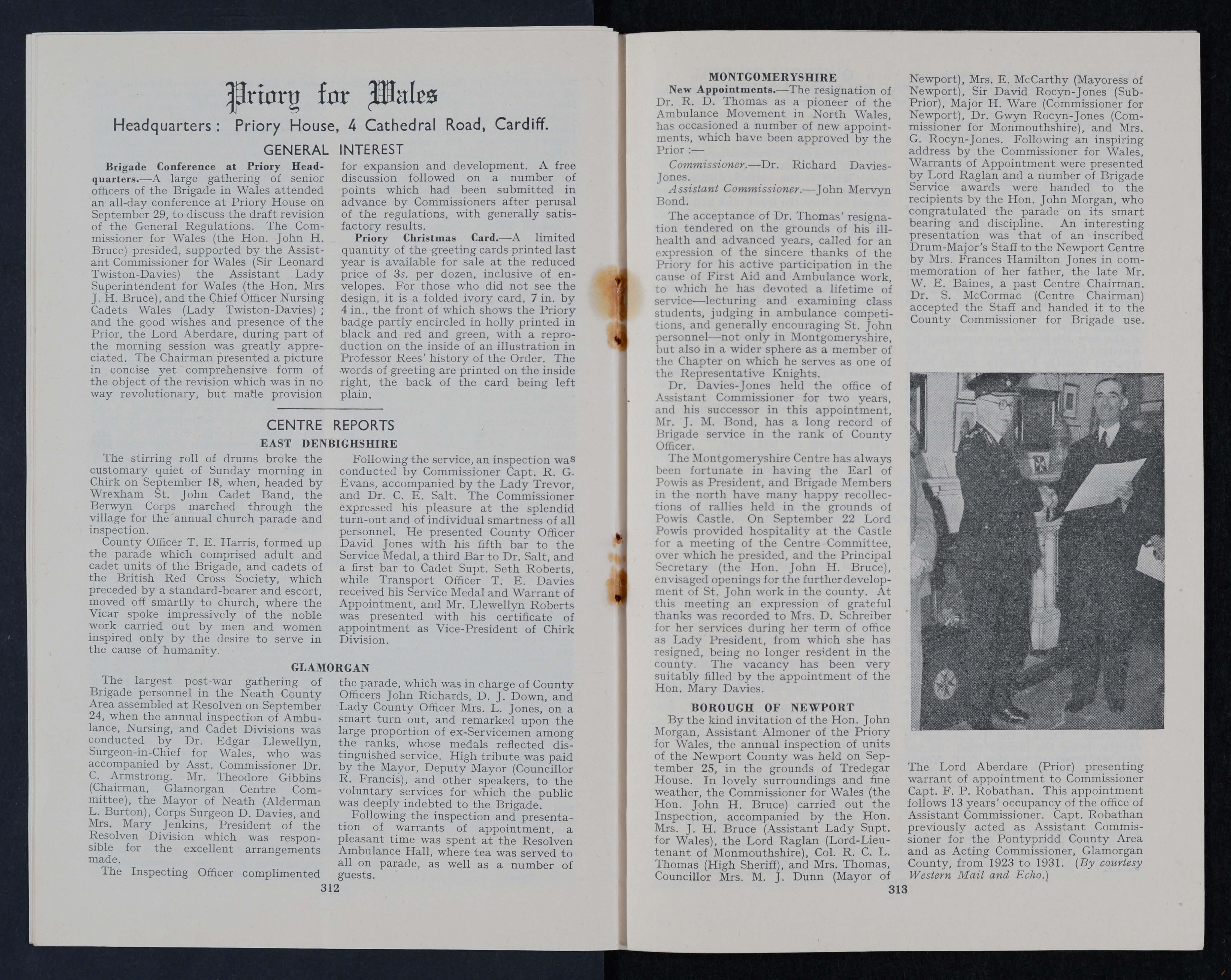 The County Commissioner welcomed the new units into the Brigade, wishing them good luck and many years of cooperation. Corps Supt. A. 1. Cresswell in adding his welcome, paid tribute to the work of Corps Surgeon R. V. C. Richards and others, who had trained the new Divisions, and responding, the Deputy Chief Fire Officer for Newport recalled that the Corps Surgeon and Corps Superintendent had so impressed firemen with their handling of an accident case with which the Fire Service were concerned, that they immediately decided to join the Brigade. Mr. H. J. D. Shrimpton, Manager of Telephones and Cables, Ltd., said they regarded it as a privilege to be given the opportunity to form a Division of a Corps with such a fine tradition of service to the community. The Warrants of Appointment of the Superintendents of the new Divisions were presented by the !fon. John Morgan, who, the Corps PresIdent, W. J. T. Collins, said, was whole-heartedly behind the St. John Movement. During the proceedings a Cheque, being the income from the flag day, was presented by Miss E. C. Young to senior and Cadet funds.
