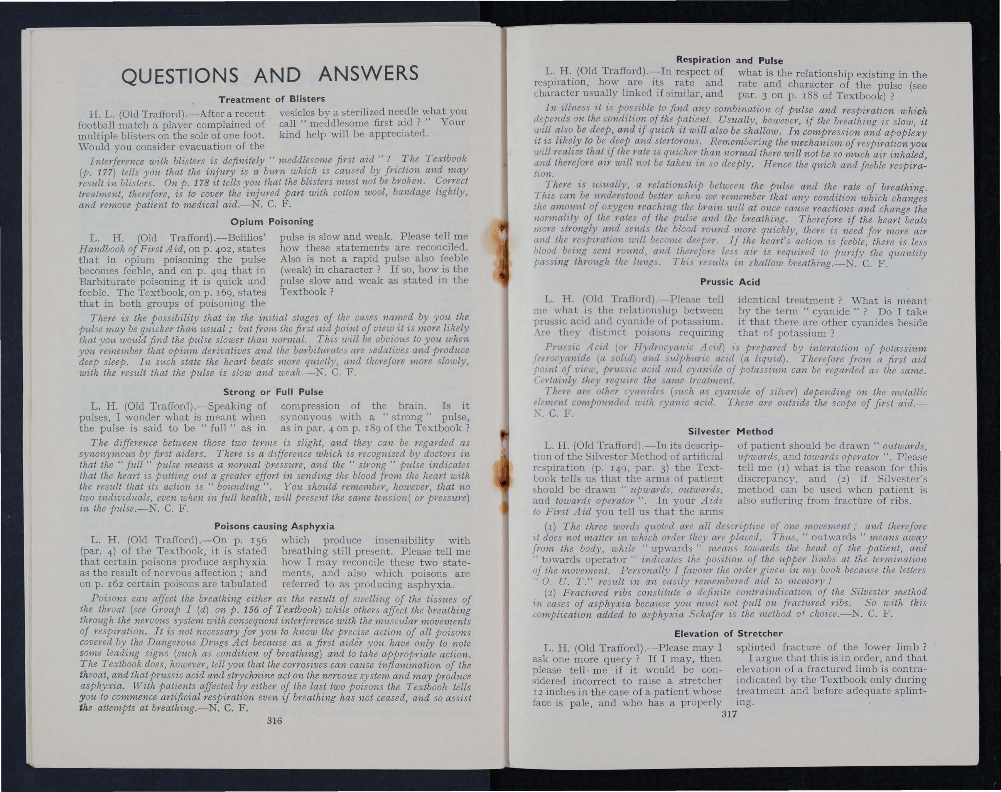 L. H. (Old Trafford) .-I n r es p ect of what is the r elationship existing in the respiration, how are its rate and rate and character of the pulse (see character usually linked if similar, and par. 3 on p . 188 of Textbook) ?