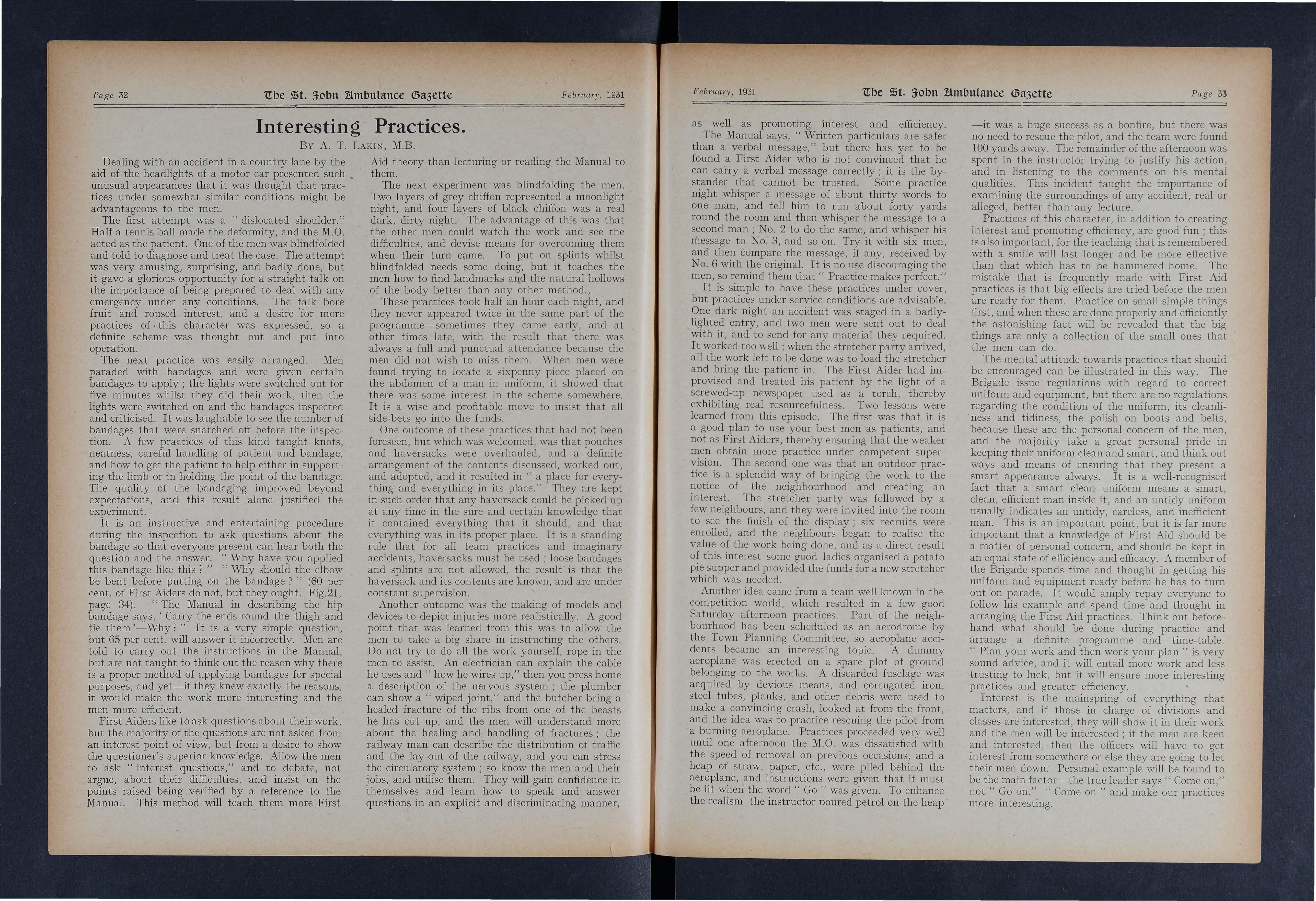 So g r eat was his interest that he persuaded the examiner (Colonel J E. H. Davies, who reported the incident to th e Priory), to give him a special test whi lst he was in hospital, and he proved highly efficient.