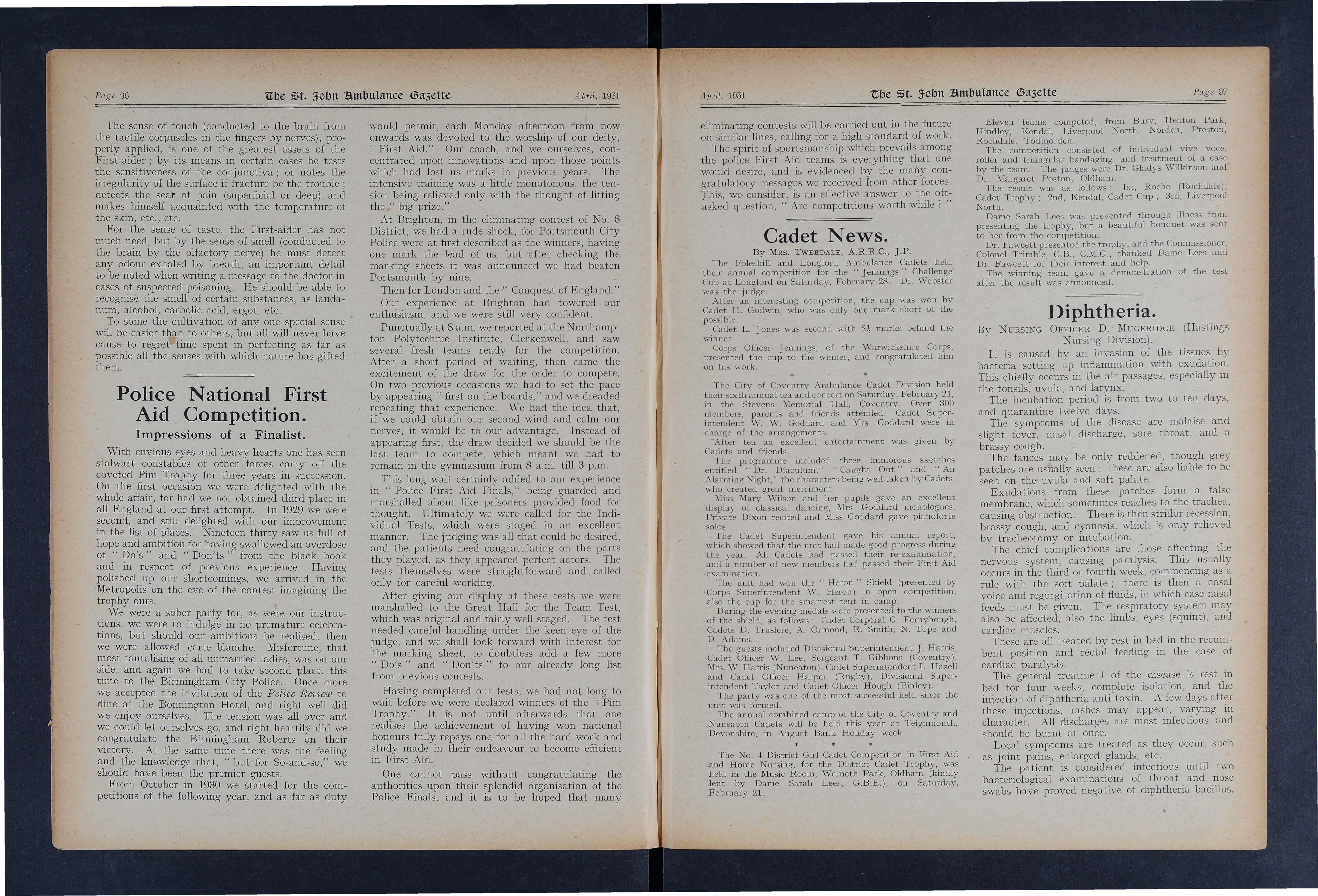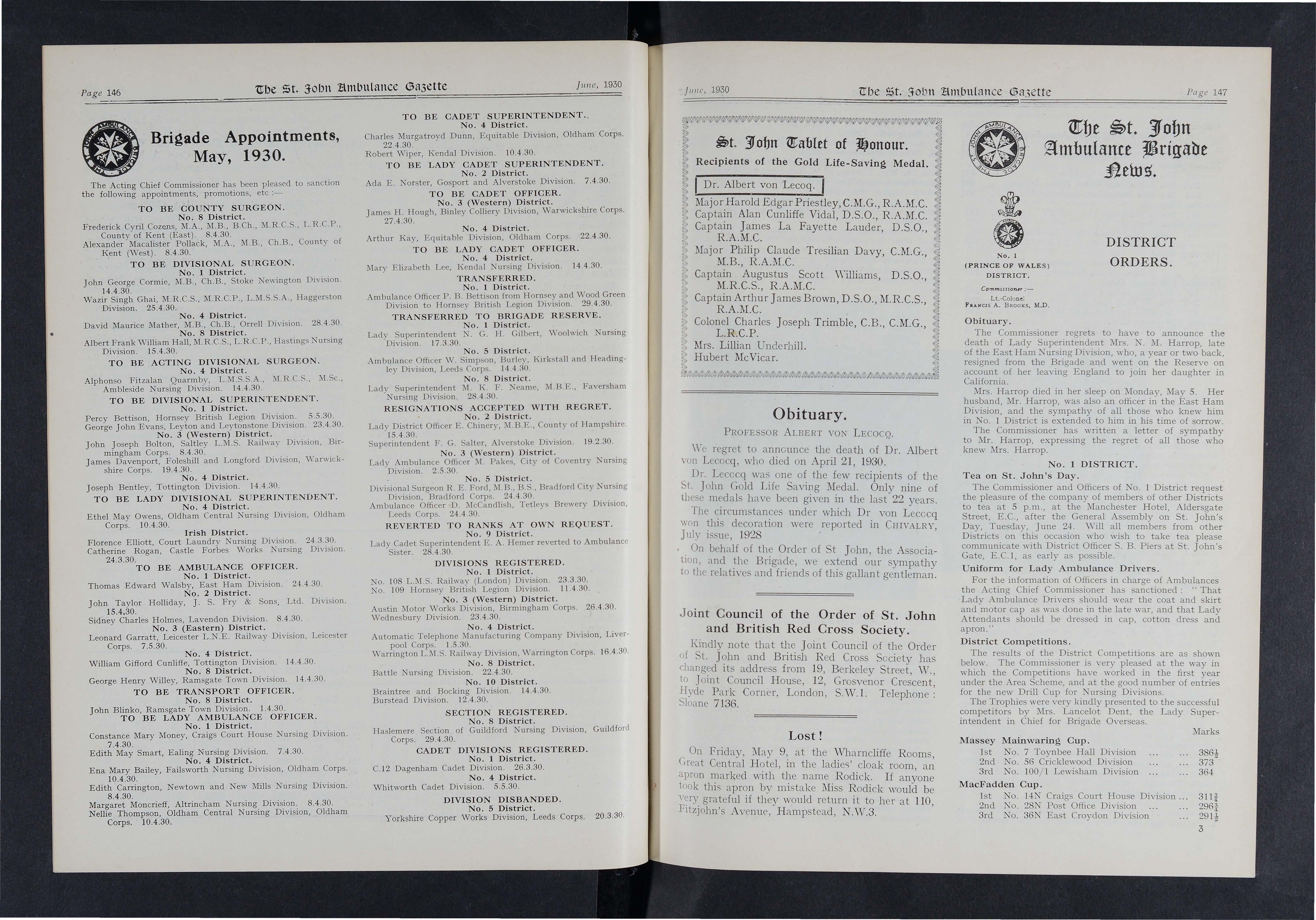 The ?trength of the Brigade in this area is now recorded as 553, comprising 13 Ambulance, three Nursing, 10 Cadet Divisions, and, in addition, two Cadet Nursing Units provisionally formed
