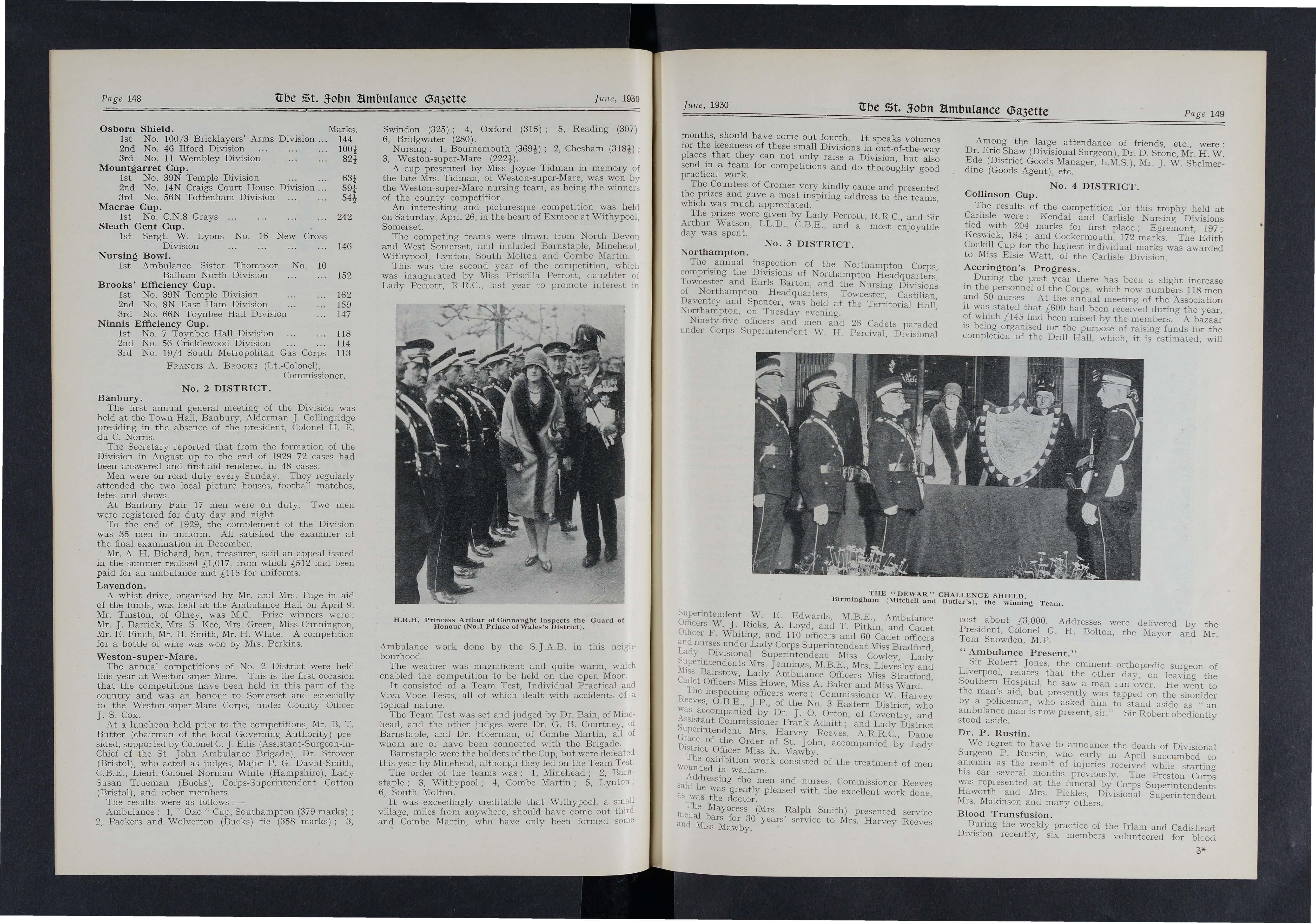 The competition for the" Pratt" Cup, organised by the Pcmtypool and District Corps for teams who had not previo1llsly been successful in an ambulance contest, took place on Saturday, Oetober 17, at Pontypool, in the presence of a good audience. Griffithstown proved the successful team> with Cwmbran second, Pontnewydd third, and Monmouth fourth. The adjudicators were Corps Superintendent G. F. Tuckwell and Divisional Superintendent J. Barber; and Mr. H Pratt, donor of the trophy, subsequently made the presentation. Staff Officer G. H. Nelms presided, supported 'by Divisional Surgeon N. B. S. Vinter. The type of the practical test-the treatment of an air pilot supposed to have cFashed at a carnival- indic ated the nature of accidents to which First Aiders wiJl be likely to apply themselves in the future.