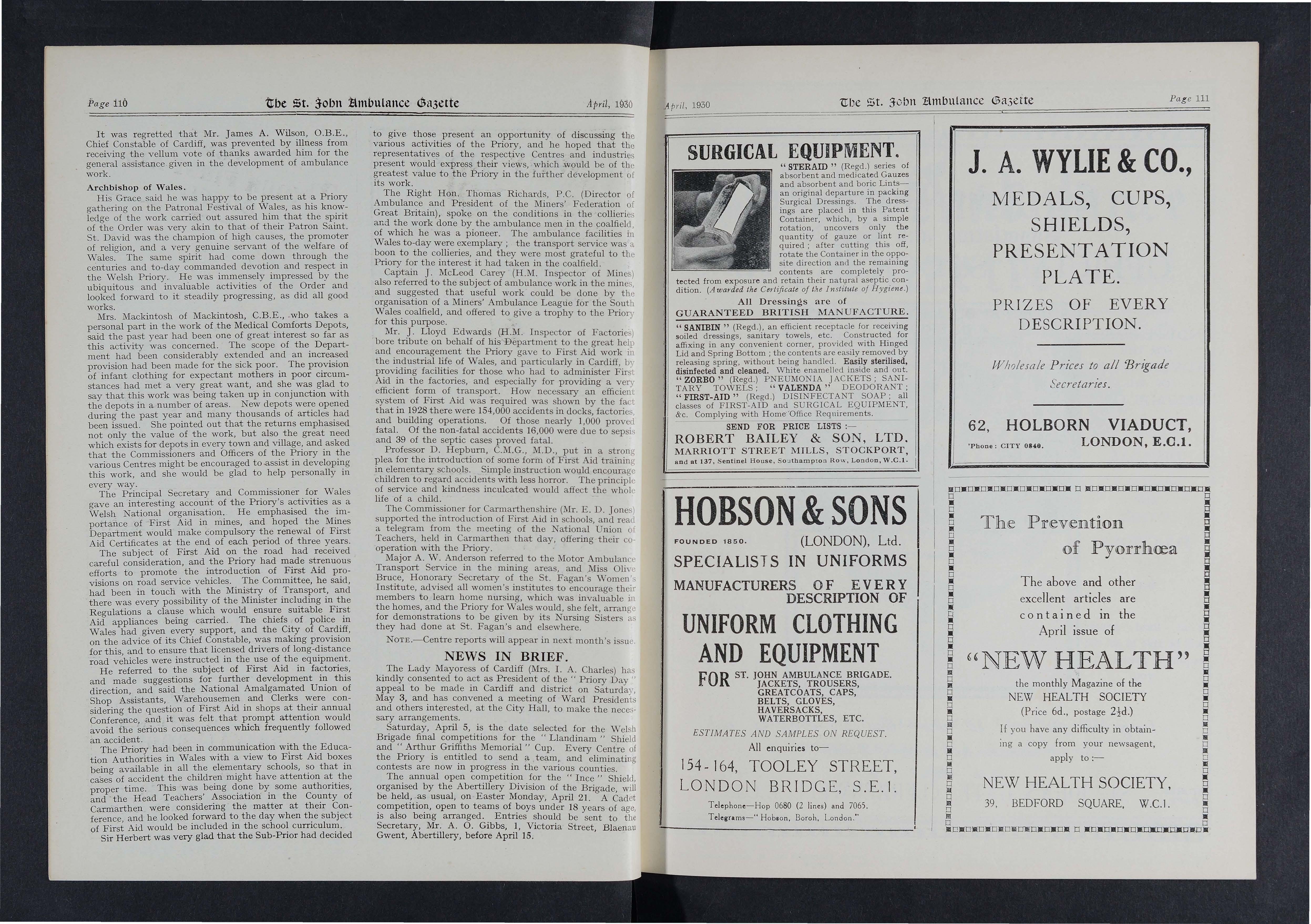 His first connectio n with the Order, wh ich he recalled with just pride in his remarks at the Ebbw V a le Ambulance Competitions l a st year, reaches b a ck to 188 5 when, as a result of th e impression created on his sympathetic mind by the cru de method of the treatment of an injured collier, he, w ith hi s brothers, formed the first Ambu l ance Class at Ebbw Vale. From that time onward the Order of Sit . J ohn never ceased to make a strong appeal to his i nnate desi r e to serve a n d help humanity, and when the deve lopment of the St. David s Centre of the St. John Ambulance Association m ade th e es t ablishme nt of a separat e au onomous organisation for Vlales appear desirable, he championed the movement which culminated in 19 18 in the inception of the P ri ory for Wales.