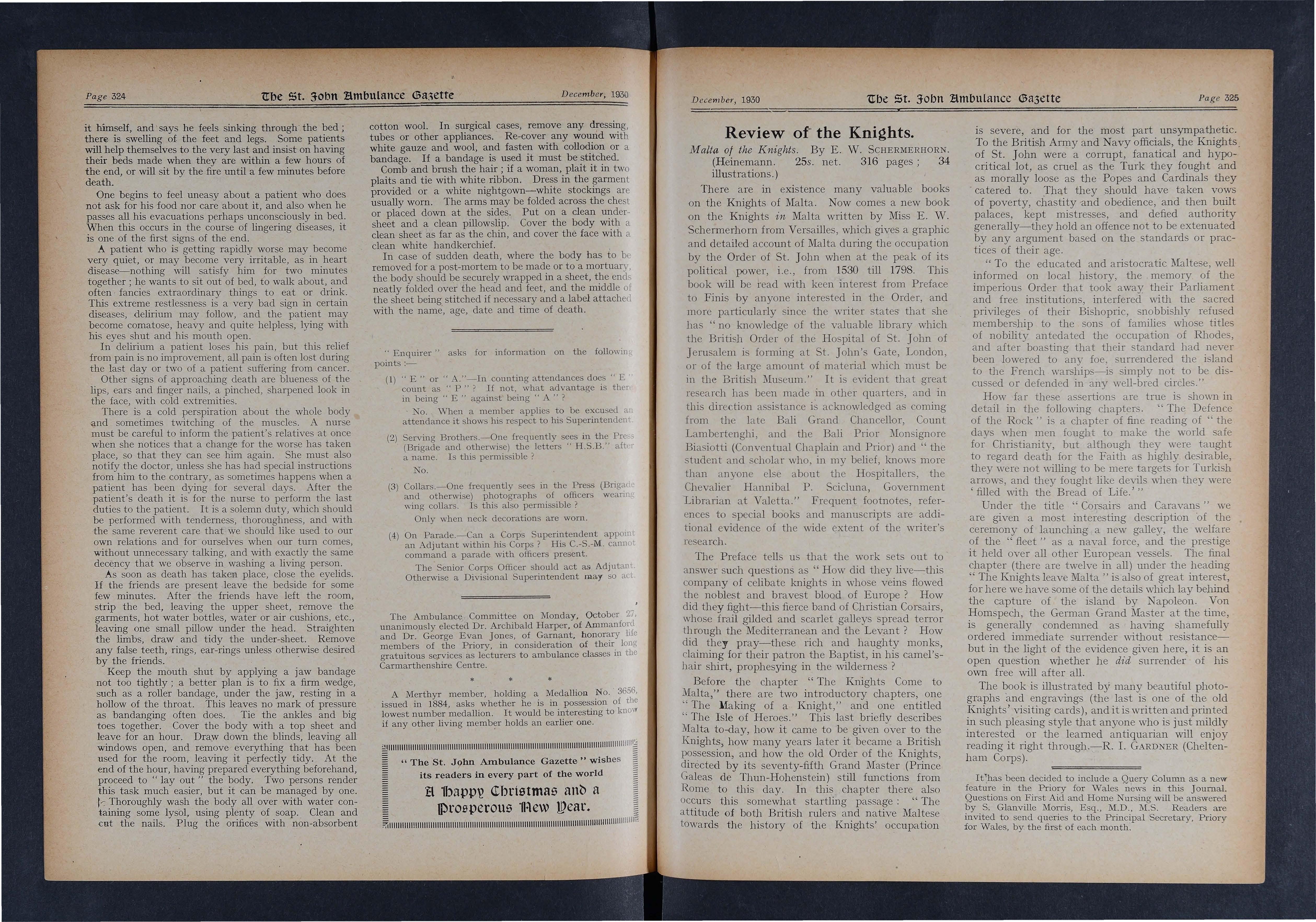 Honorary life membership of the Priory has been conferred upon Dr. Rhys Paton (Surgeon to the Llanelly Nursing Division) and Dr. John Wallace (Surgeon to the Mynyddcenrig Division) in recognition of their gratuitous serviGes as lecturers to First Aid and Home Nursing Classes.
