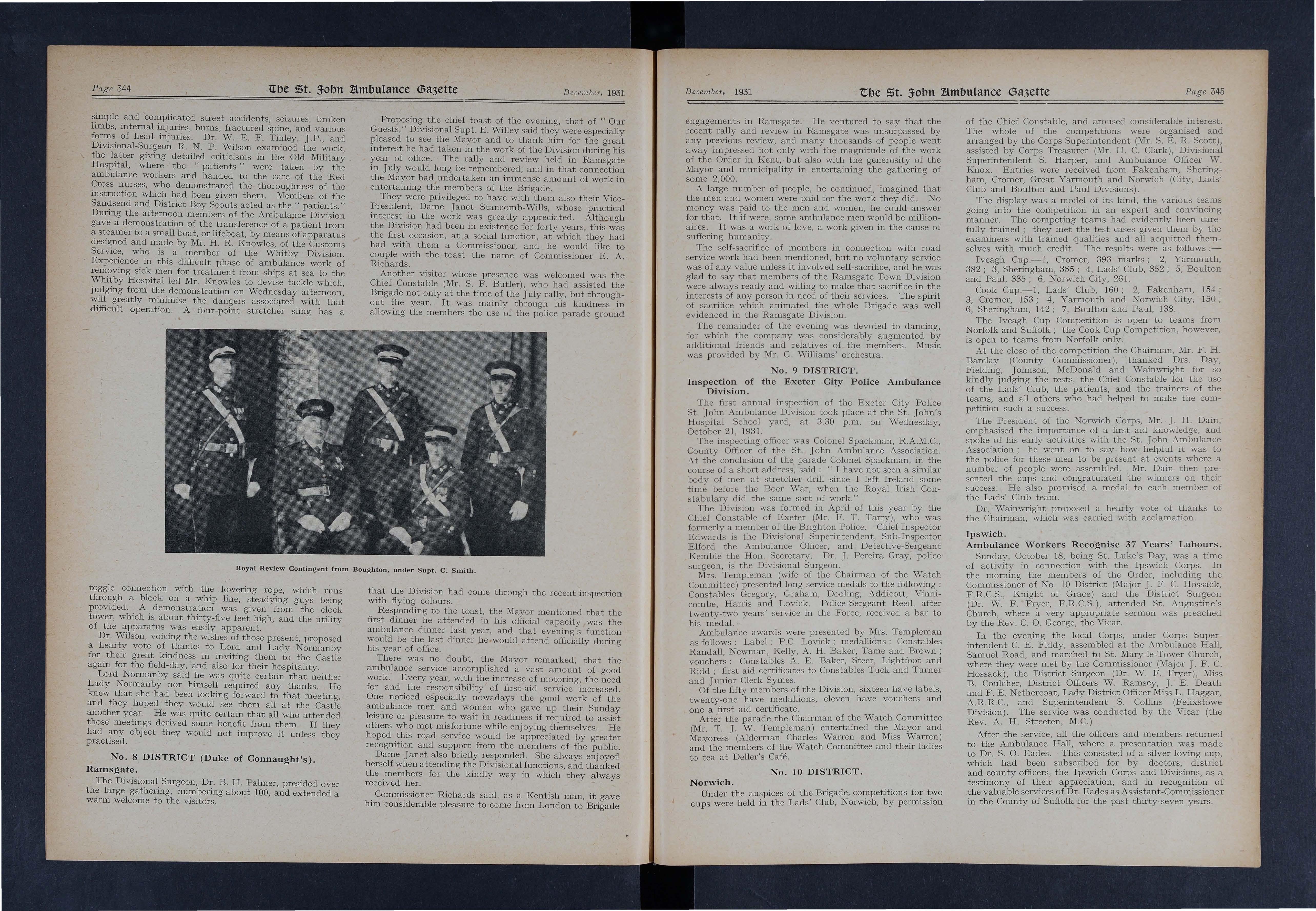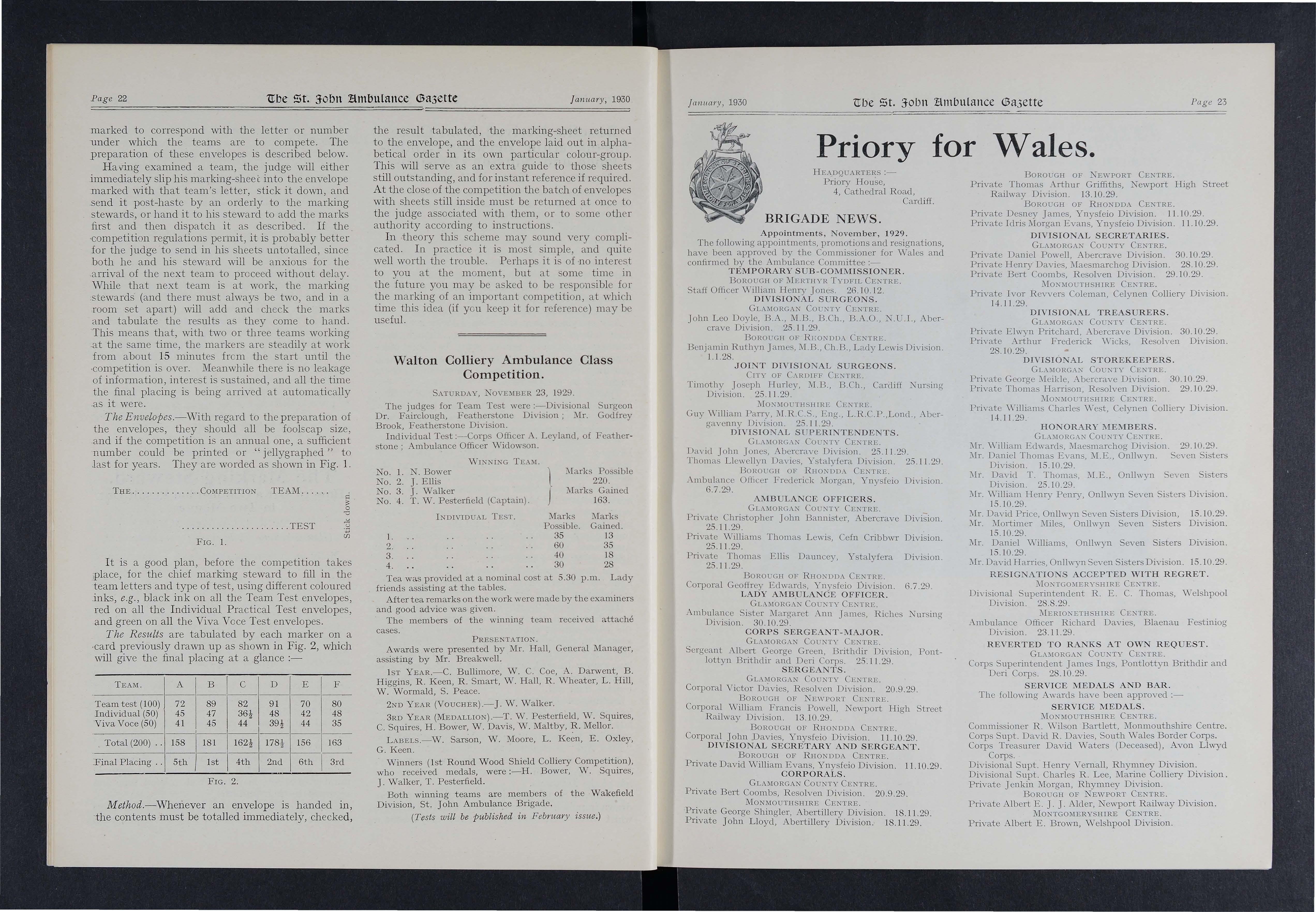 Corps Secretary J Rickard, on his retirement from the railway service at Pontypool Road, was presented with a walking-stick in recognition of valuable services to the ambulance movement for upwards of 25 years; and Mr. F T. Ball (Griffithstown) was presented with a gold bar for tvventy years' efficiency in the ambulance movement.