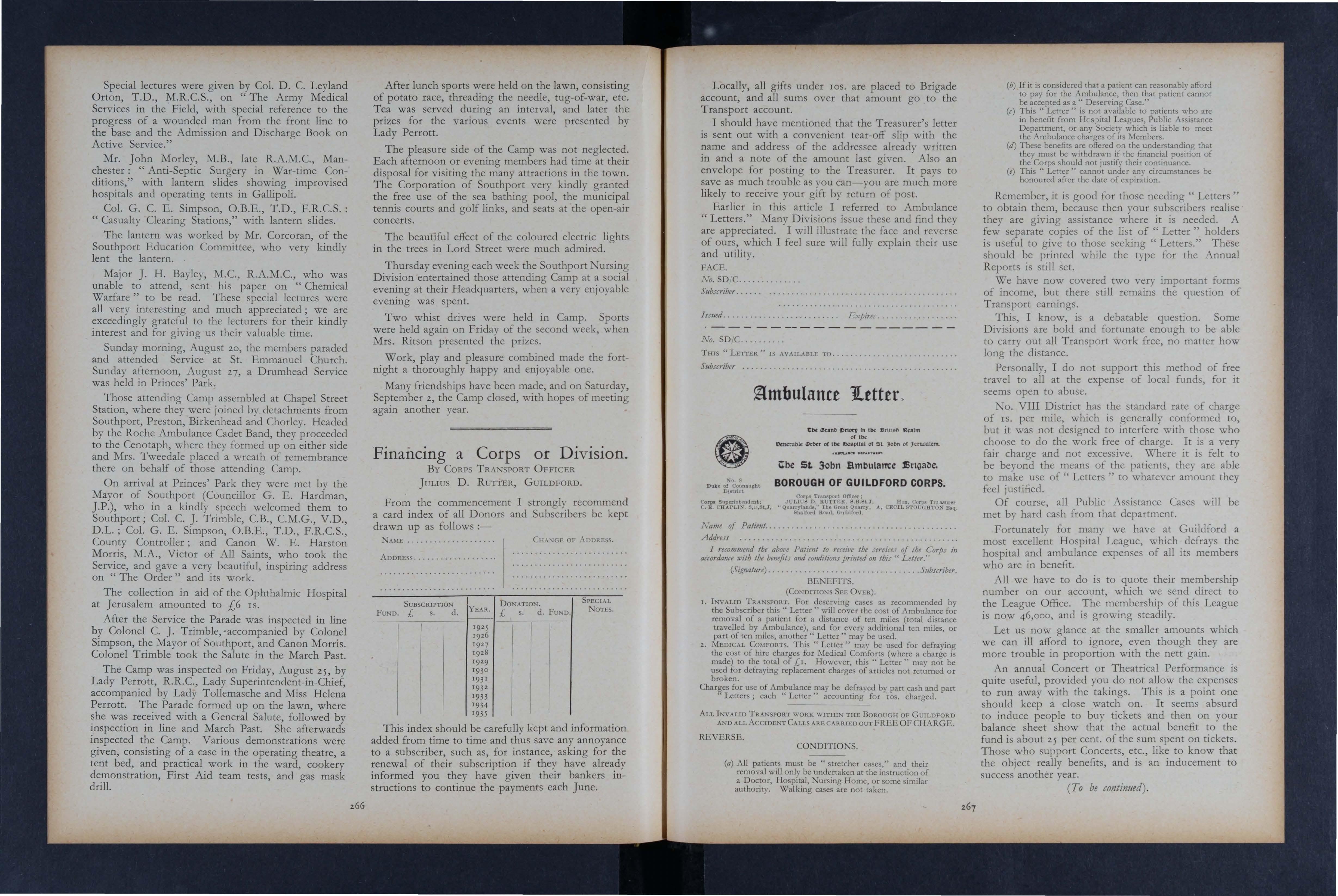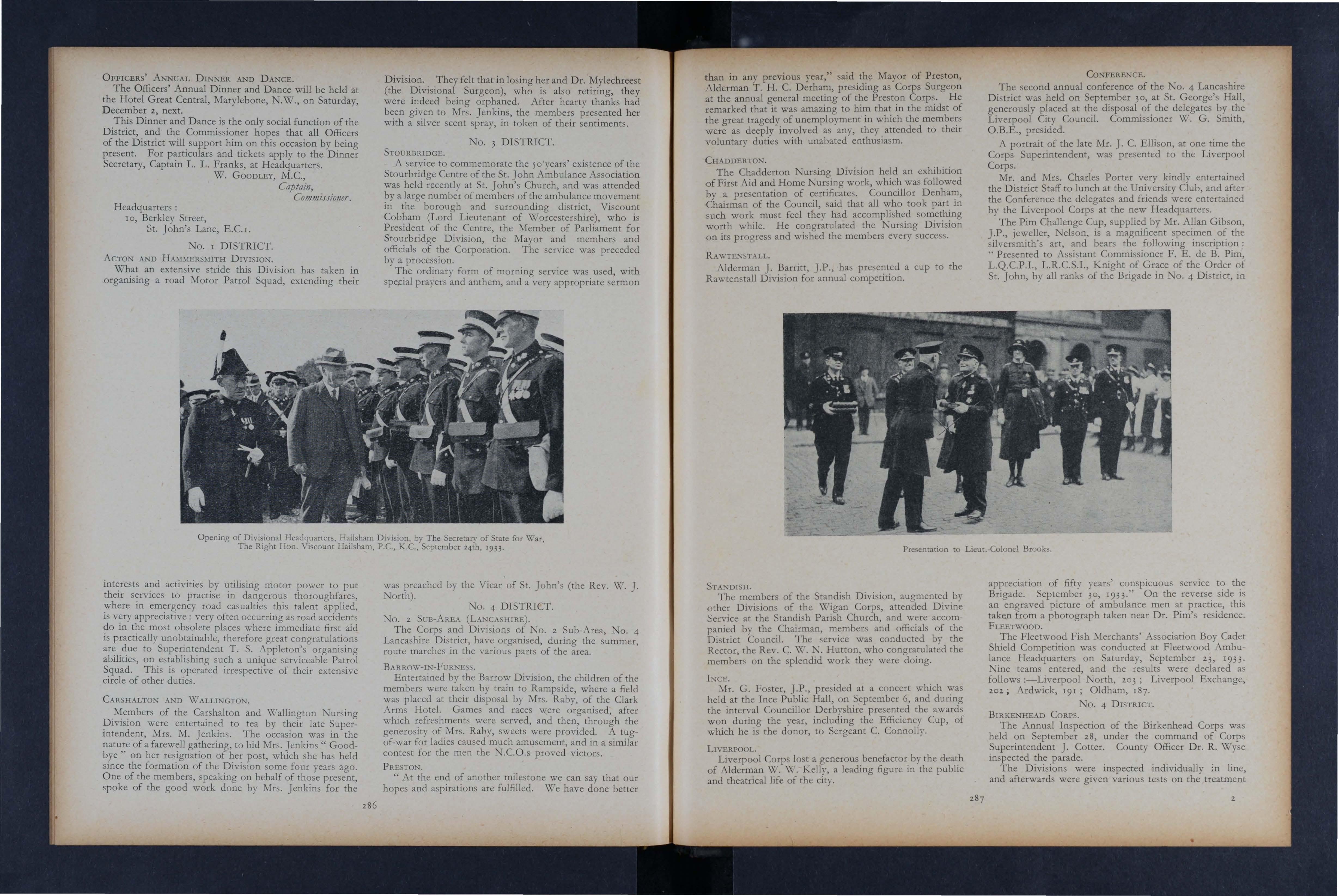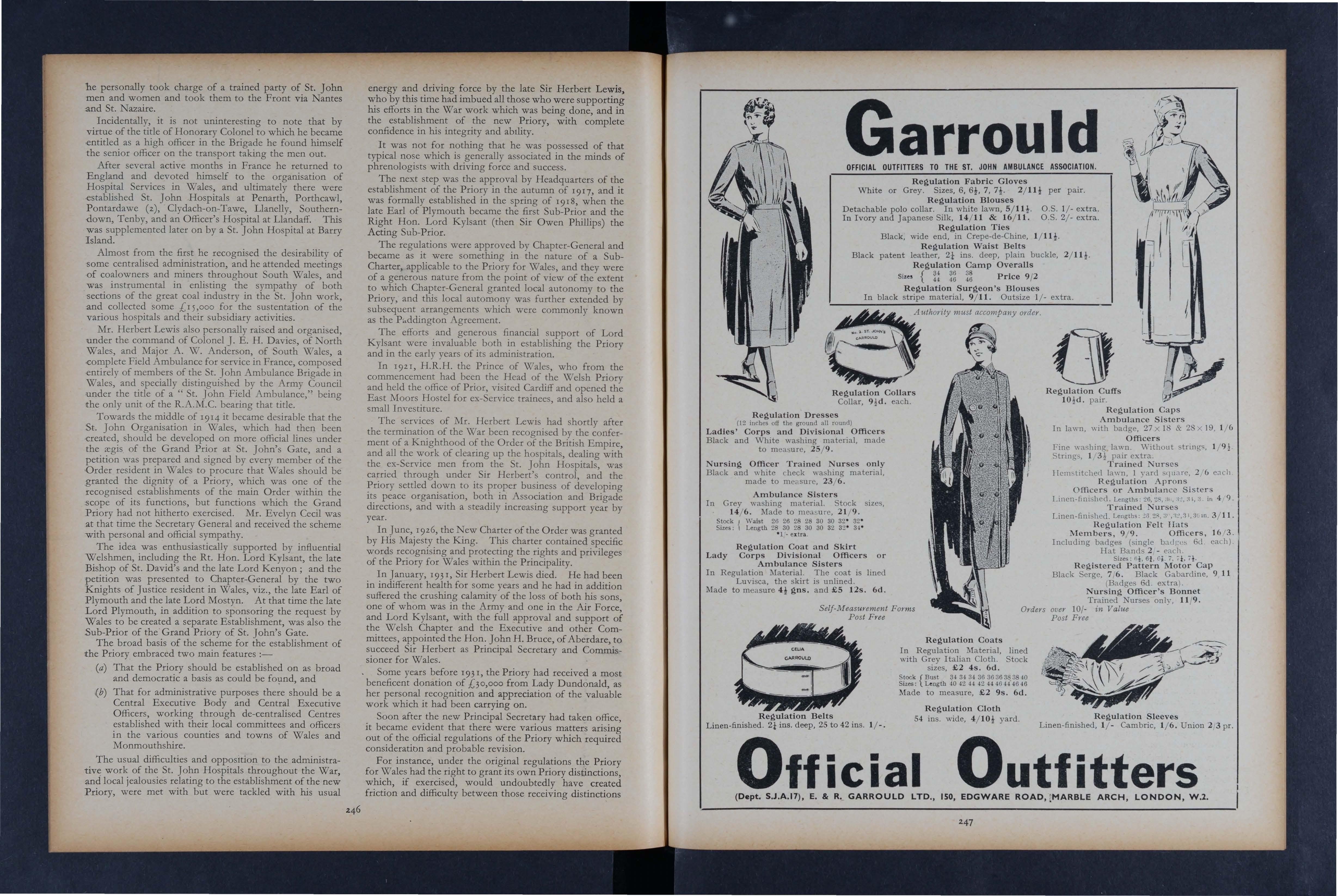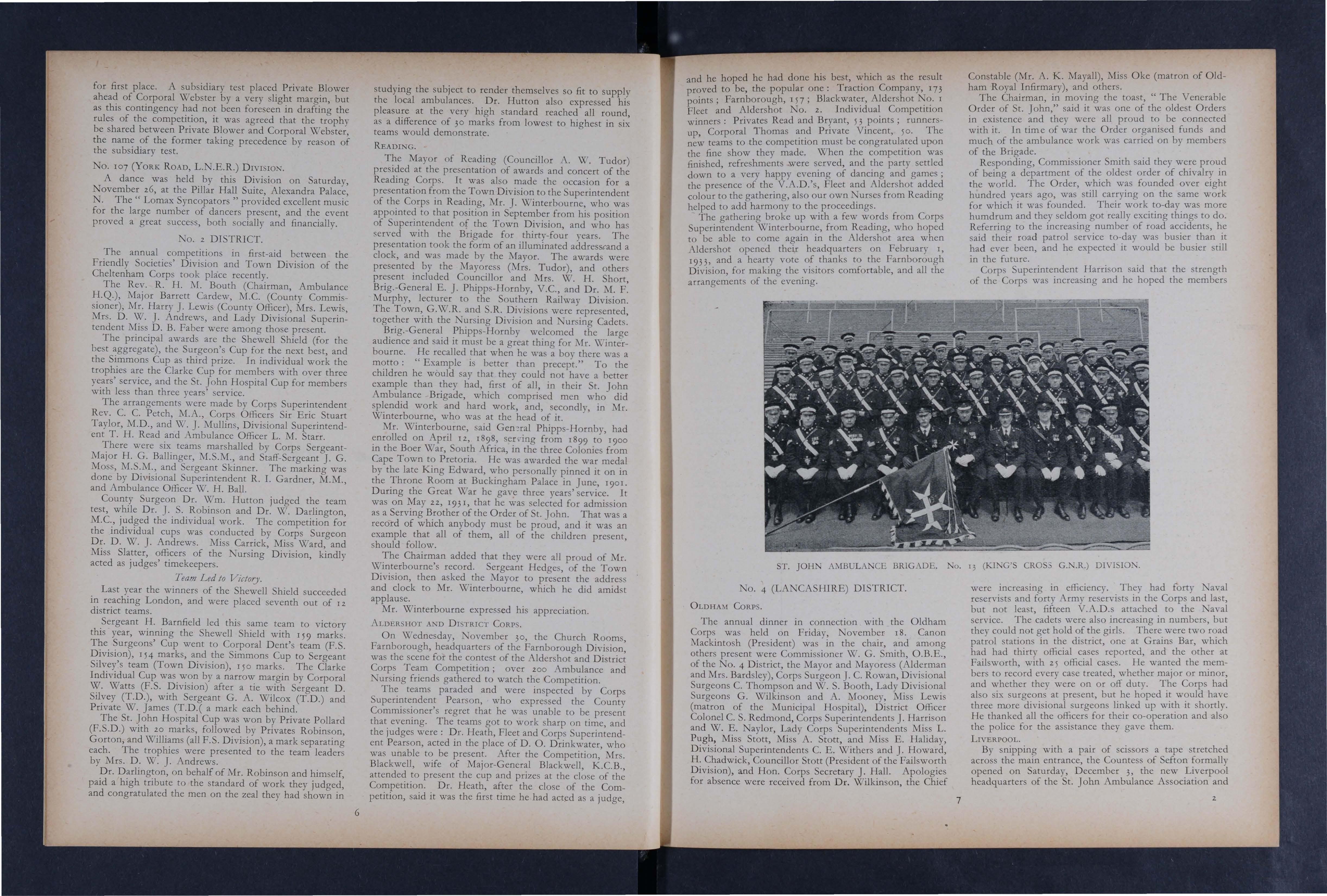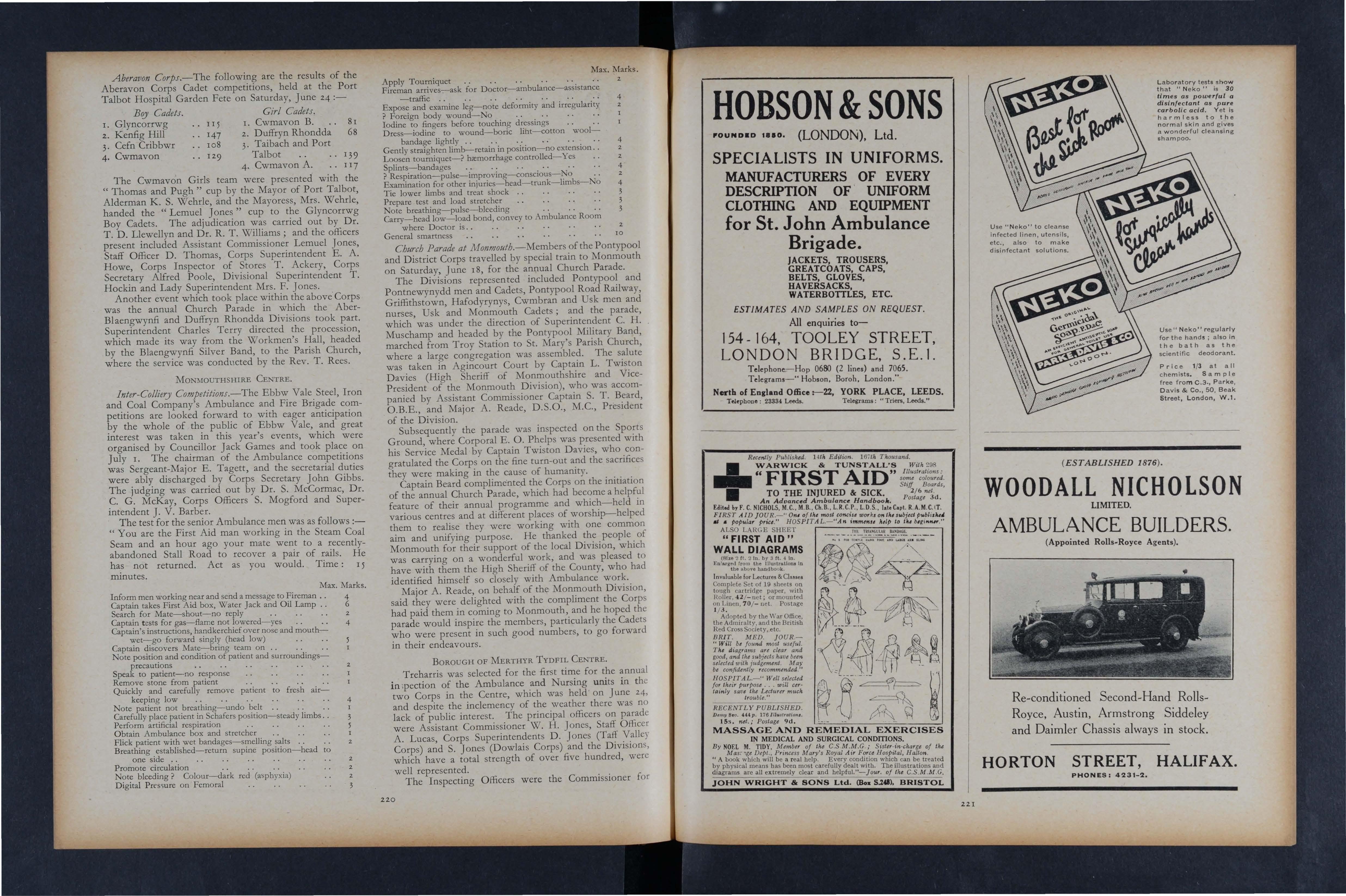 On October 14, the Corps held its Annual Presentation of Awards at the Brithdir Ambulance Hall, where Dr. S. B. Turner, the popular Surgeon of the Bargoed Division, presided. In the absence of the Principal Secretary, the Priory was represented by the Assistant Secretary, Miss V. Lovett, who presented Diplomas of a Serving Brother