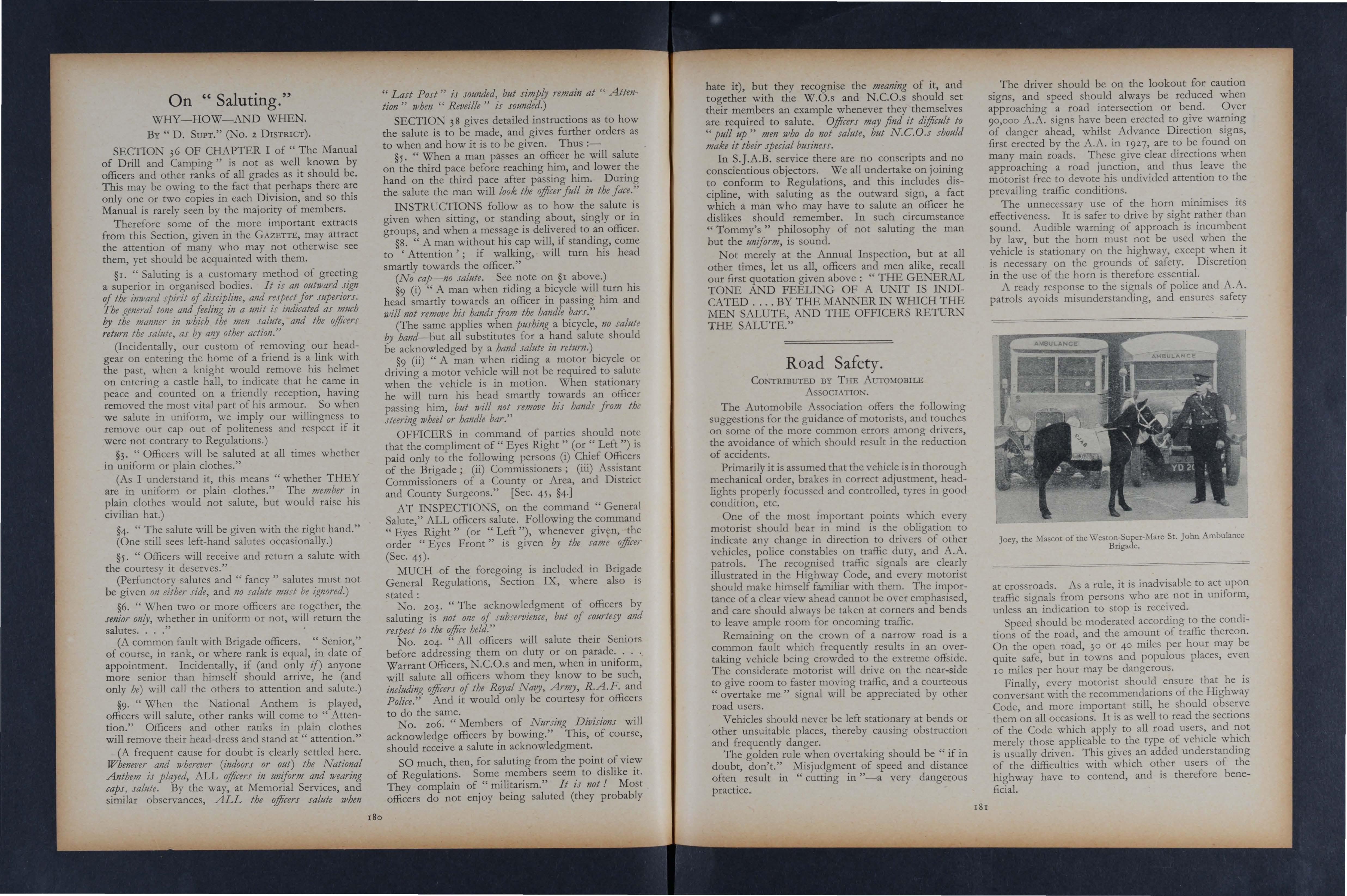 Suppose we ask an officer to illustrate the spirit of the Brigade members; I think he would av something like this: "On parade, I see strict discipline, orderliness, obedience and a whole-hearted desire to be of service and to be a credit to the Brigade; off parade, I experience a wonderful friend hip and