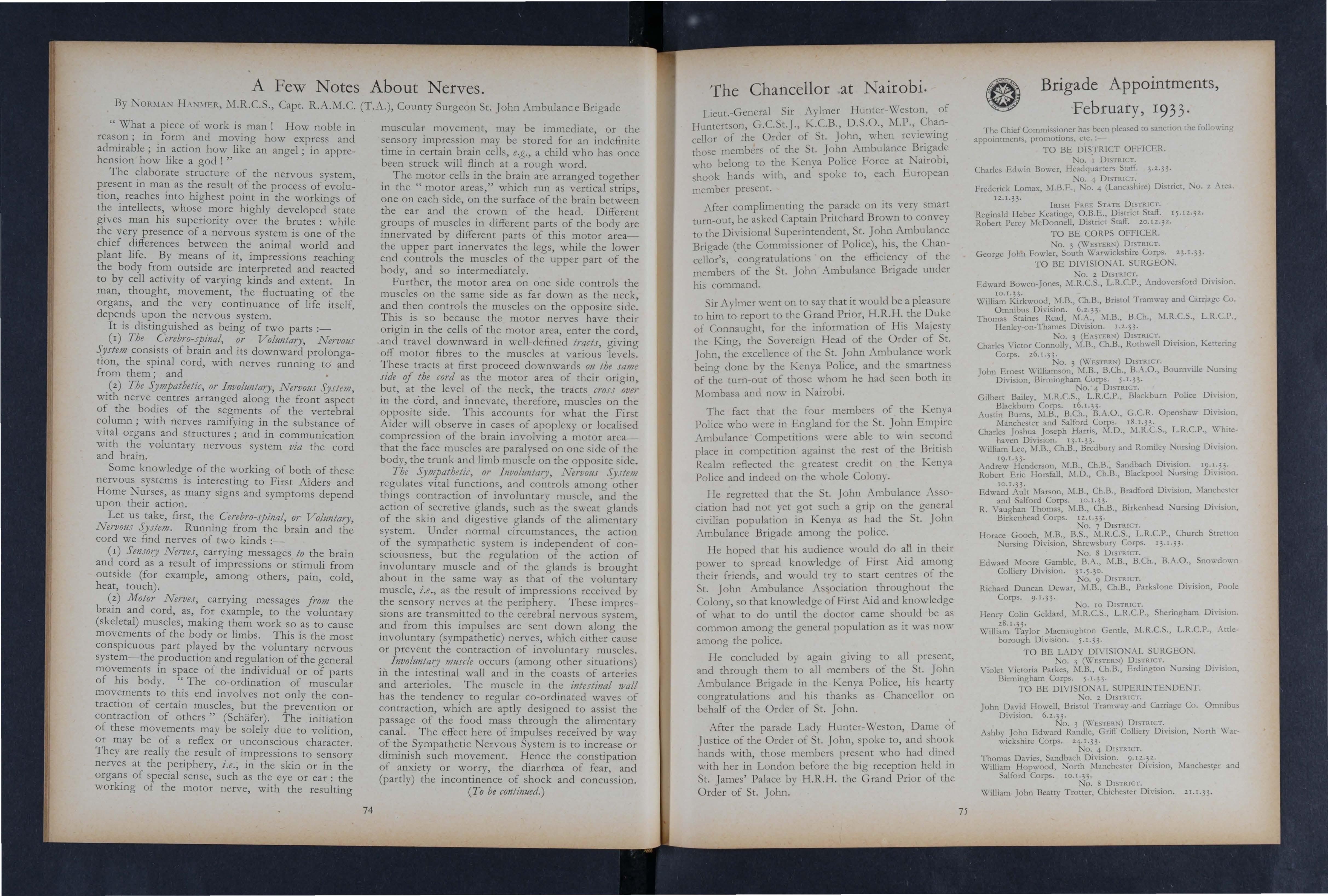:Kenya Police Ambulance Division.-John A Carman, M.B., B.S., to be Divisional Surgeon. 1.11.33.