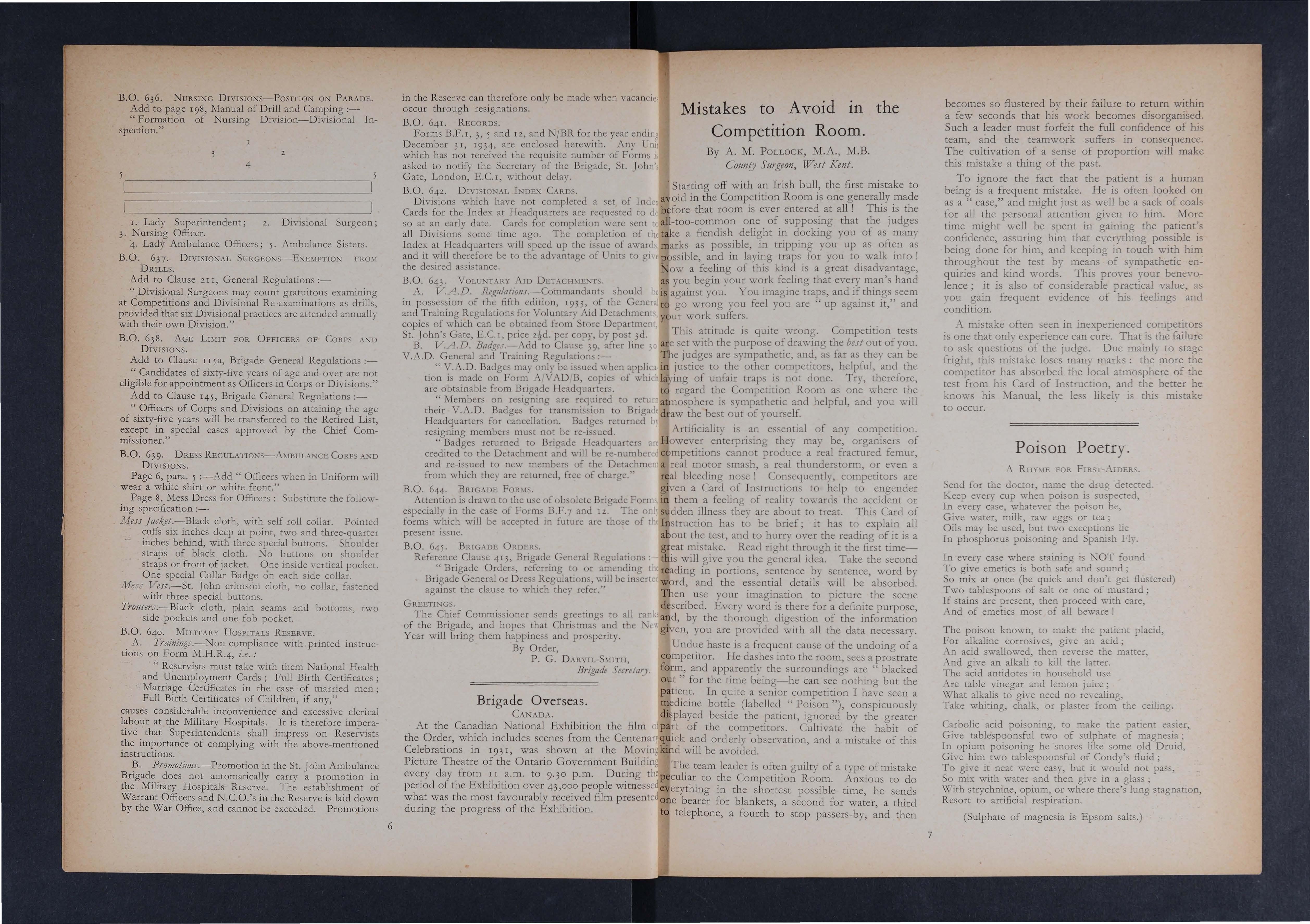 B Promotions.-Pr o motion in the St. J ohn A mbul a nc e Briga de does not automaticall y carry a pro mo tion in the Military Hospitals Re serve. The establishment of Warrant Officers and N.C.O .' s in the Re serve i s laid down by the War OffiGe, and cannot be exceeded. Promoti o n s 6 in the R ese rve can th e refor e only h e ma de when vacanci d o ccur throu g h resignations. Mistakes to A voi In the B.O 641. R EC RD C t't' R ill Form s B.F.I, 3, 5 an d 12, and f BR for th e year en di ng ompe 1 lOn 00 D cember 3 1 1934, arc enclosed h erewith ny Uni t M A M B h d h b f F'