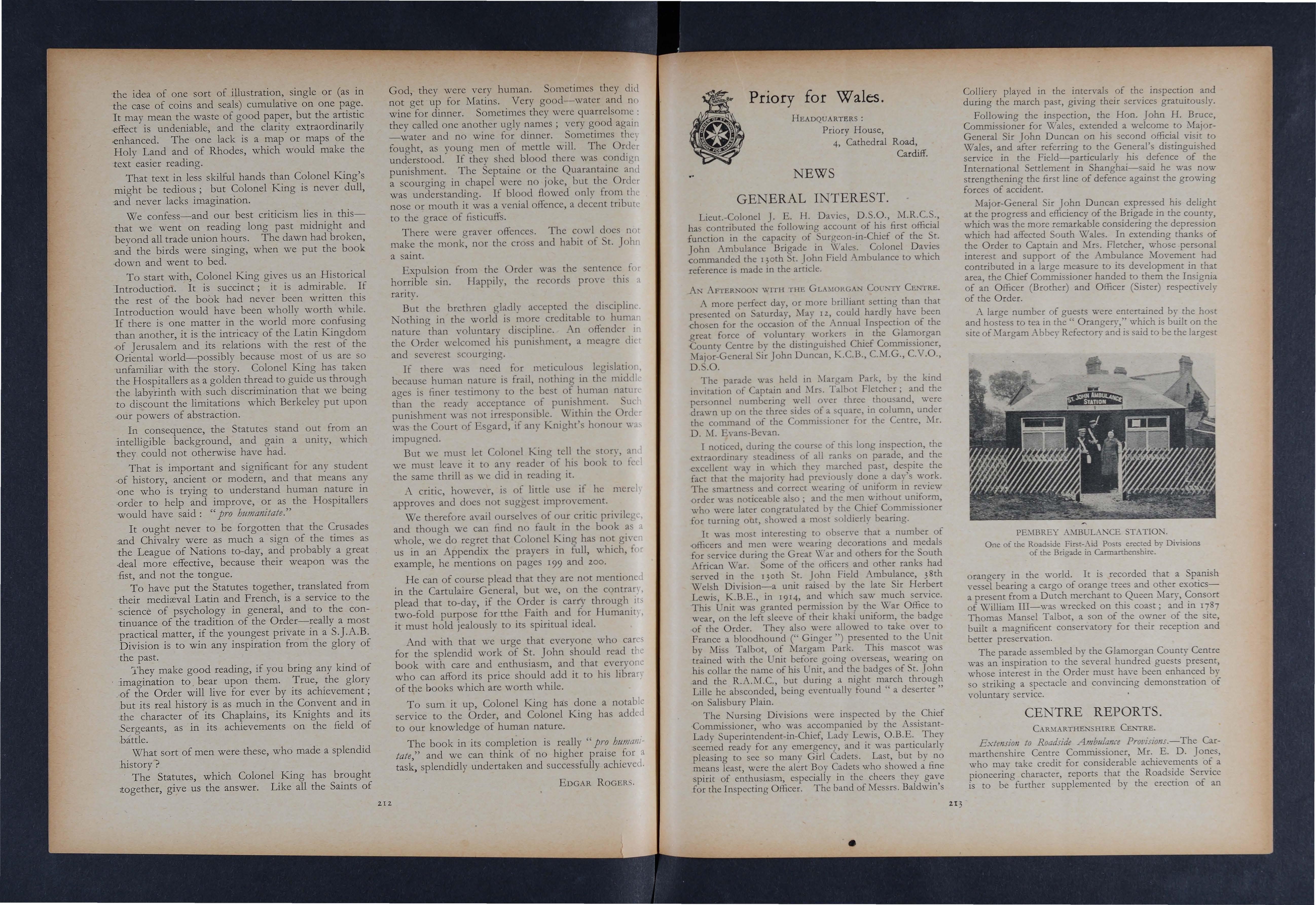 His Royal Highnes the Duke of Gloucester, accompanied by the Com mis ioner for ·Wales (The Hon. John H, Bruce), inspecting St, John Cadets during his yisit to the Rhondda'.