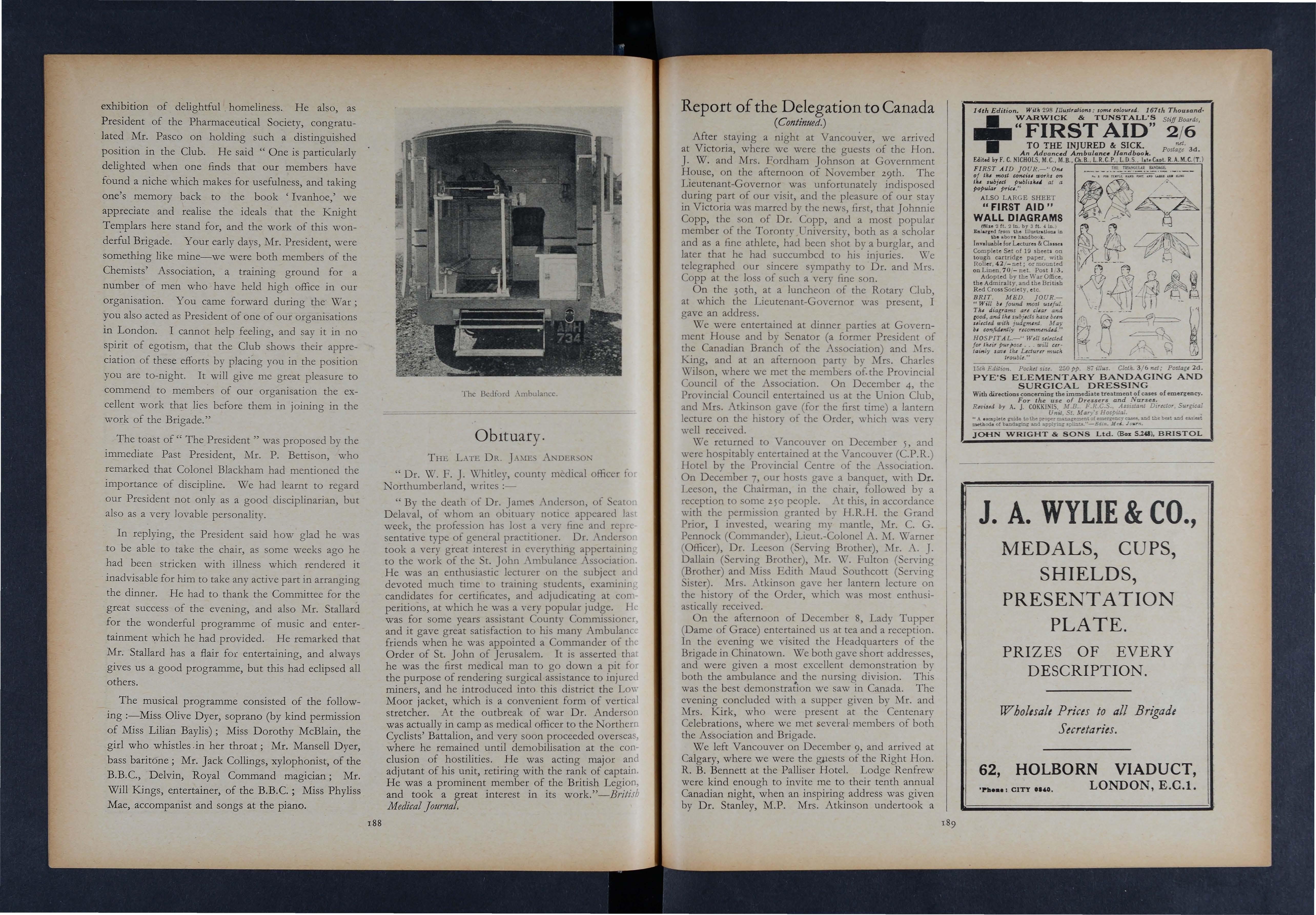 W. P Thomas, Winnipeg (C.P.R.) Ambulance Divisi on, C'.fa nitoba District. Canada 1.10 35 ]. Dickson, Winnipeg (Canada Packers) Ambulance Division, Manitoba District. Canada. 6.5.35.