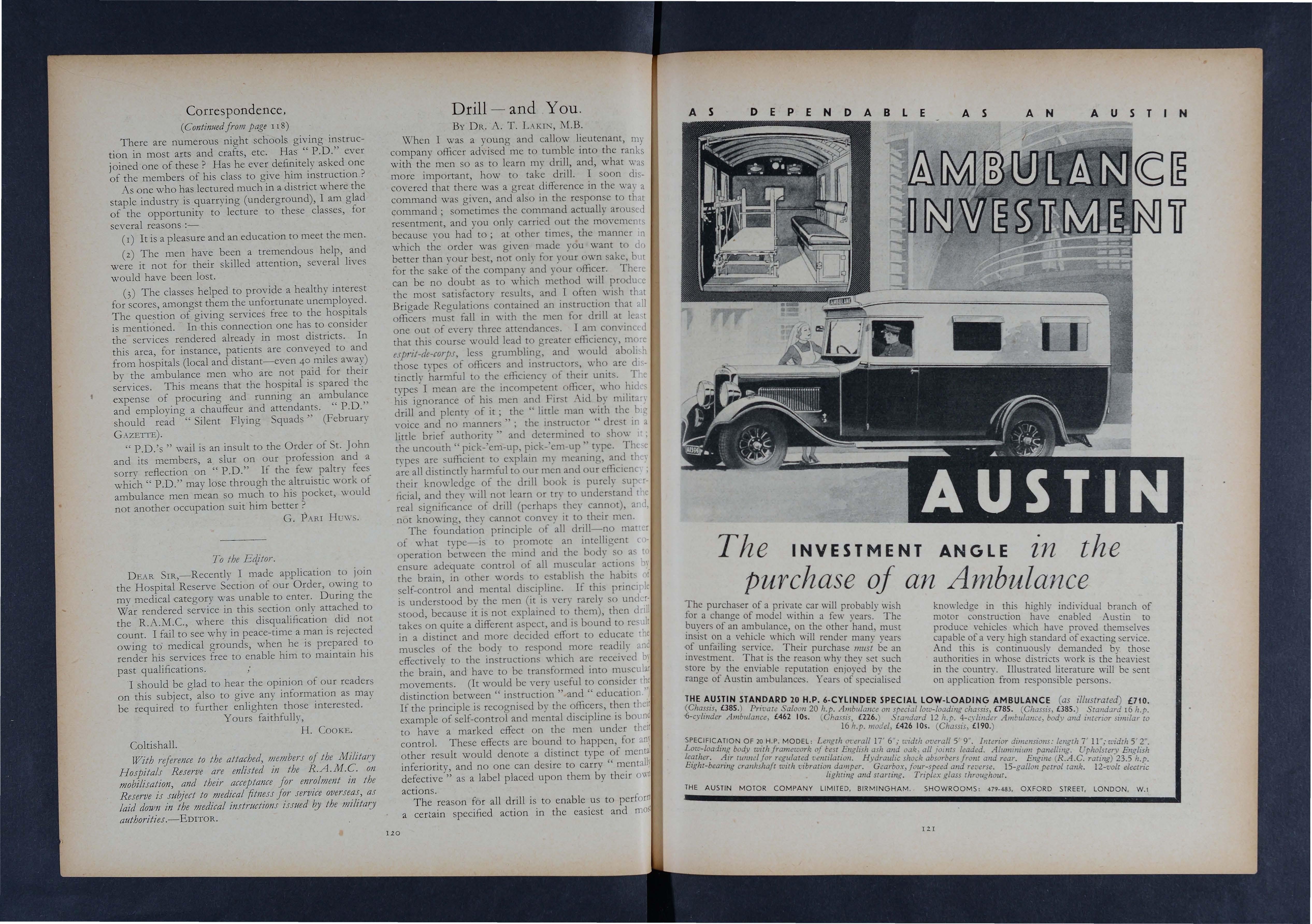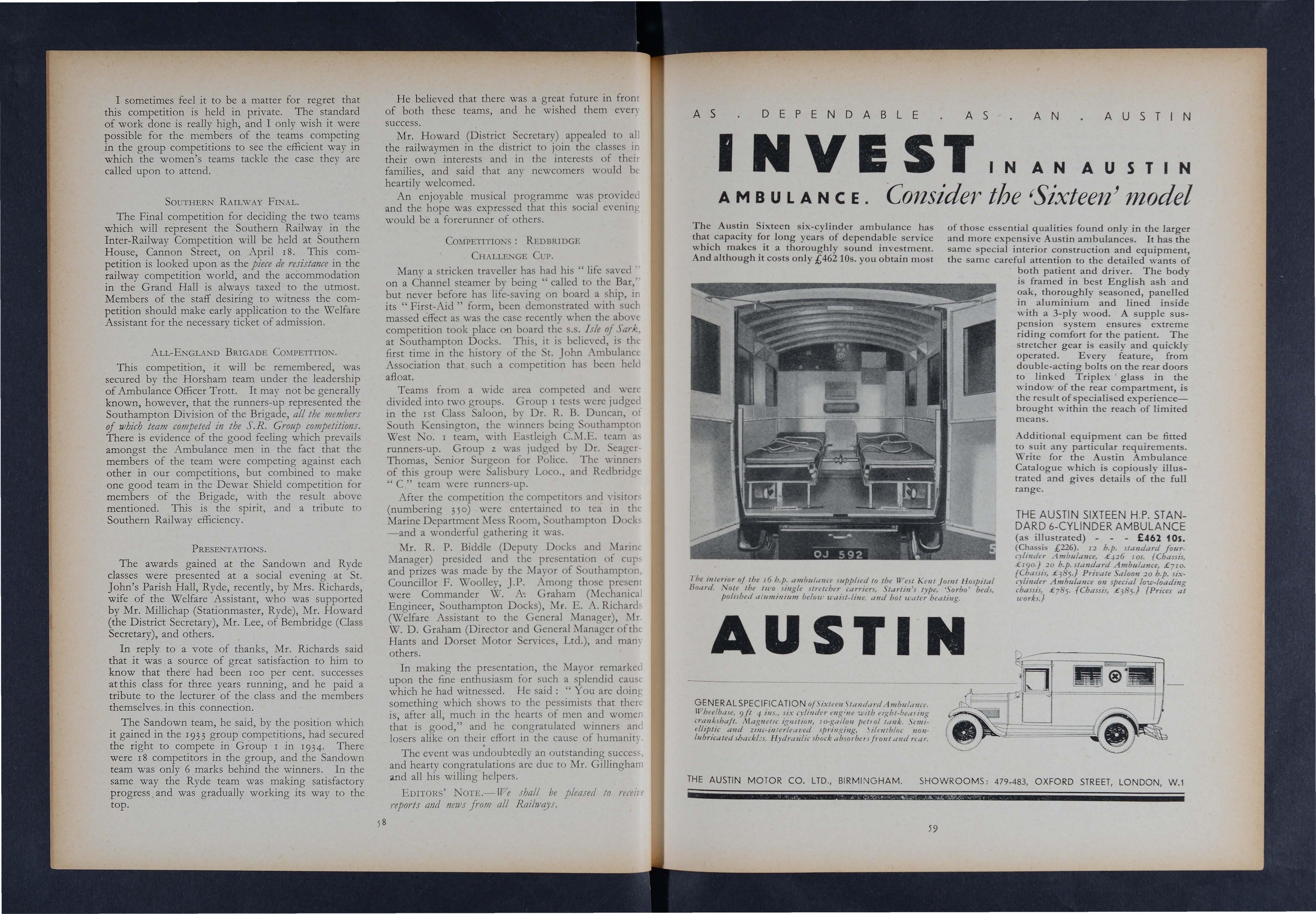 For thirt) car no\\ car owners have been testing the dependability, of lifc and freedom from trouble of _\.ustin cars. For almost as long British publIc authorltlc' have been testing the afety, comfort and cientific perfection of \ uSlin ambulances. In both field" there has been practical endorsement which is c()nfirmcd by cver-increasing sales. nd the latest result of this twofold experience IS the 'ew \llstin tandard 20 h.p. mbulance.