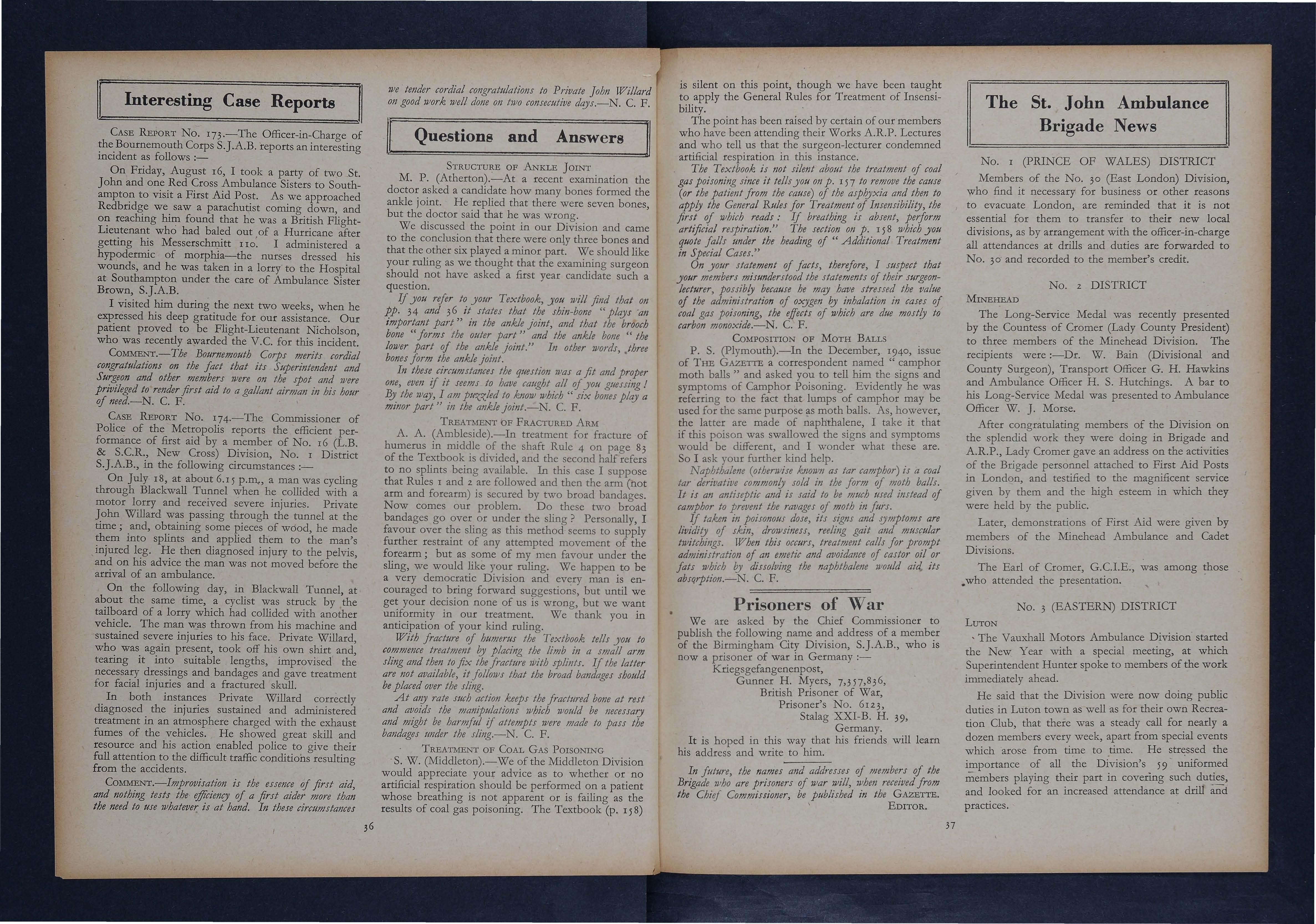 The annual report from this 'district cintains several interest. All Nursing Divisions ale busy with their ordinary work as well as the extra calls made upon their time by war work. Wherever possible members ate helping in hospitals, some are acting as drivers and attendants for the St. John Ambulance, whilst a considerable amount of time is given to making comforts for the St. John Depot. Cadets have been collecting silver paper and members of the Ambler Cadet Nursing Division have knitted strips of different coloured wool and made it into a blanket.