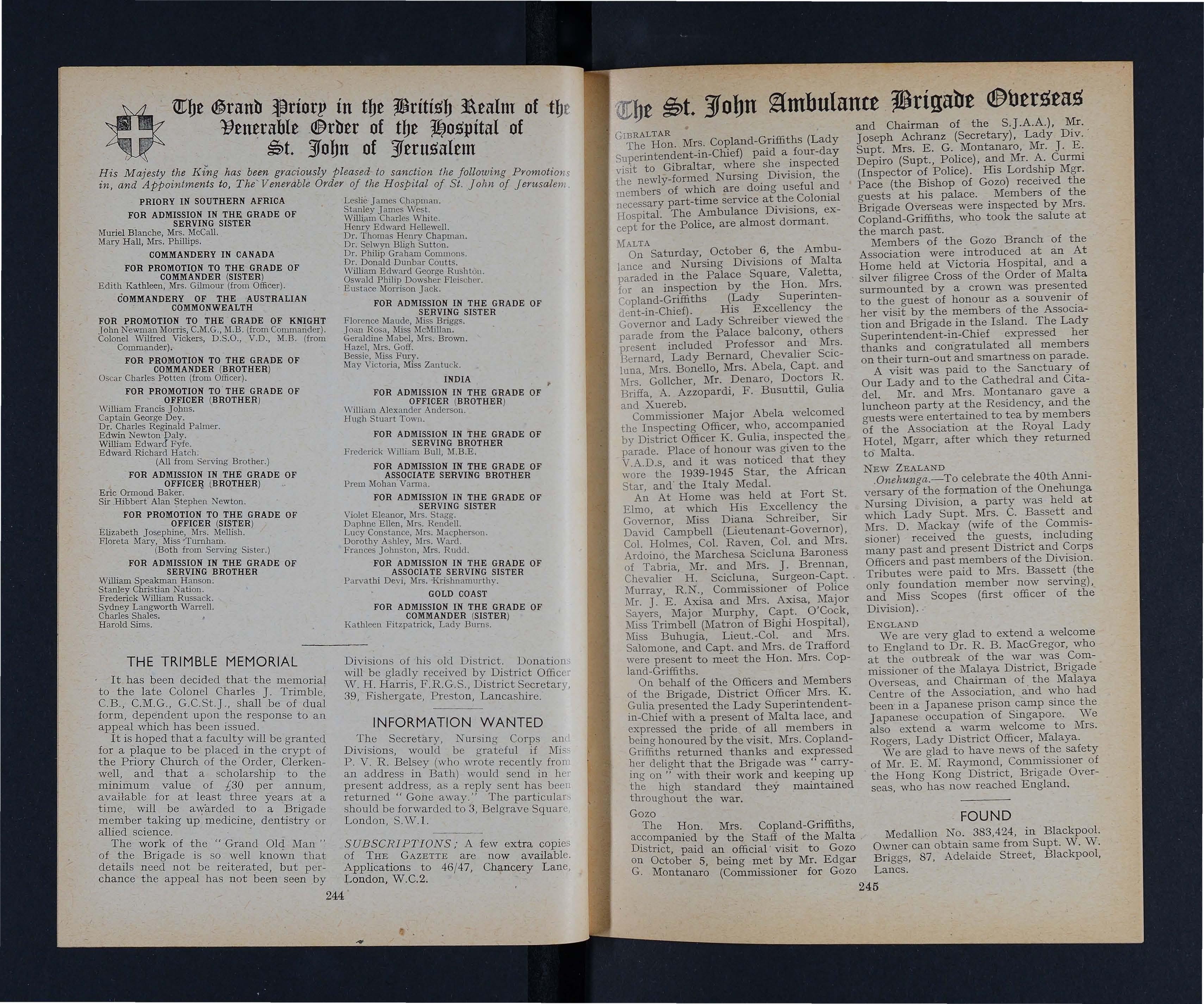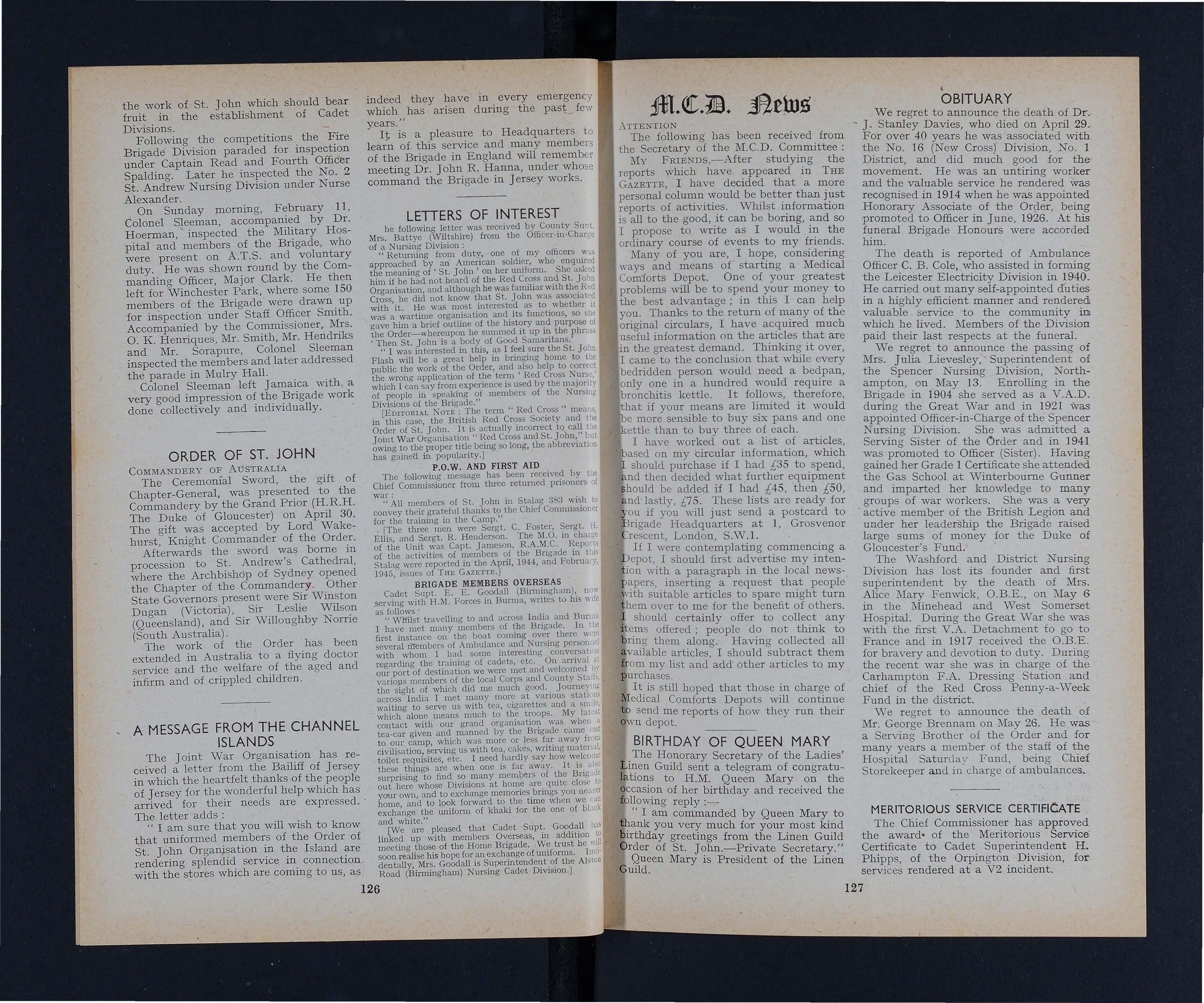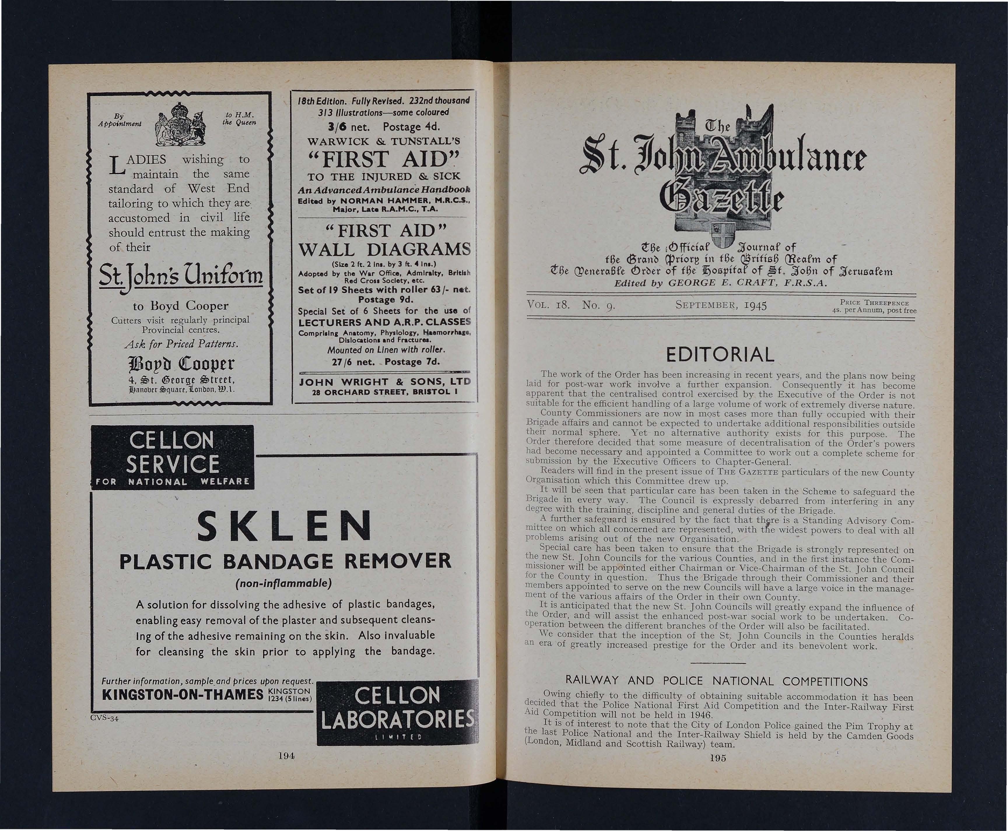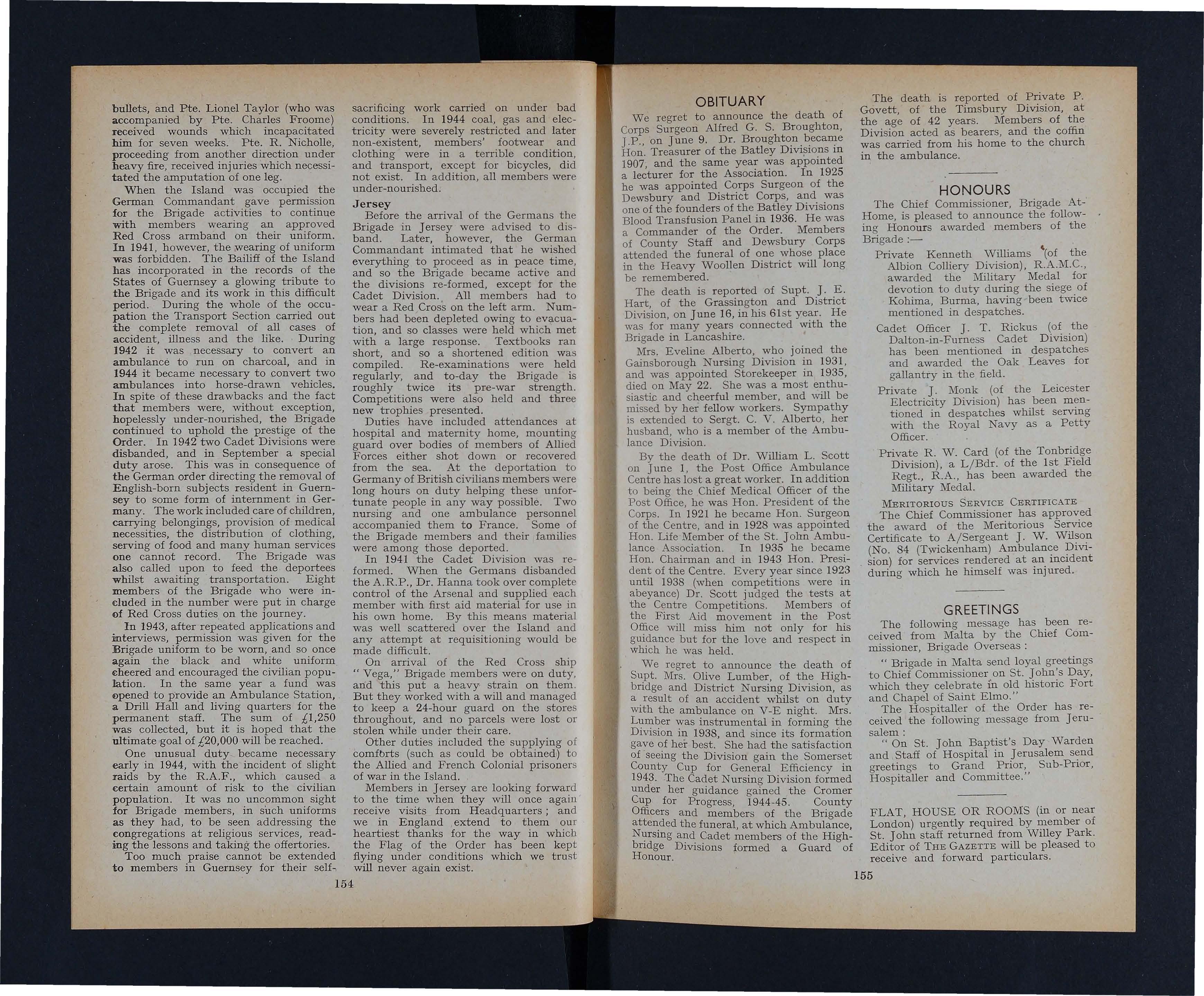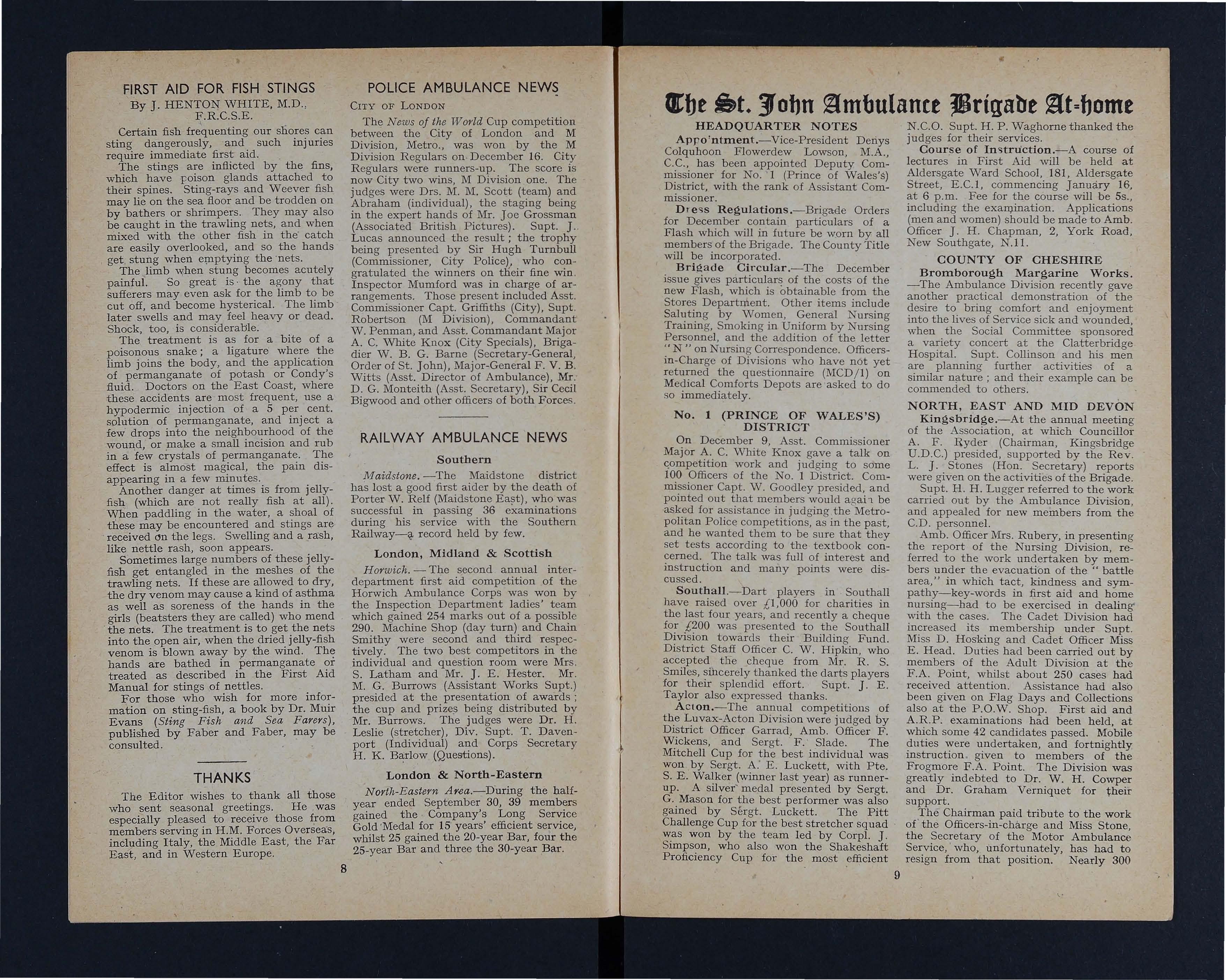 F irst and foremost, we exten d o ur g r atefu l thanks to Dr. N. Cor b et Fletcher, S ur geon-in-C h ief, Bri gade At-Home, for his untiring efforts in answering the q u eries sent in by r eaders. Since the inception of THE GAZ ETTE (nearl y e ig h teen years ago) he has undertaken the honorary post of M e dical Correspondent, and the amount of time he has given to this work cannot be Cistimated. It ,-.;-as very pleasing to u s, and to the Brigade as a wbo l e, when during l ast year he was awarded the O,B.E for serv i ces rendered to tbe ambulance ' vorId , To Dr. W. C. Bentall we extend thanks for his instru ctive articles on Civil Defence whic h have given u s both sides of many vexed questions; tQ other members of th e m edical profess i on who h ave sent i n articles of interest and of an instructive n at u re o u r thanks are d u e. Last ly, ' ;I,Te w ish to than k a ll t h ose who, m onth afte r m on t h , send in reports o f activities. These come from Headquarter Office r s d o'wn to D i visional Officers, b u t it is impossib l e to name them a ll. Nevertheless, we are s in cere l y grateful to t h em for t h eir assistance i n malting T HE GAZETTE a su ccessful pub li cation.